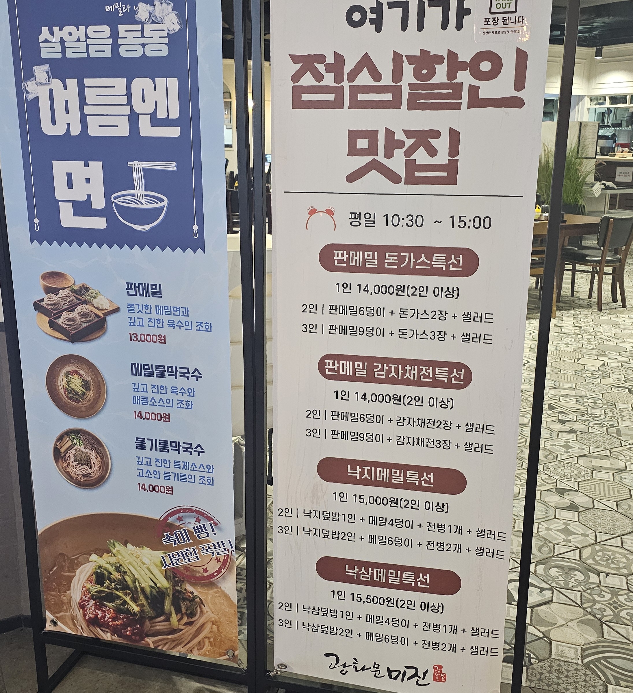 - 대표 메뉴: 판메밀, 물막국수, 들기름막국수, 메밀전병