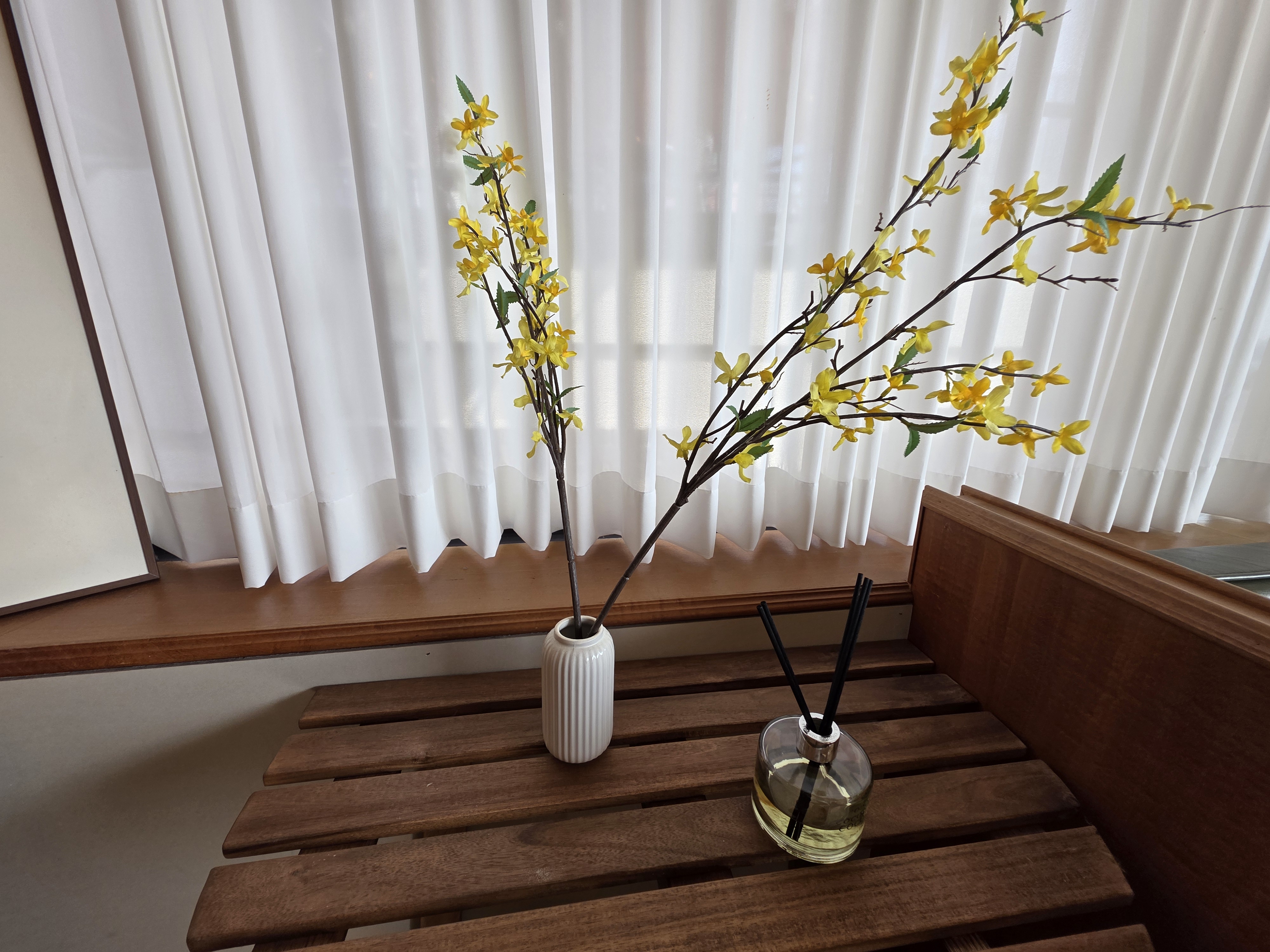 내부는 우드톤 가구와 따뜻한 조명으로 꾸며져 있어 감성적인 분위기를 자아내고, 전체적으로 깔끔하고 정돈된 느낌이에요.