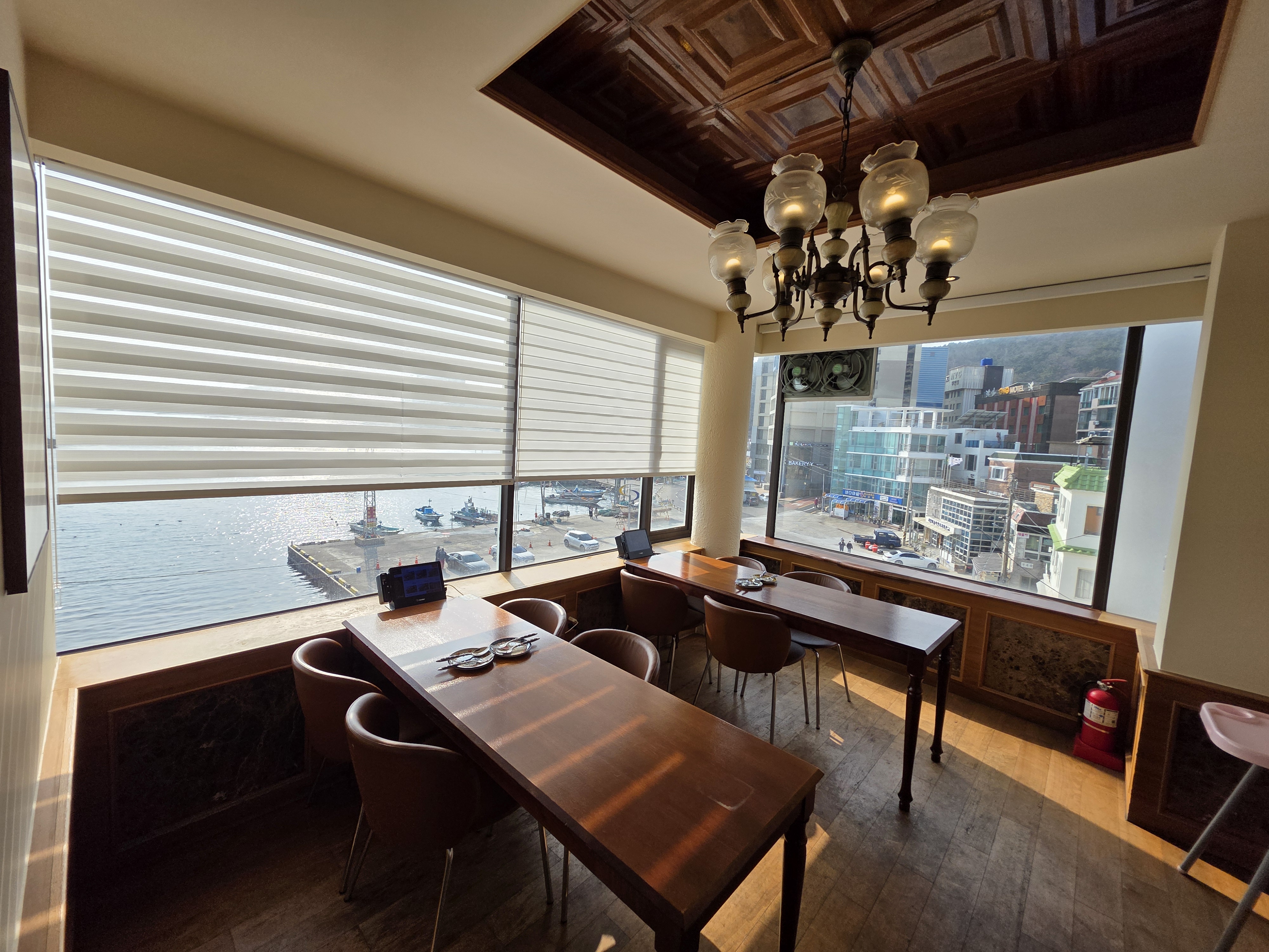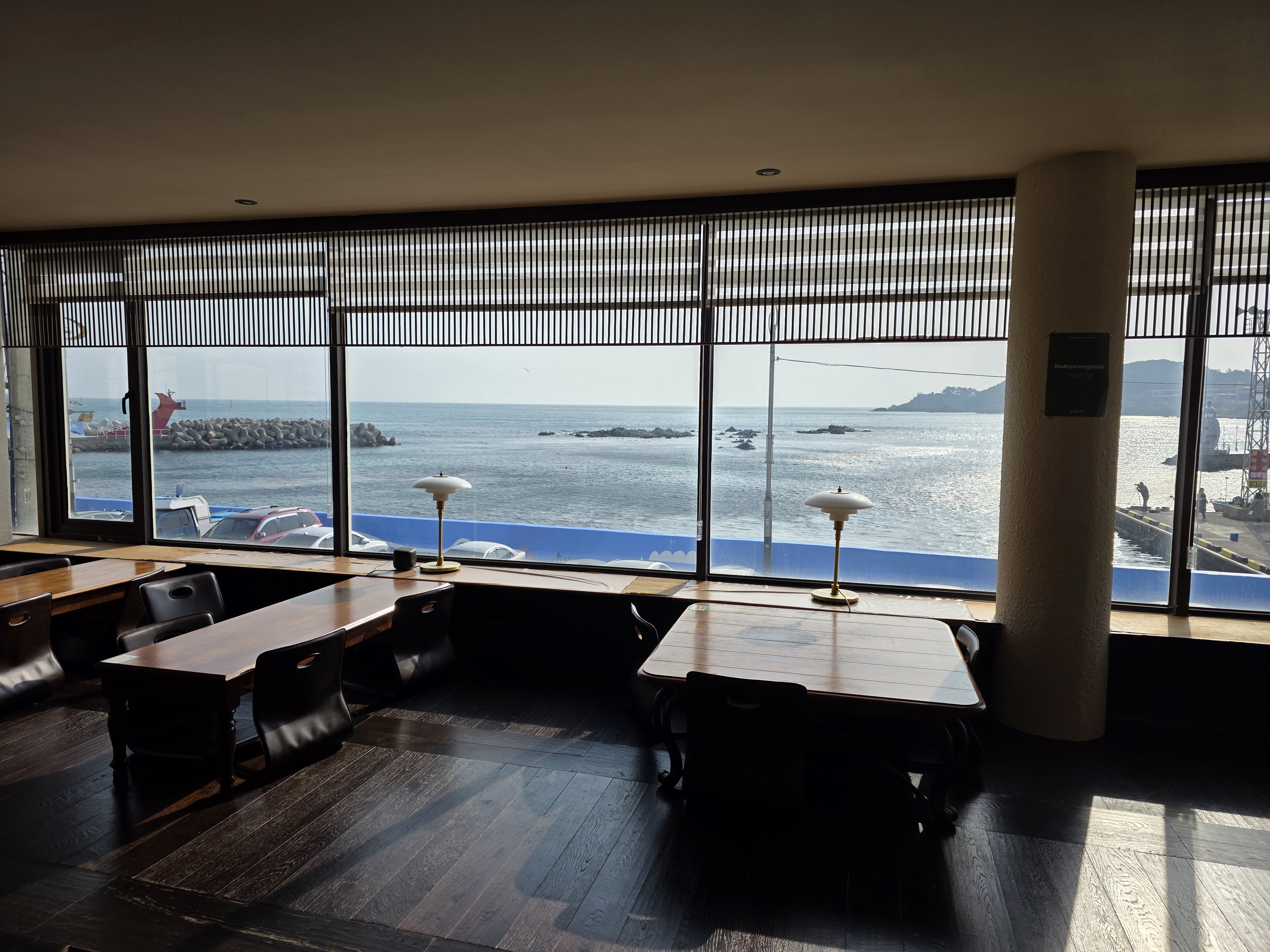 2층은 좌식 테이블이 있어 아늑하고 편안한 느낌이고, 3층은 일반 테이블 좌석으로 구성되어 있어 바다를 정면으로 바라보며 식사할 수 있어요.