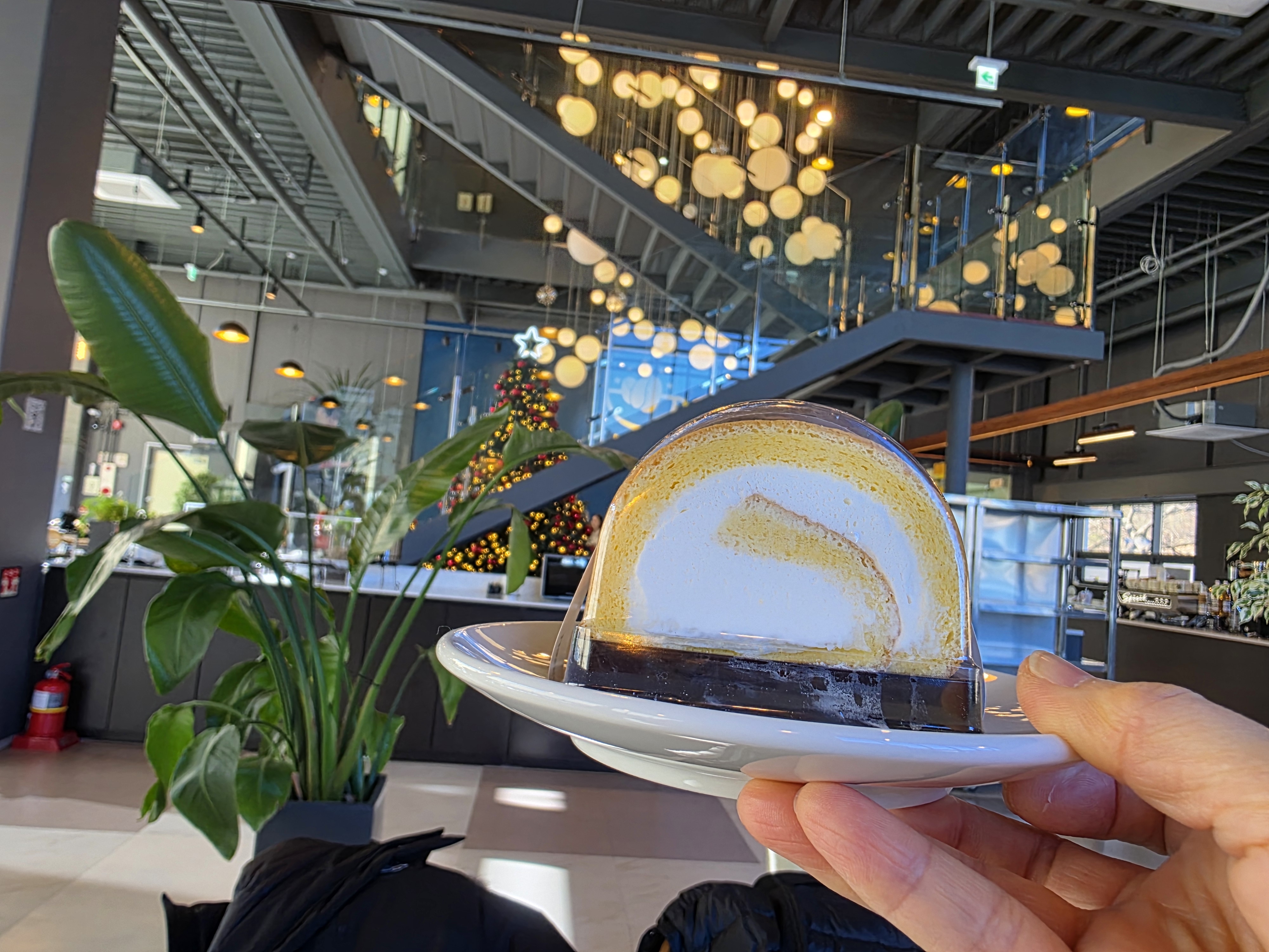아이스 코코넛 커피와 롤케이크를 주문했어요.