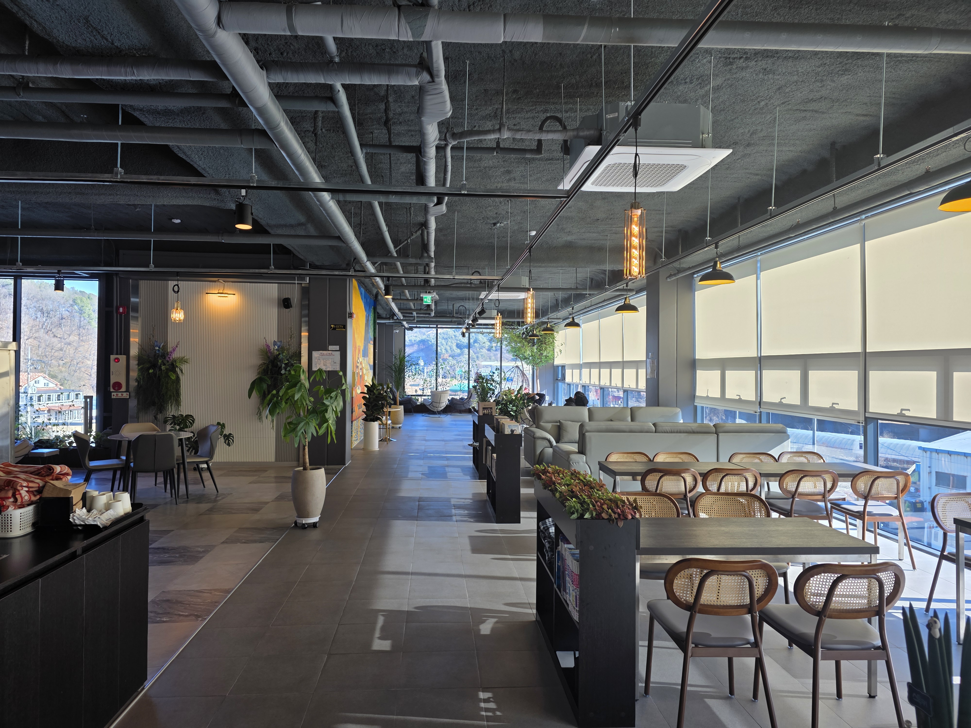 창가석이 많아 햇살 가득한 뷰를 즐기며 여유롭게 커피 한 잔 하기 좋은 공간.