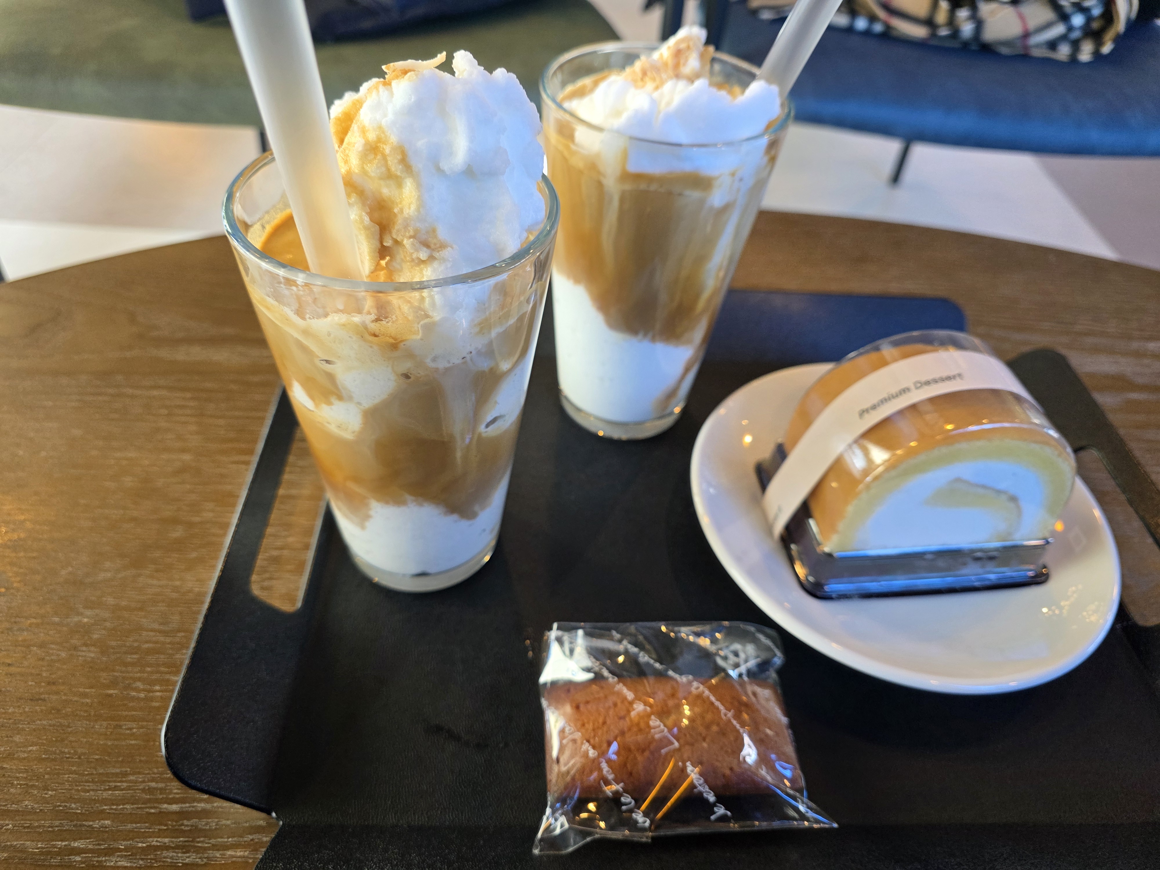 아이스 코코넛 커피와 롤케이크를 주문했어요.