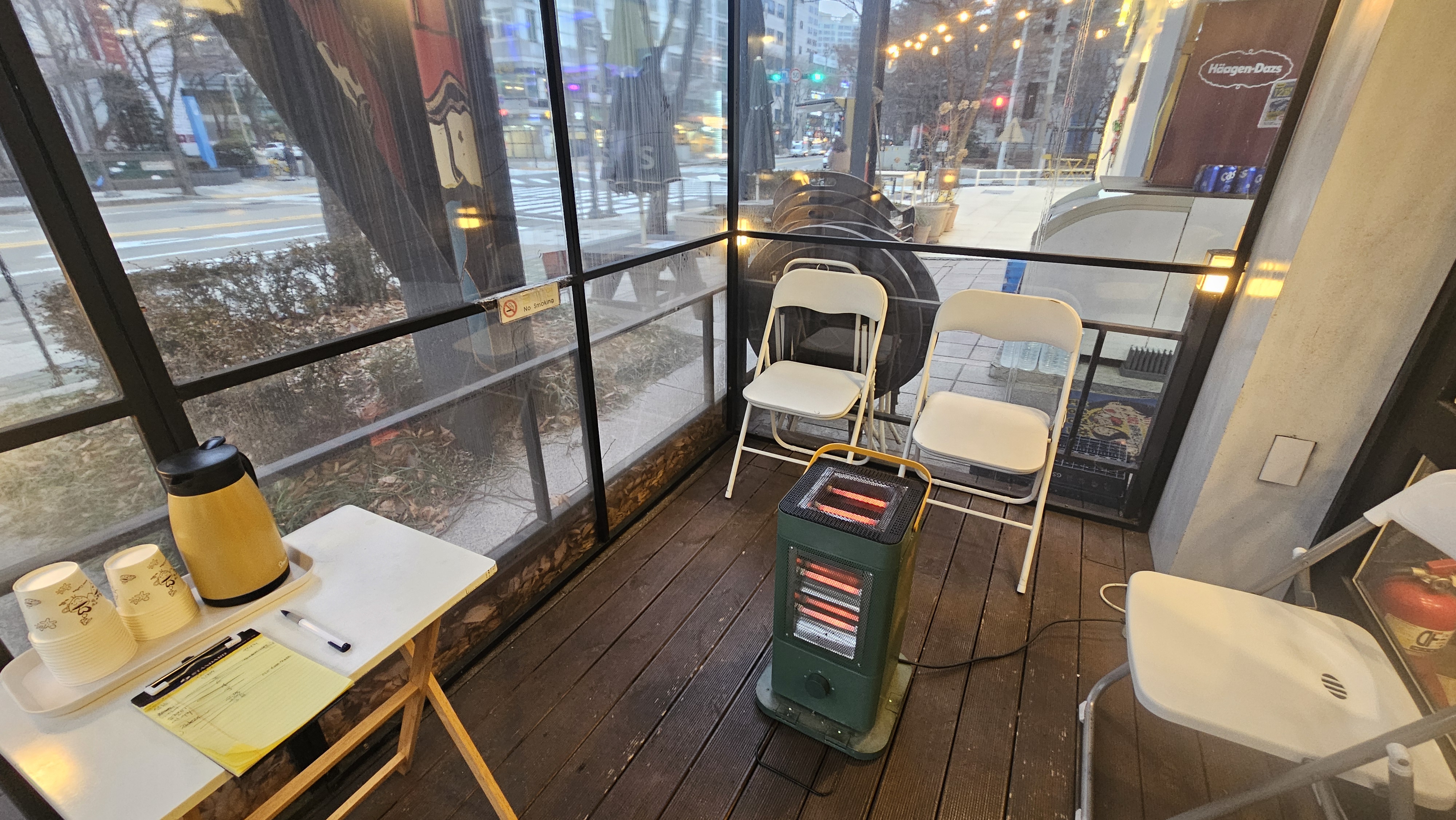 웨이팅 공간이 따뜻하게 마련되어 있어요