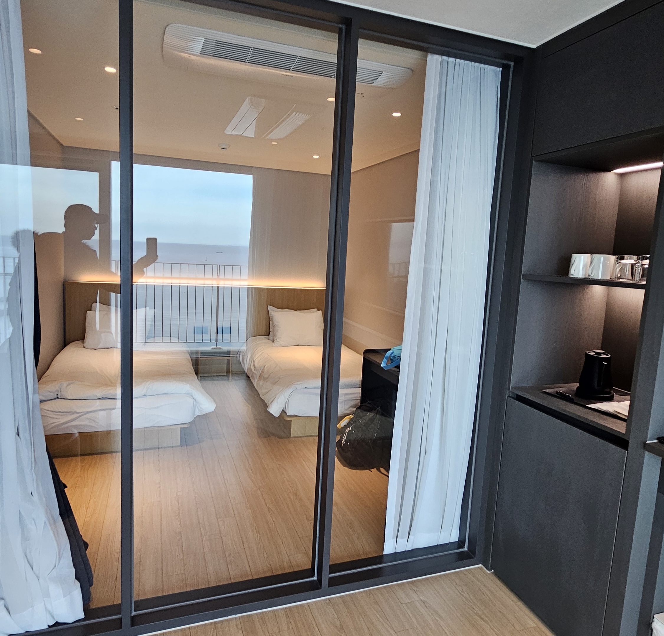 이 호텔의 가장 큰 매력은 단연 오션뷰였어요. 큰 창문 너머로 펼쳐진 바다는 마치 그림 속 풍경 같았고, 낮에는 햇살이 바다 위로 반짝이며 여행의 설렘을 더해주었어요.