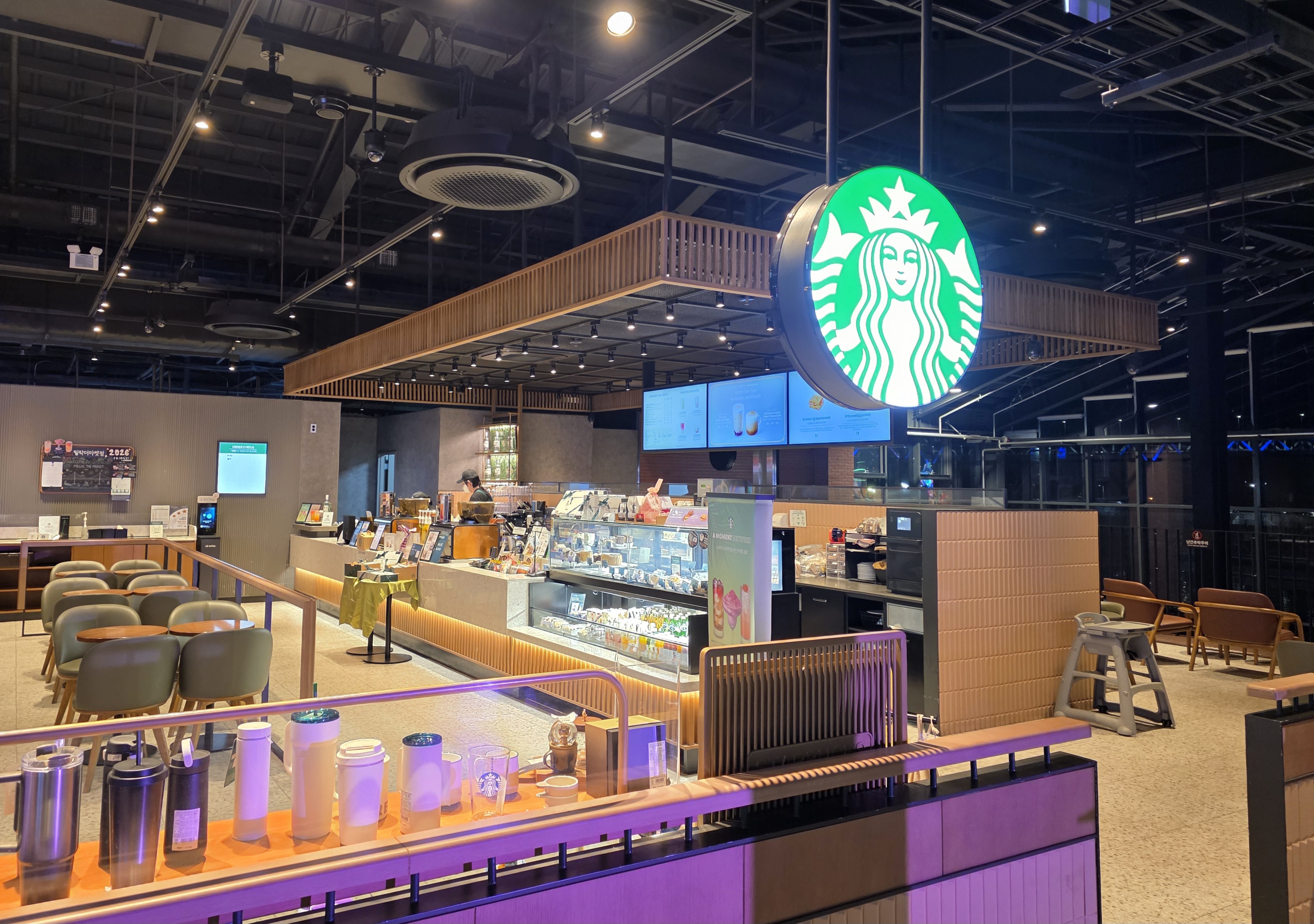 밀락더마켓은 스타벅스뿐만 아니라 다양한 매장이 모여 있는 복합 공간이에요.