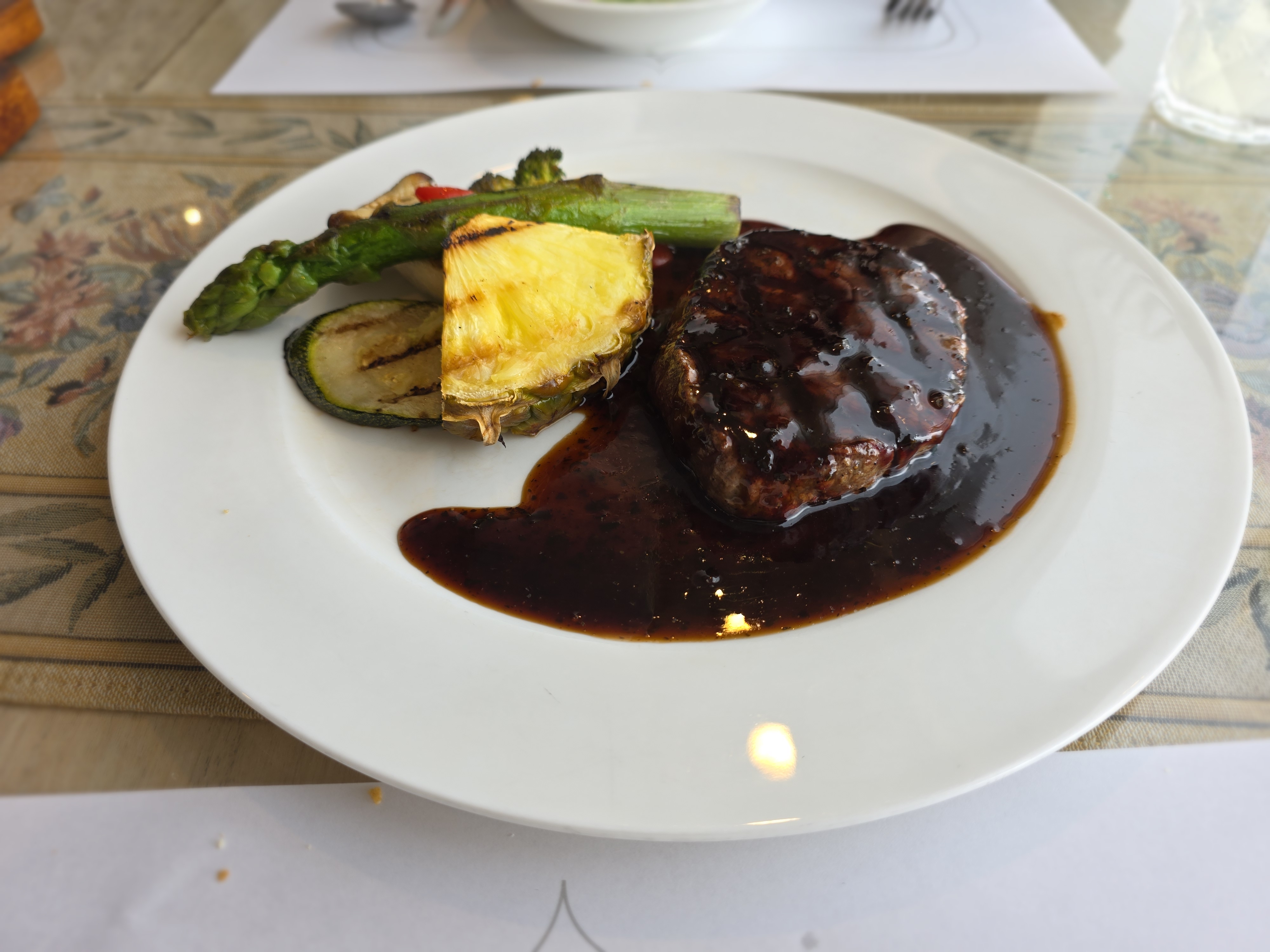 스테이크는 겉은 바삭하고 속은 촉촉하게 구워졌고, 발사미코 소스가 새콤달콤해서 입맛 확 살아요.