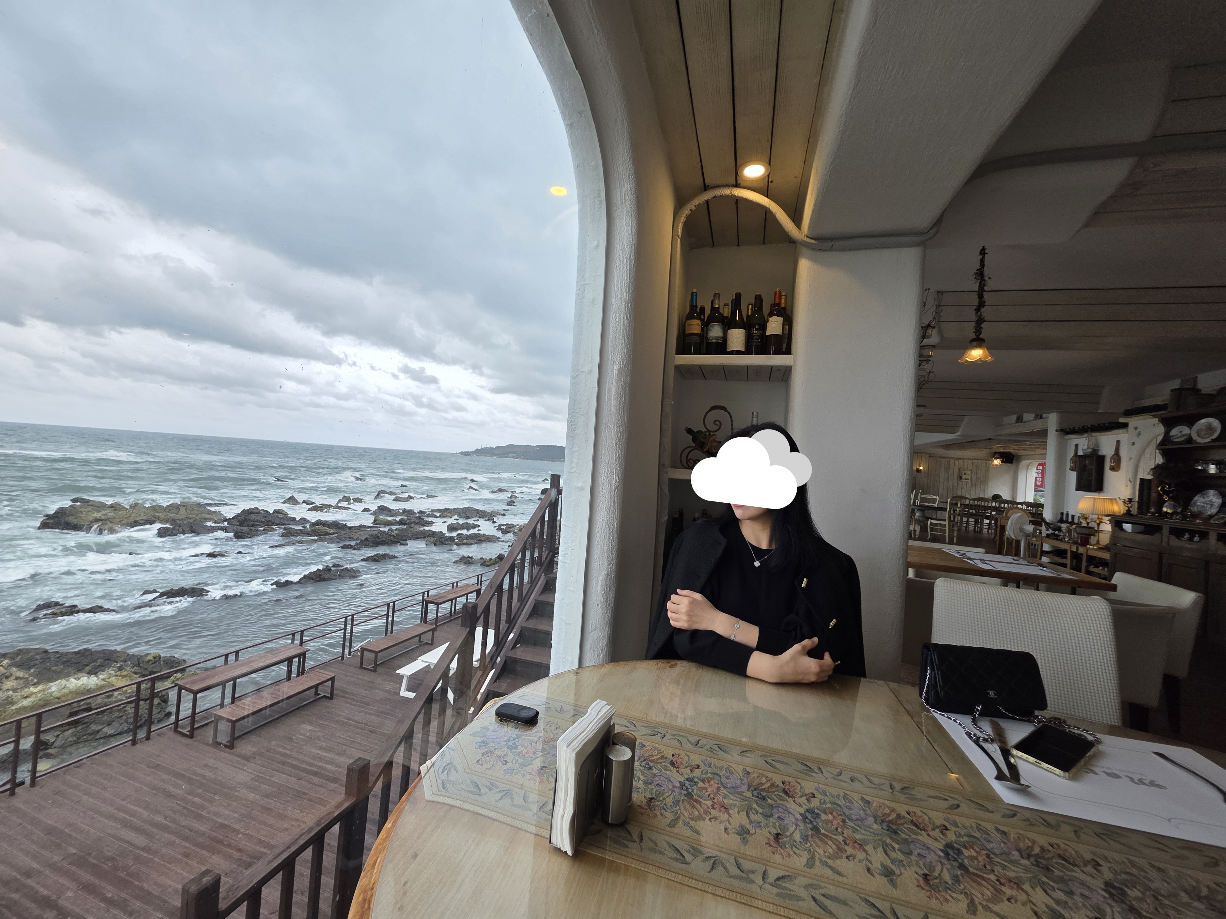 창밖으로 펼쳐지는 바다, 이 순간을 담지 않을 수 없죠.
