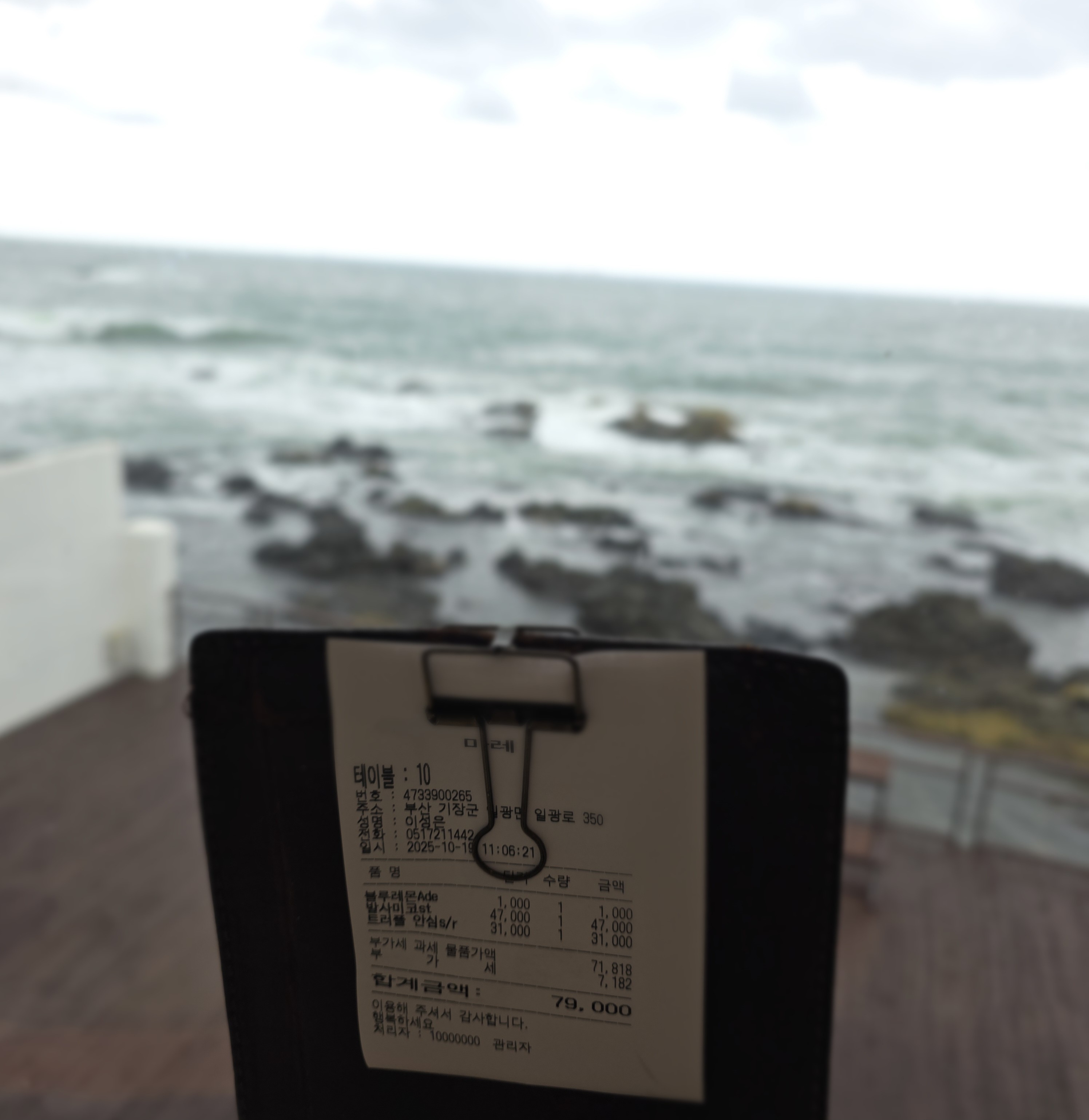 창밖으로 부서지는 파도소리, 넓은 하늘, 가을비까지… 진짜 그림 같았어요.