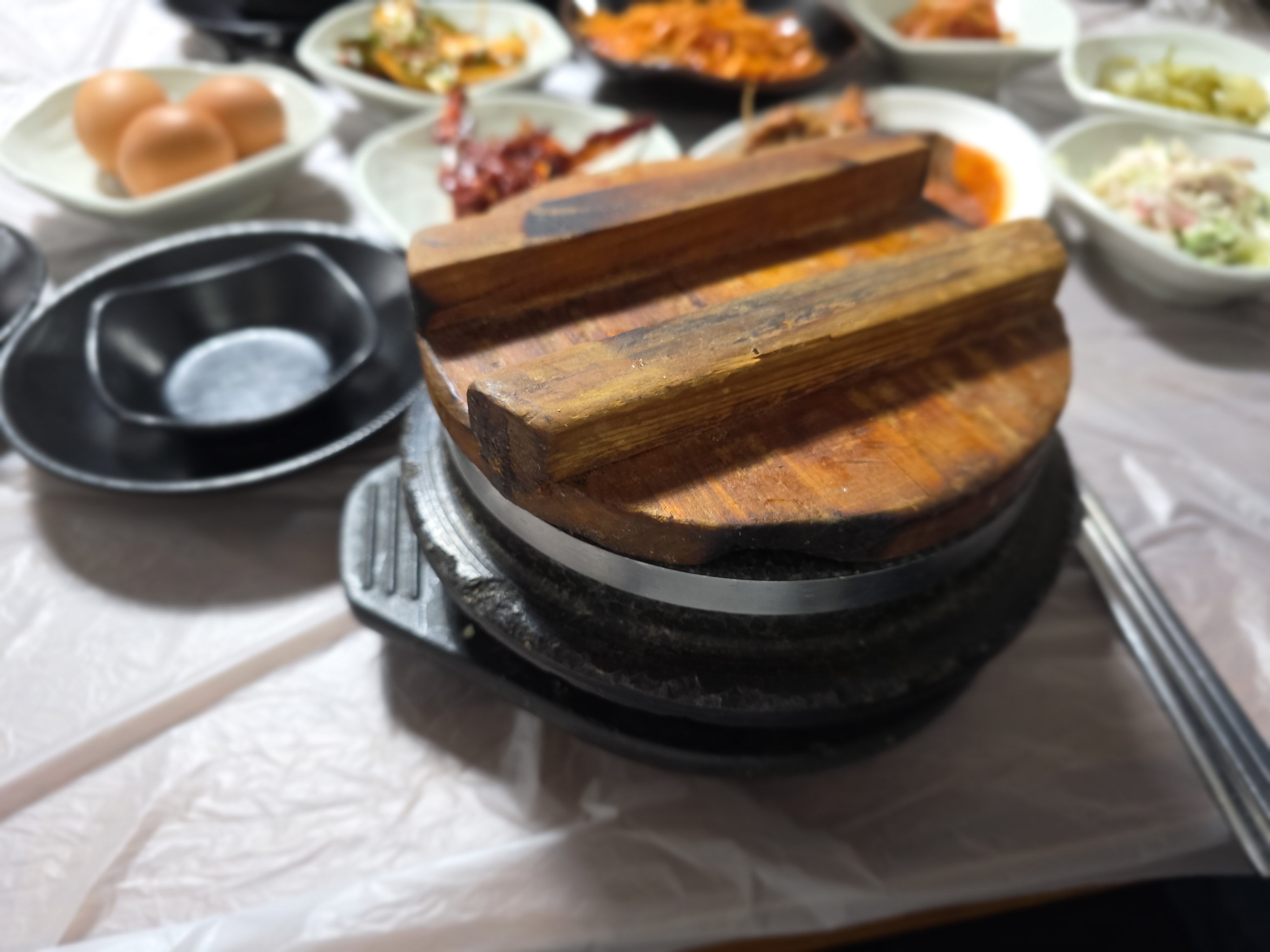 그리고 이 집만의 특이한 점이 있었어요. 바로 돌솥밥에 계란을 깨뜨려 먹는 방식이에요. 뜨끈한 돌솥밥 위에 계란을 톡 깨서 넣으니까, 밥알 사이로 노른자가 스며들면서 고소함이 배가 됐어요. 살짝 익은 계란이 밥과 어우러져서 국물에 말아 먹을 때 정말 환상적이었어요.