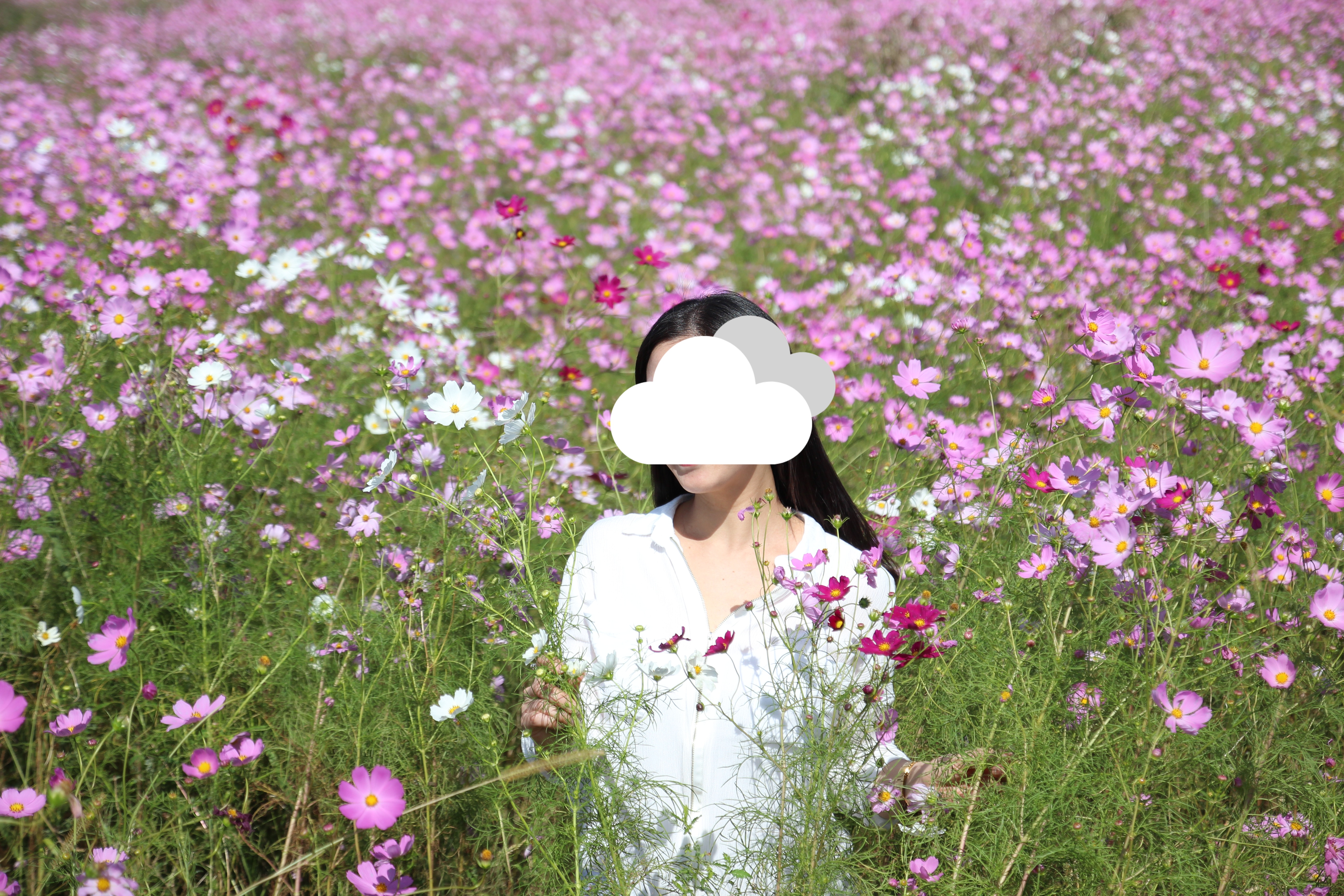 분홍빛 물결 속 산책자 코스모스 사이로 난 길을 걷는 사람 한 명. 마치 꽃밭 속 주인공 같아요!