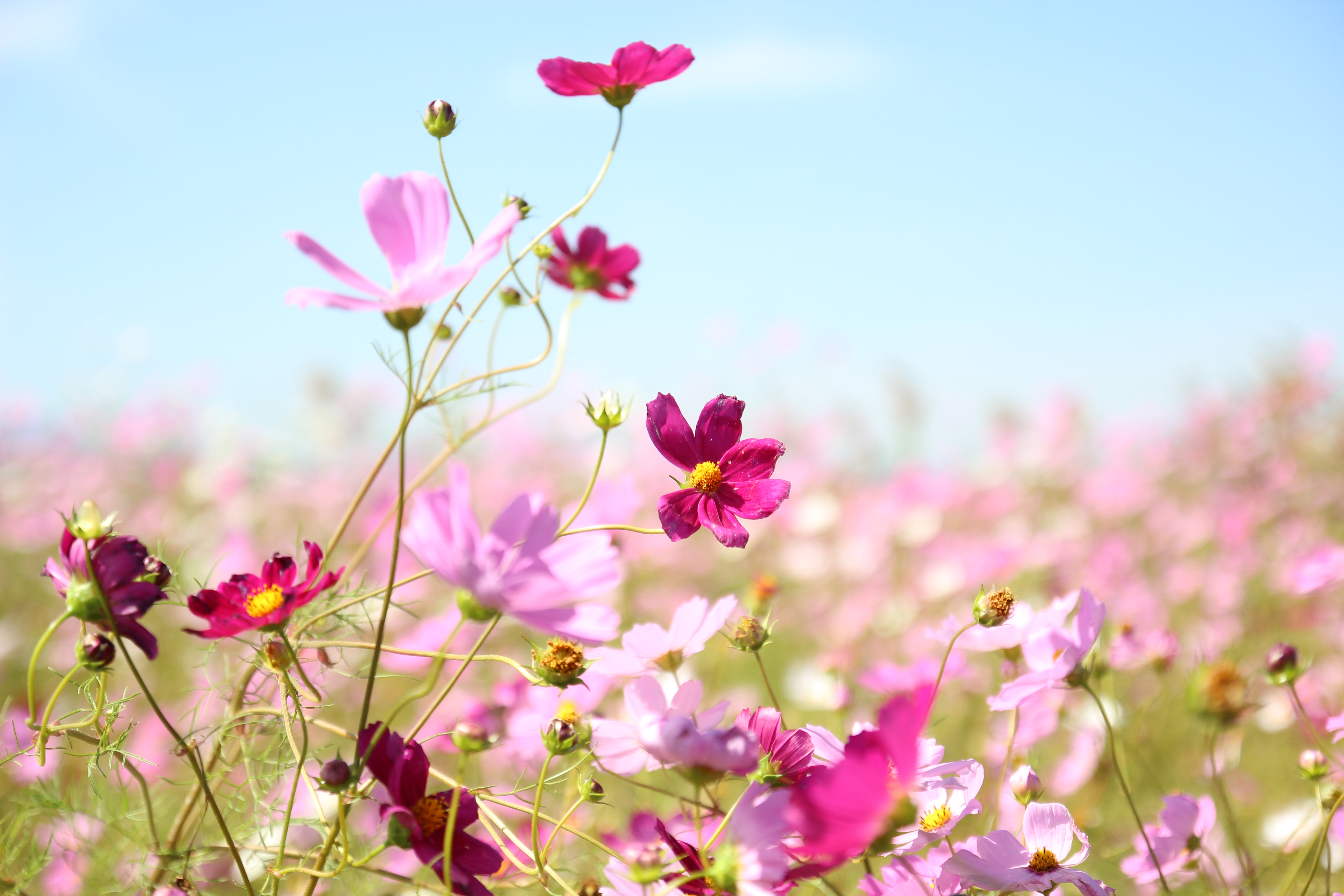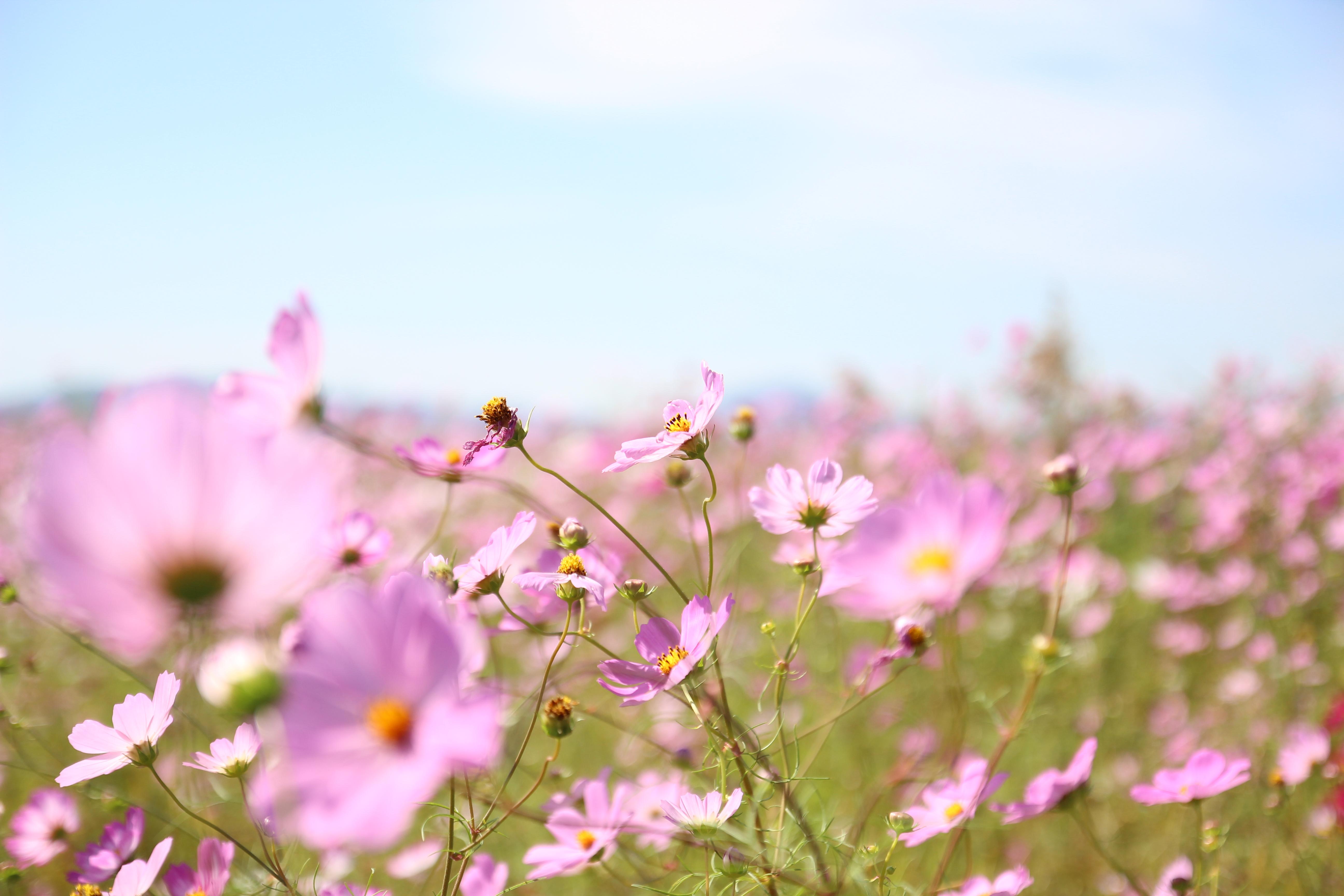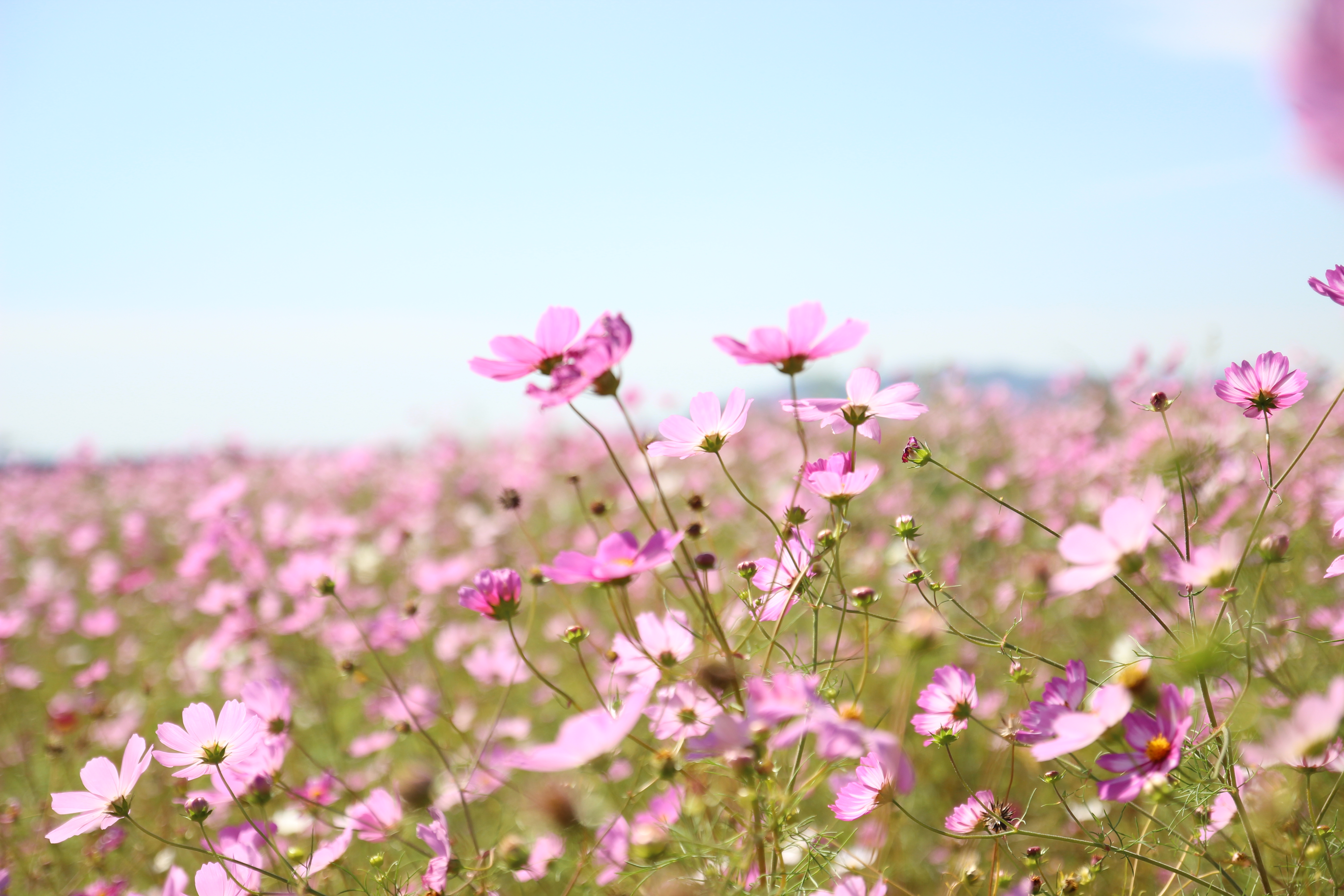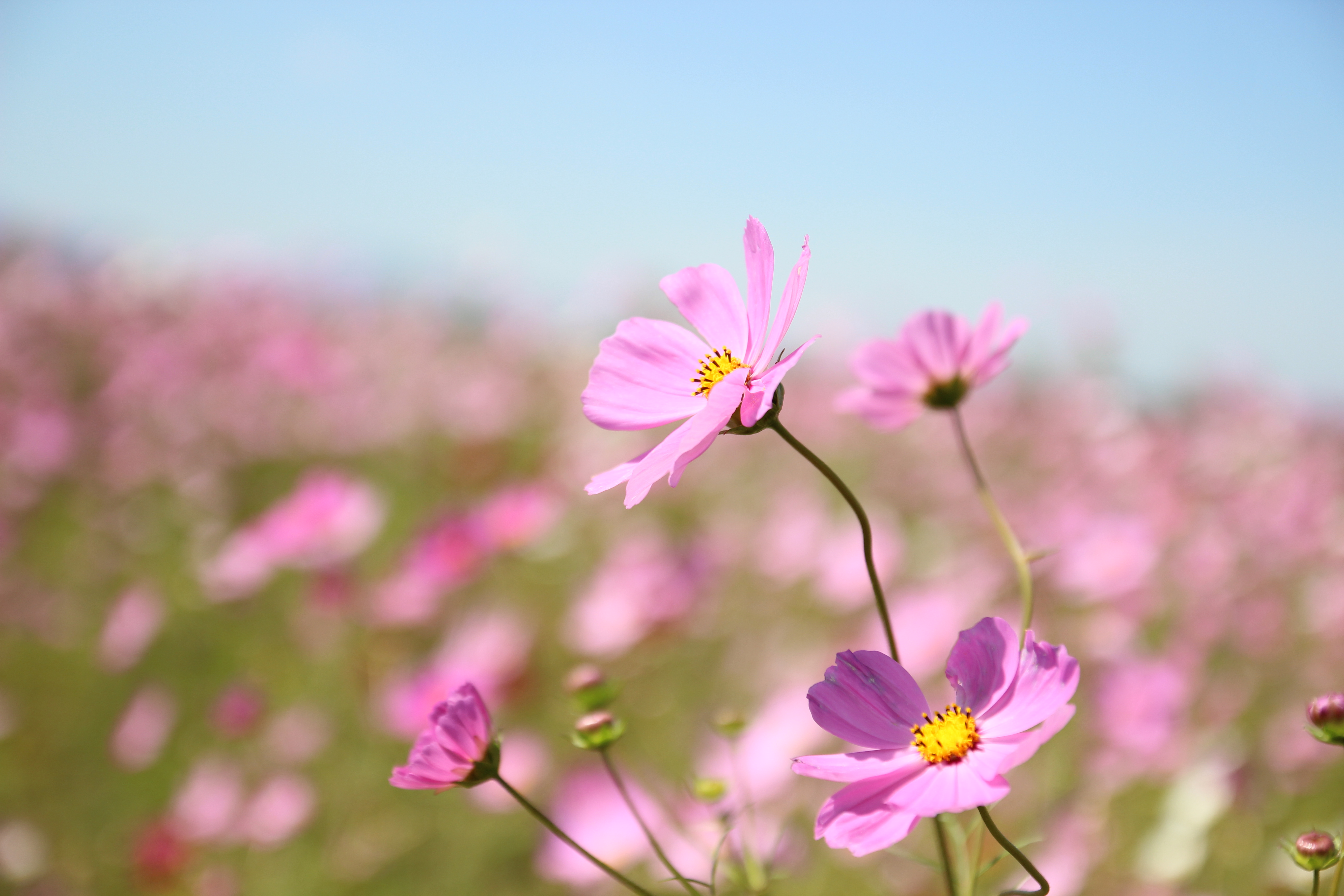 하늘과 꽃의 완벽한 조화 파란 하늘 + 분홍 코스모스 = 가을 공식. 이 조합은 무조건 예쁨!
