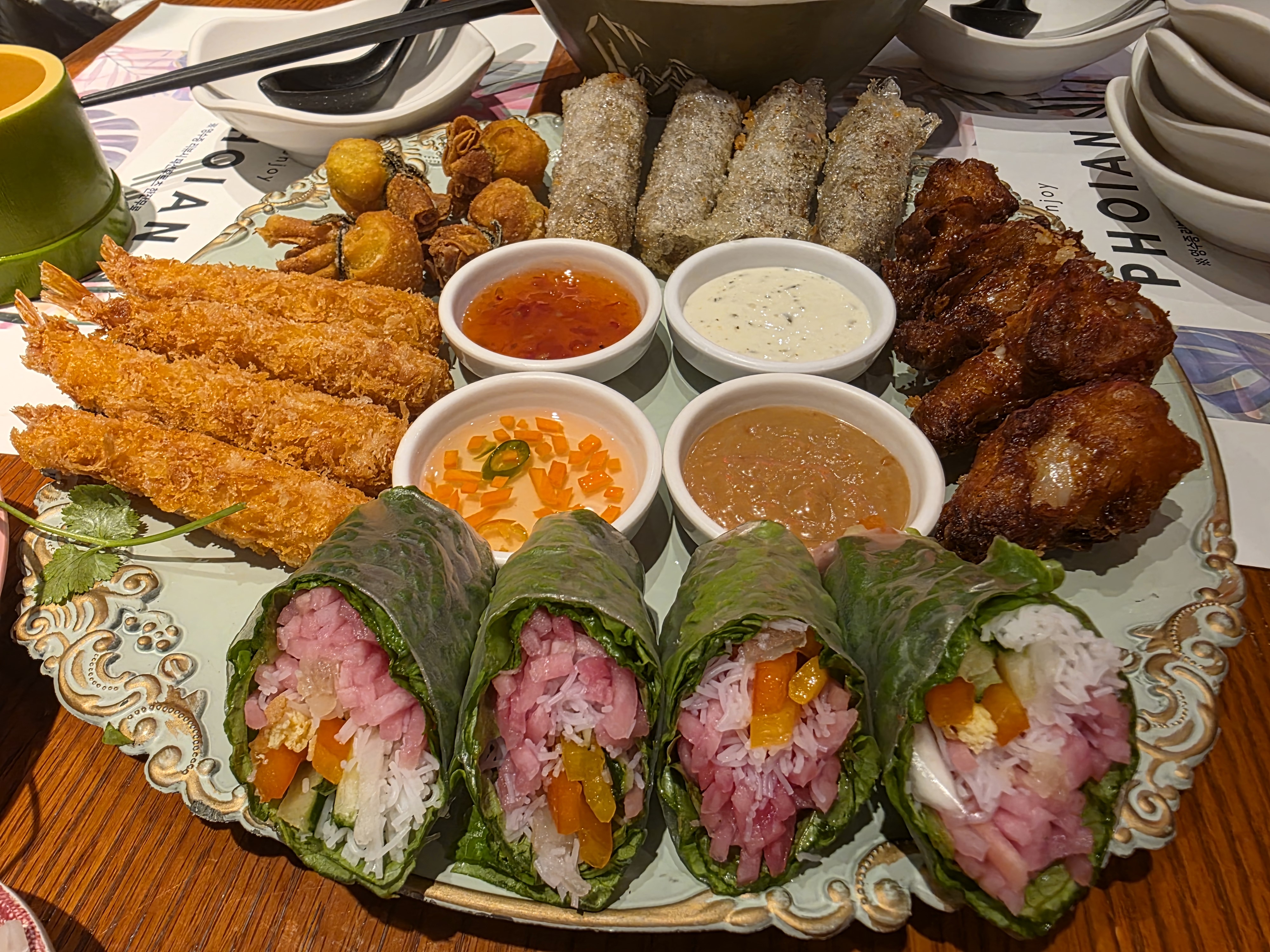 오늘은 포이안 스페셜 세트와 분짜, 쌀국수를 주문해 한 상 가득 즐겼어요.