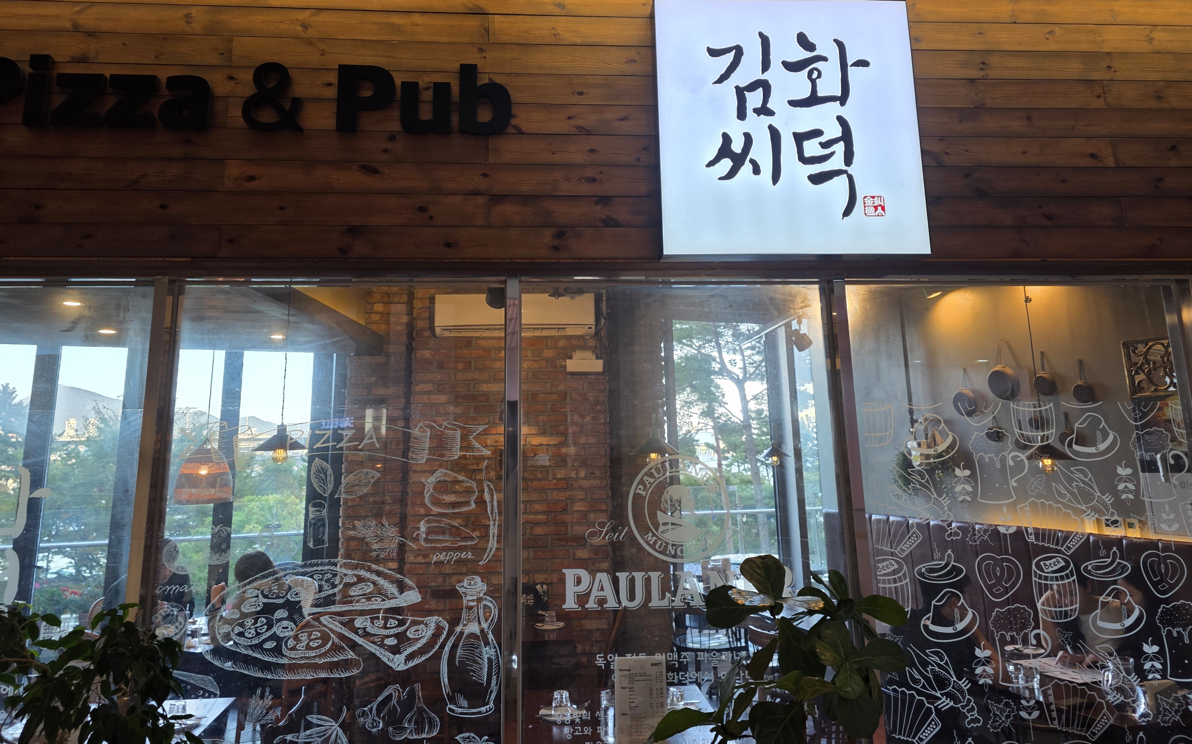 따뜻한 우드톤 인테리어, 피자와 어울리는 아늑한 공간이네요
