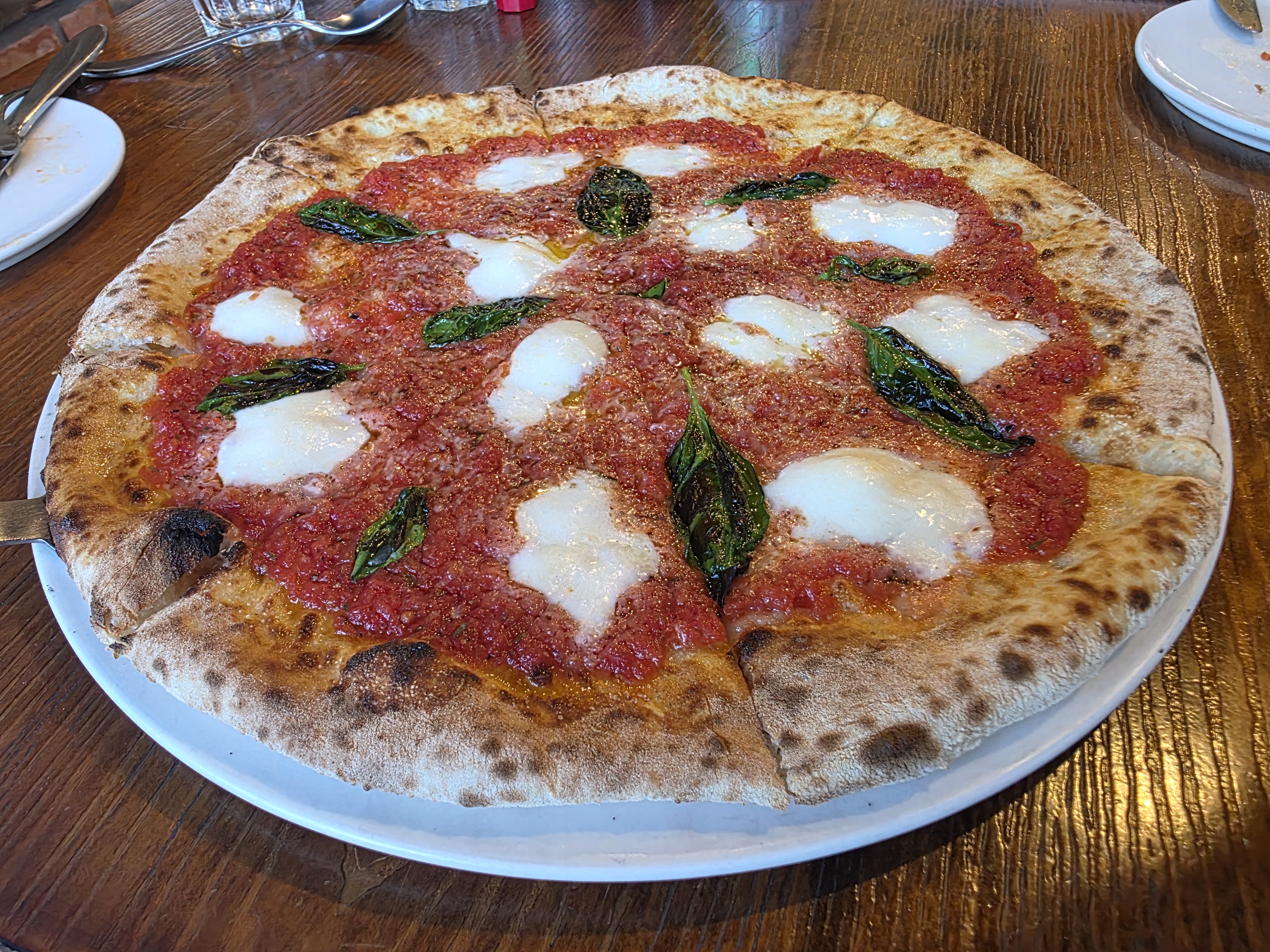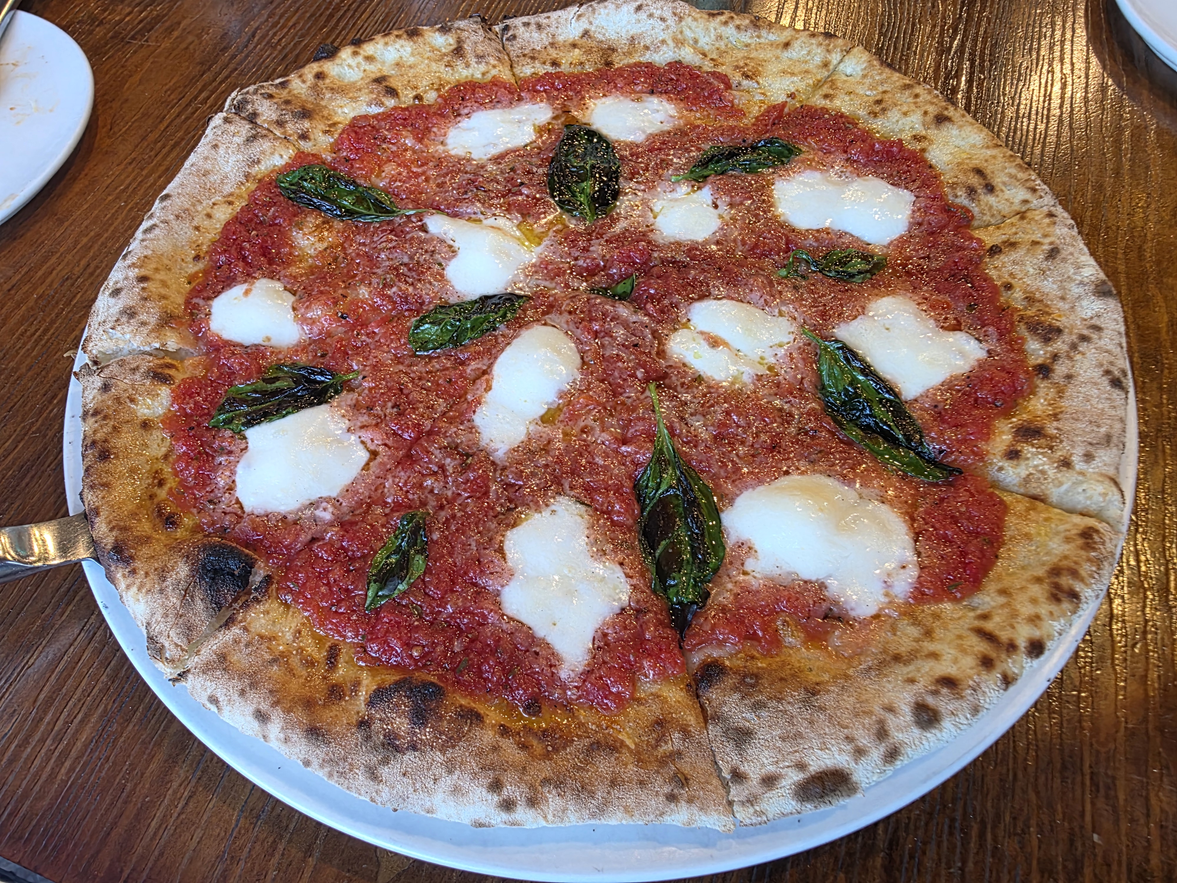- 마르게리따 피자: 클래식한 조합의 정석, 토마토소스+모짜렐라+바질