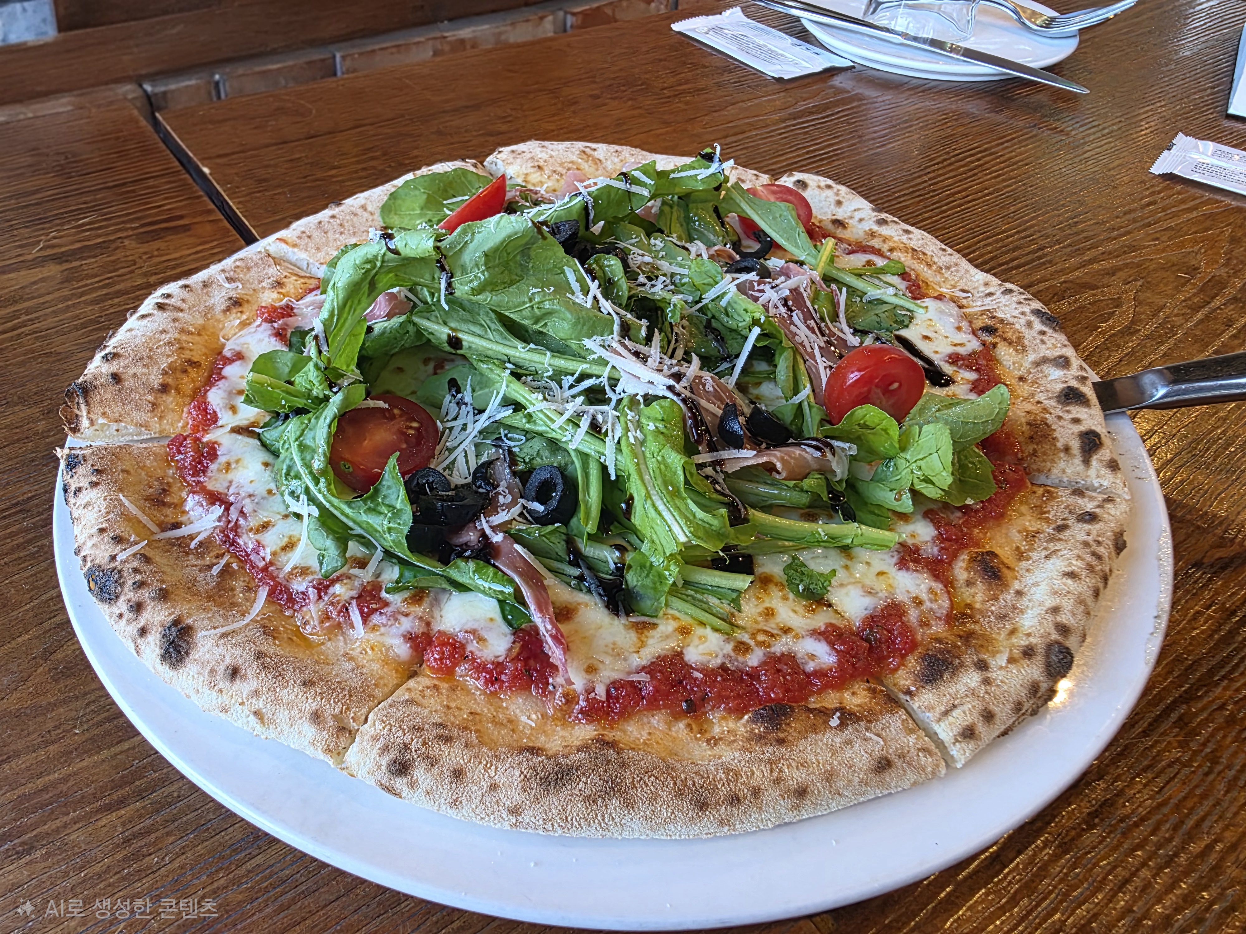신선한 루꼴라와 부드러운 부팔라 치즈가 듬뿍 올라간 시그니처 메뉴. 향긋하고 고소한 맛이 일품이에요.