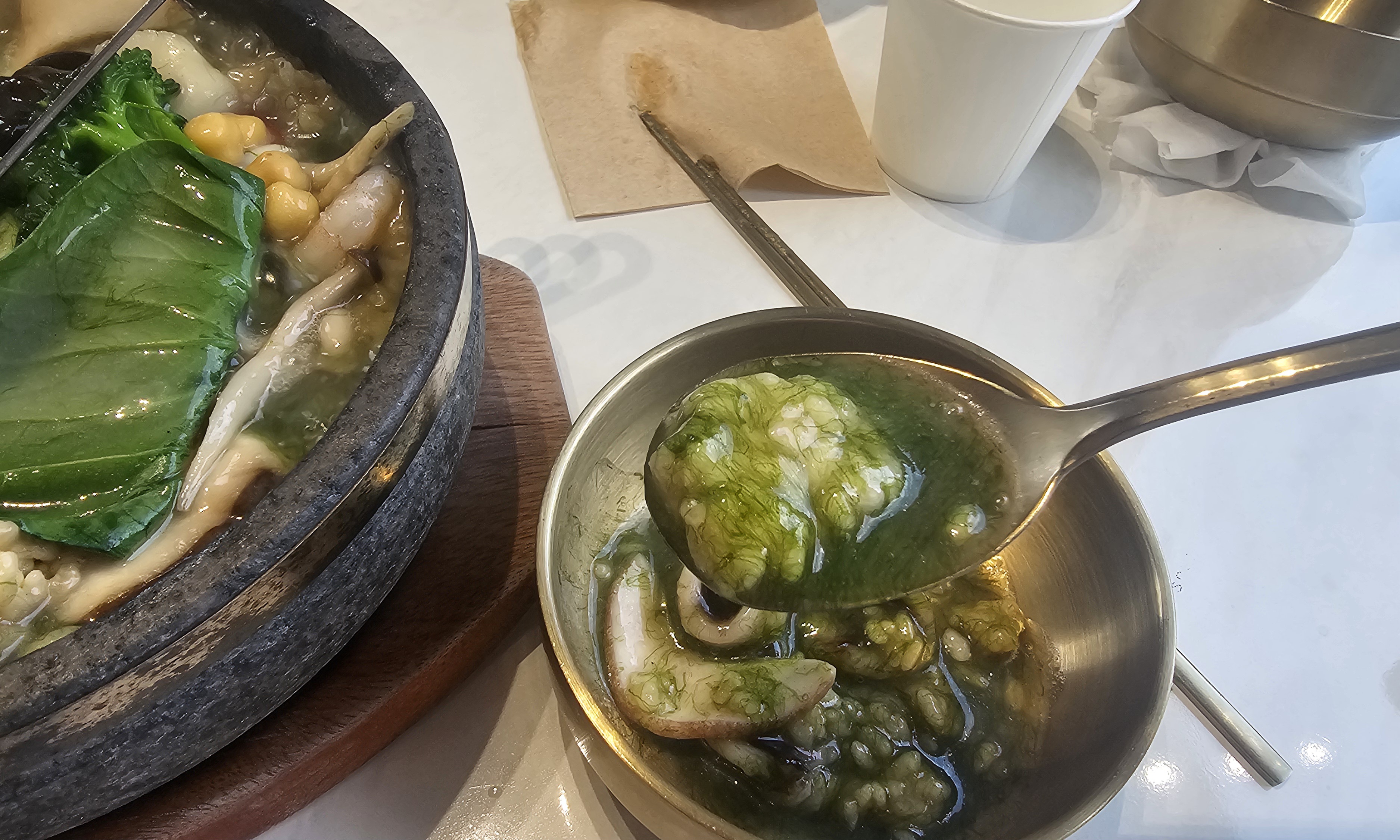해물누룽지탕 위에 올라간 쭈꾸미는 탱글탱글하고 윤기가 흐를 정도로 신선했어요. 매생이는 해물 육수와 어우러져 바다의 풍미를 그대로 전달해주는 느낌이었고, 입안에서 부드럽게 퍼지며 감칠맛을 더했어요. 특히 매생이 특유의 향과 식감이 해물과 잘 어우러져 입맛을 제대로 저격했답니다.