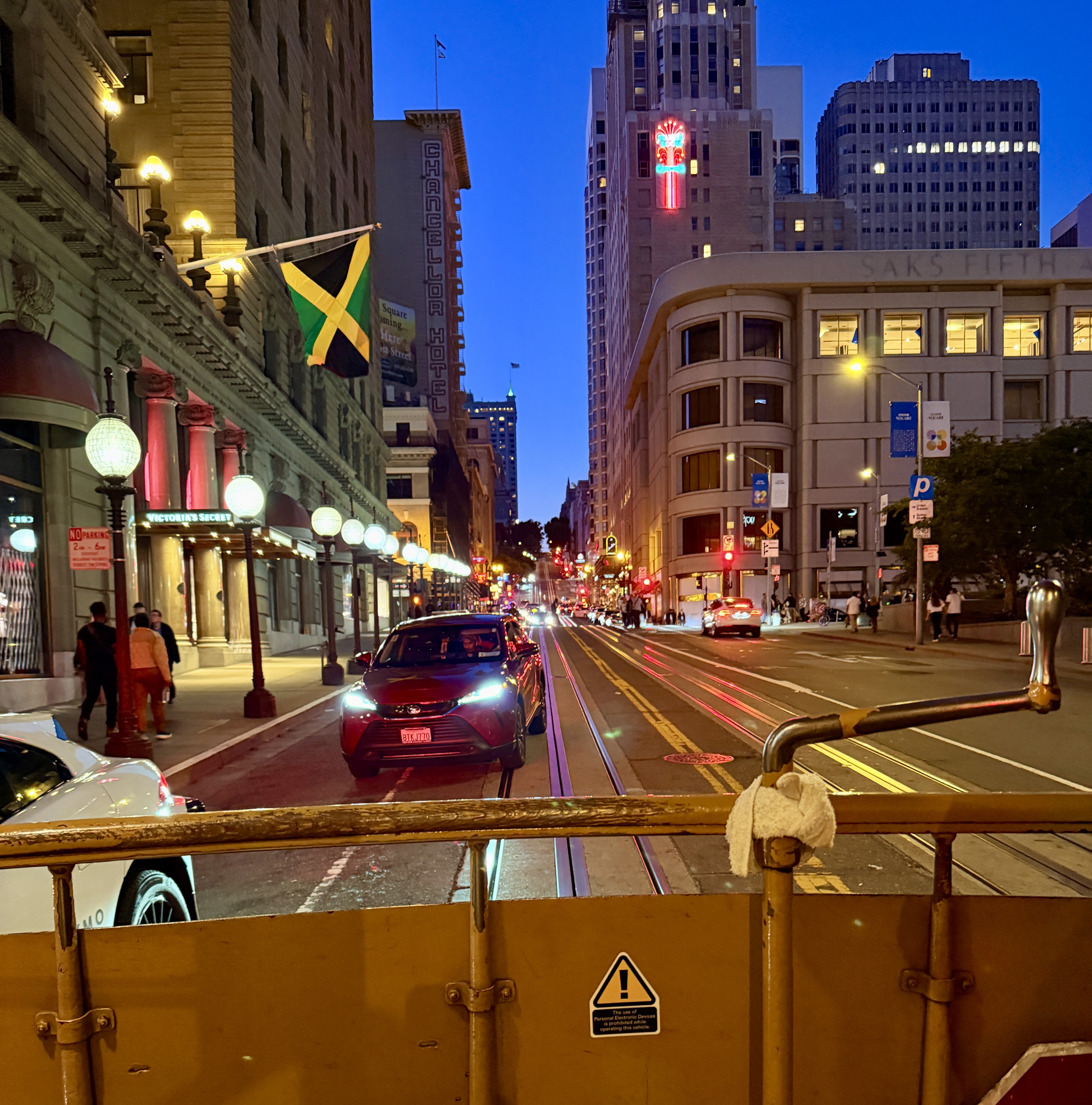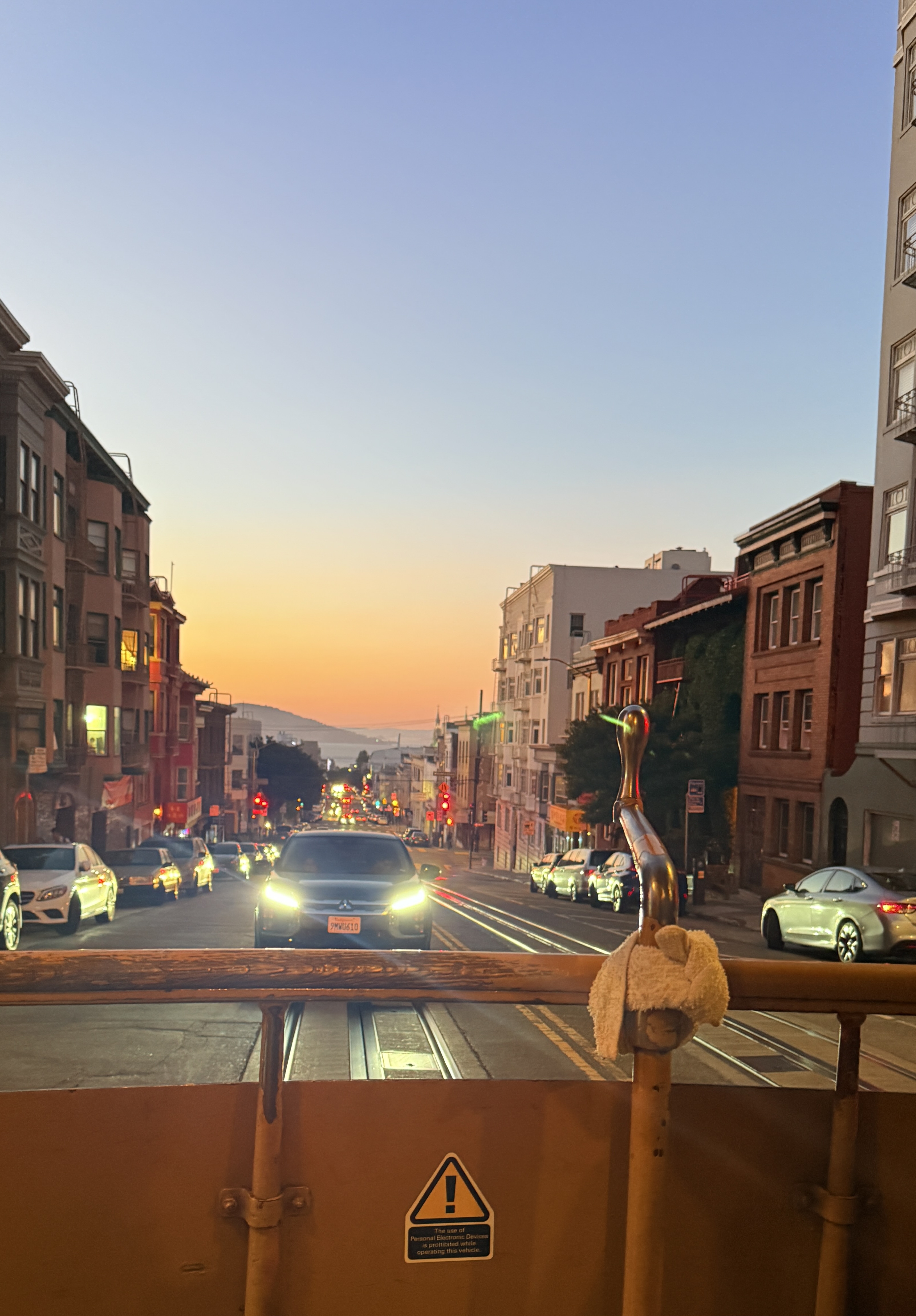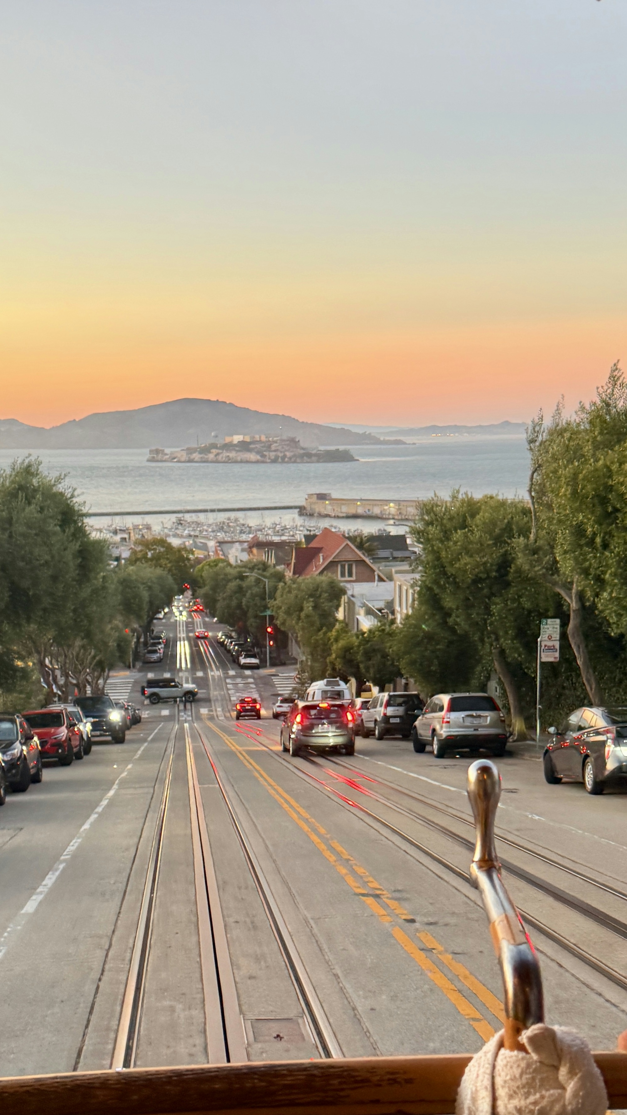 해질녘 시간대(여름 기준 오후 6시 30분~7시 30분)에 탑승하면, 도시가 황금빛으로 물드는 풍경을 감상할 수 있어요. 언덕 정상 부근에서는 금문교(Golden Gate Bridge)가 멀리 보이며, 바다와 하늘이 붉게 물드는 장면이 펼쳐져요.