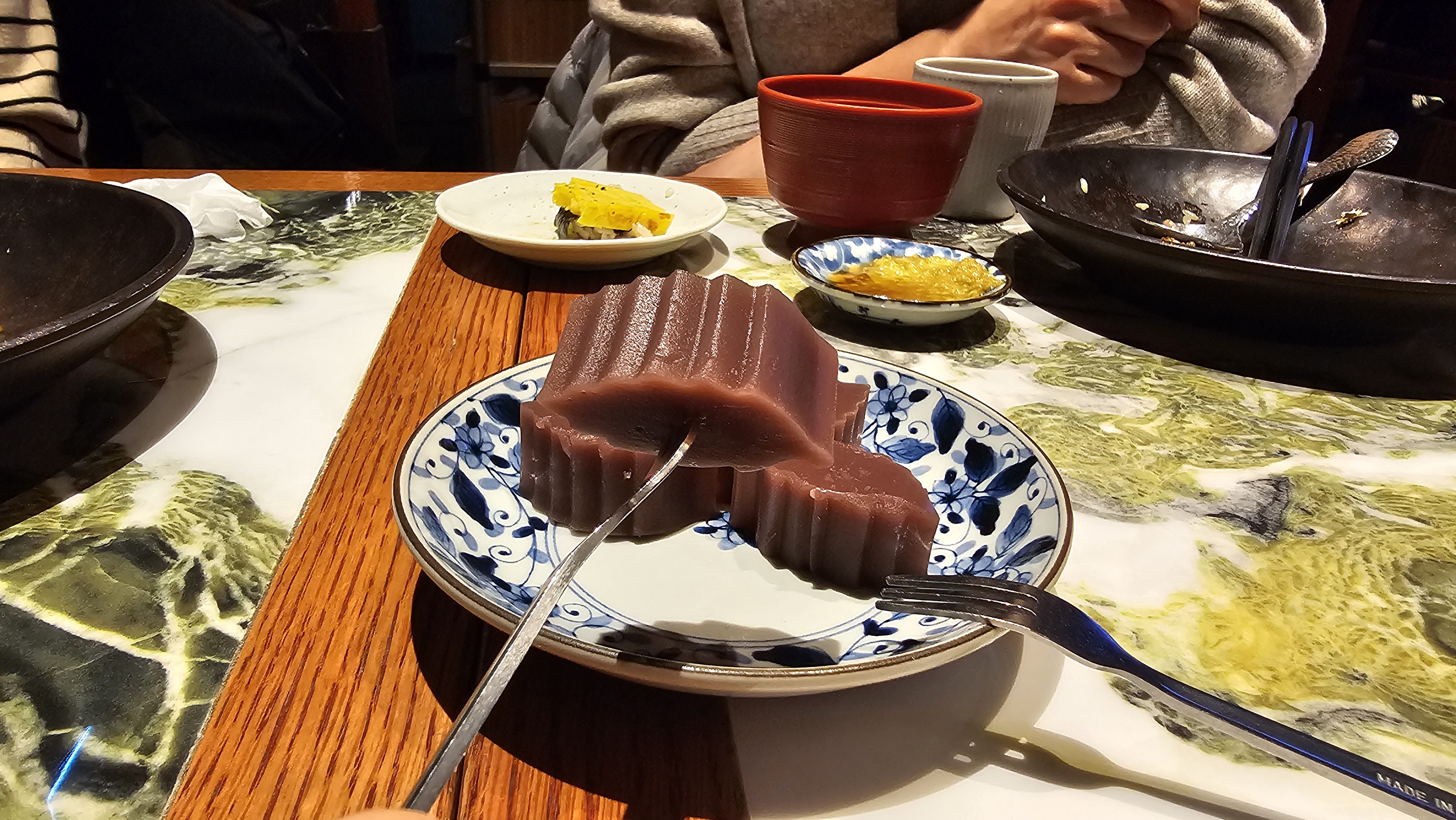 - 후식: 마지막엔 깔끔한 디저트가 양갱이 나왔어요. 진한 팥앙금이 좋았어요.