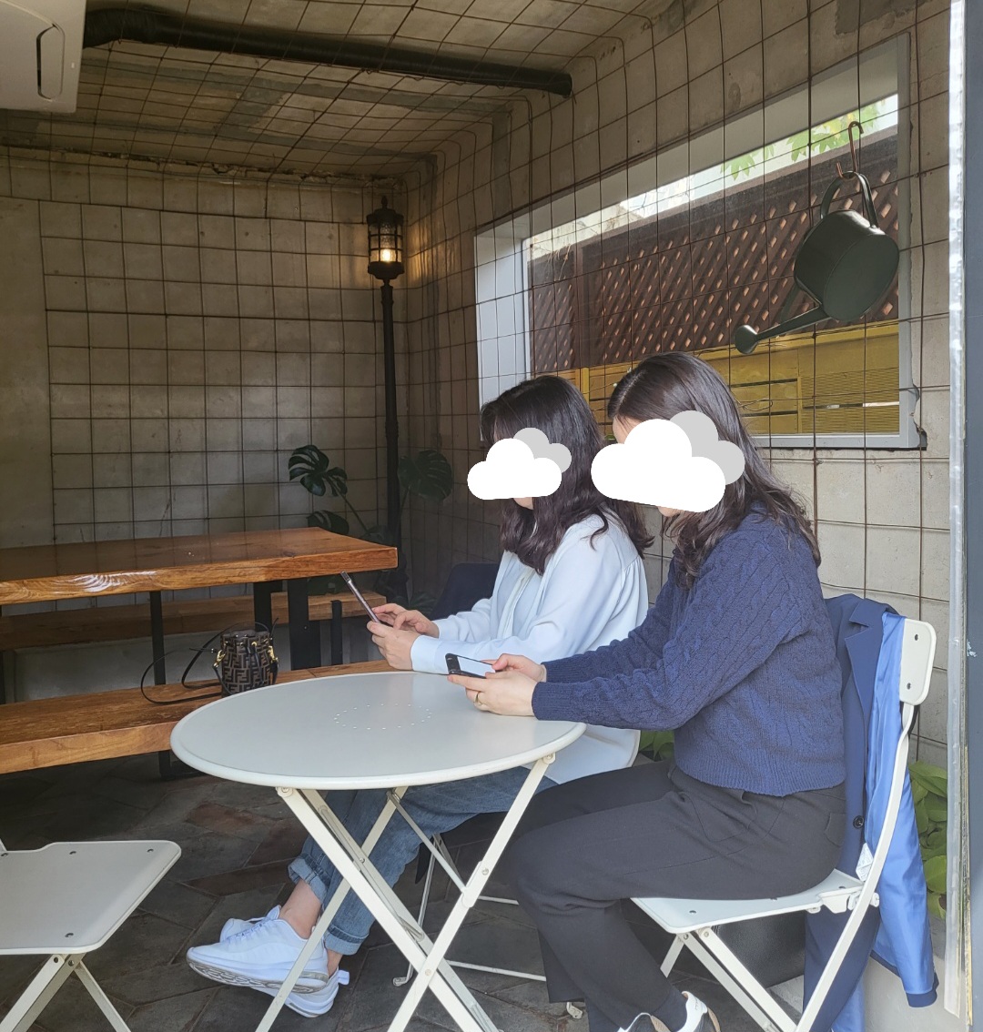 햇살 가득한 테라스에서 수다 타임을 즐겼답니다.