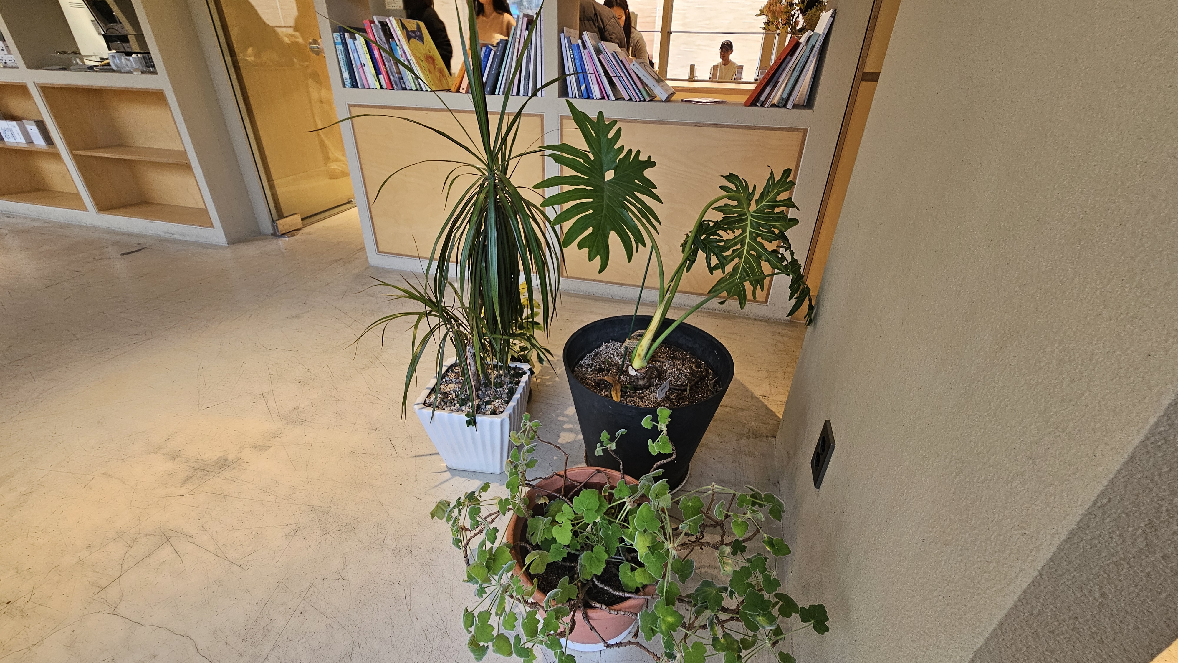 우드톤 인테리어와 식물들이 어우러져 마치 숲속 라운지에 온 듯한 느낌을 줘요.