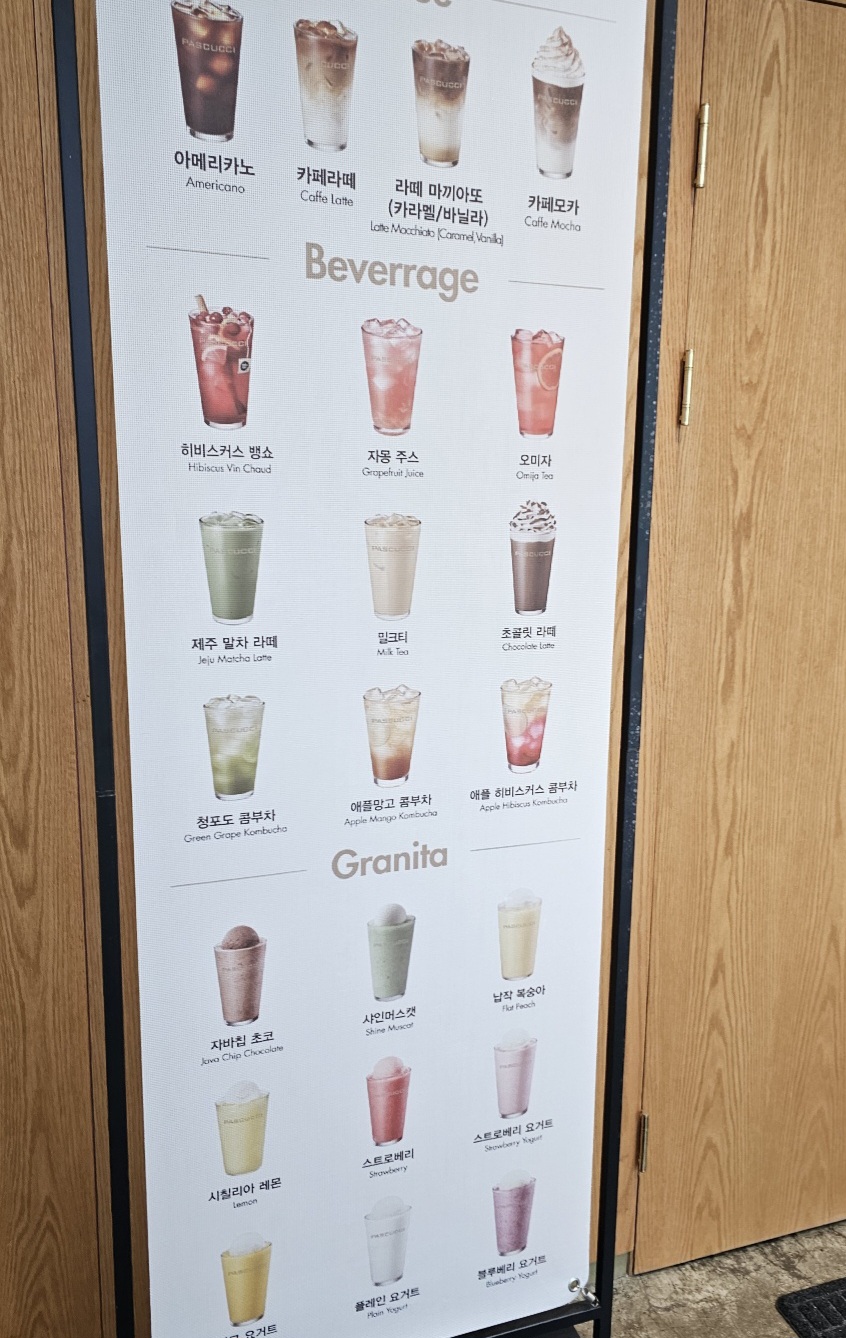 이곳은 일반 파스쿠찌 매장과 달리 브런치 메뉴가 다양하게 준비되어 있어요. 샌드위치, 샐러드, 파니니, 디저트류까지 골라 먹는 재미가 있답니다.
