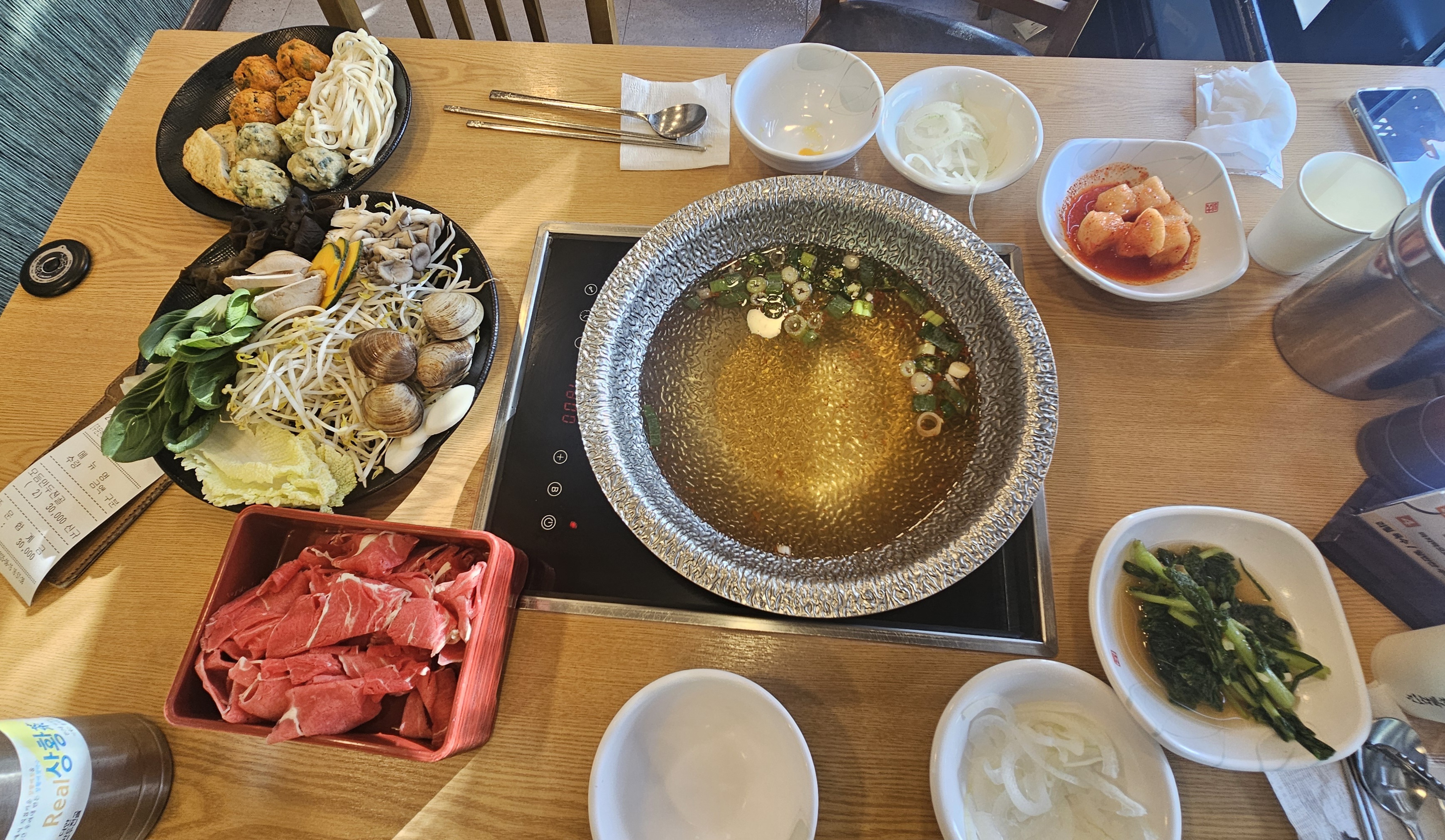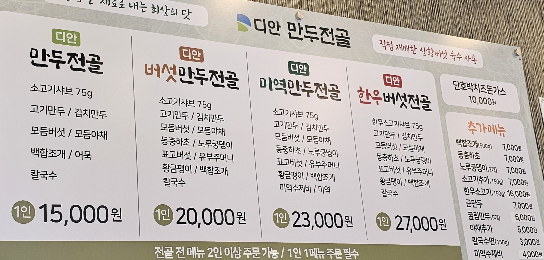 메뉴판 앞에서 고른 만두전골, 저녁 선택으로 후회 없었어요.