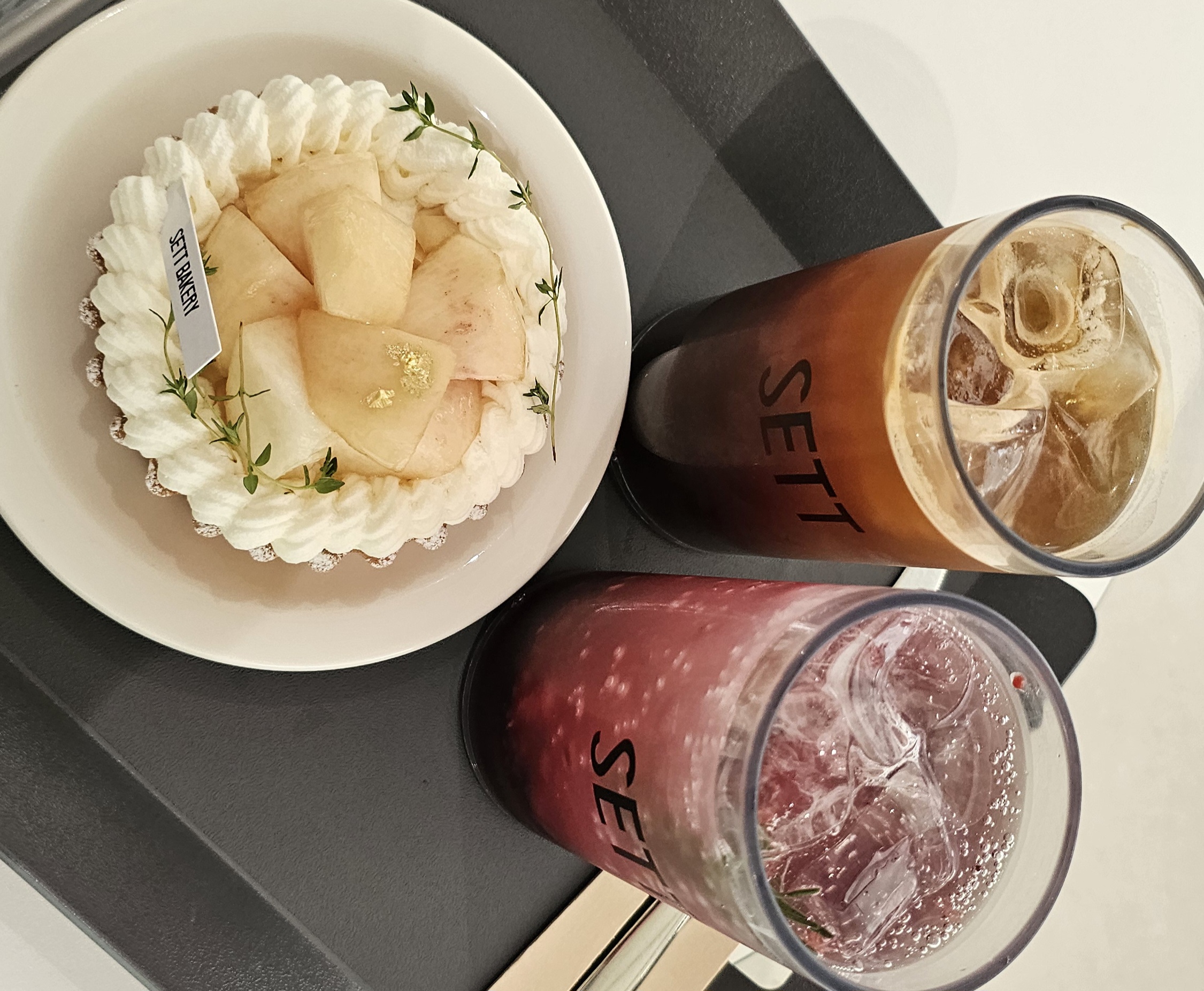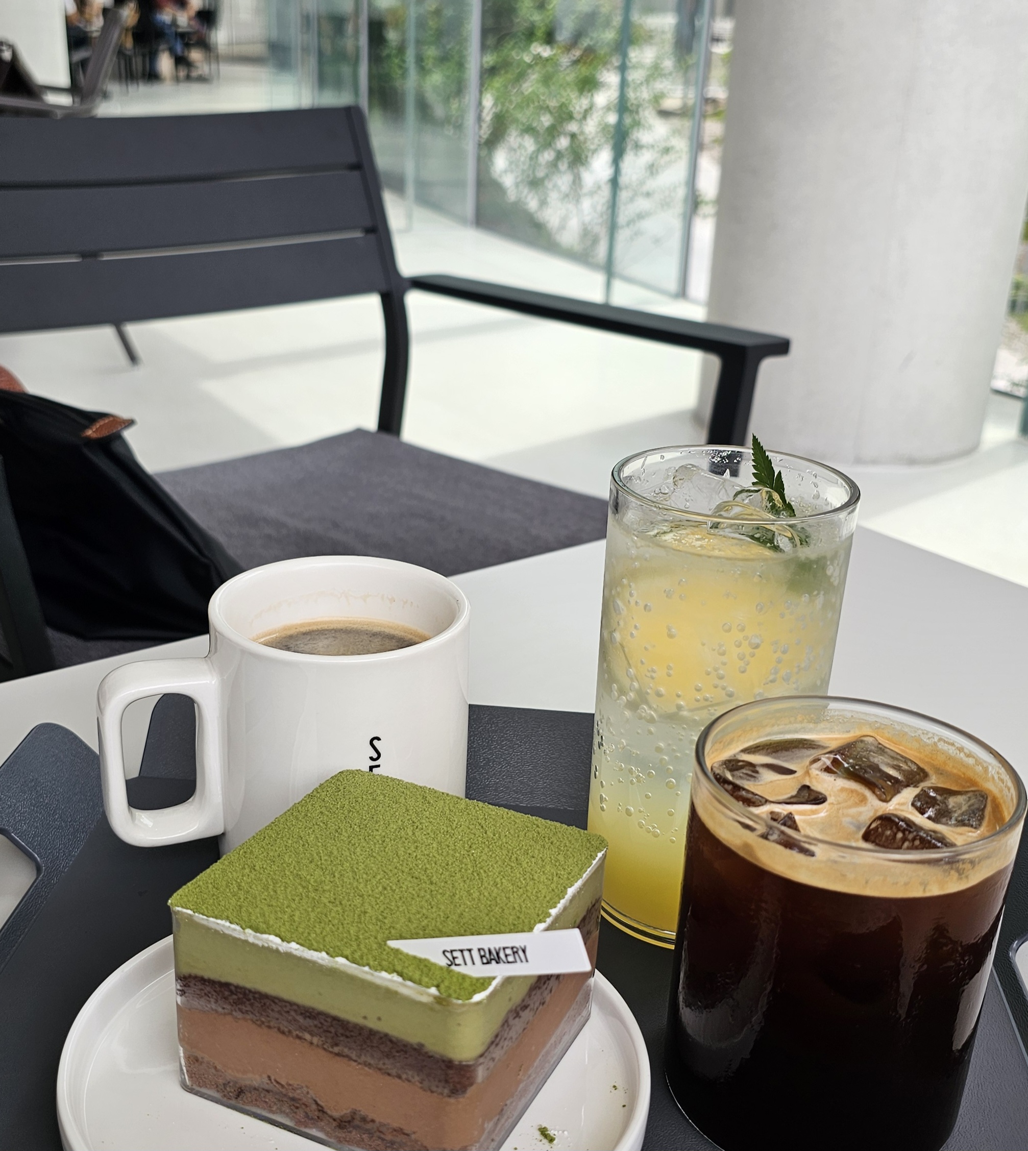 디저트는 ‘SETT BAKERY’라는 이름으로 따로 브랜딩되어 있는데, 그만큼 퀄리티와 비주얼 모두 만족스러워요. 가격대는 아이스 아메리카노 기준 7,000원으로 다소 높은 편!