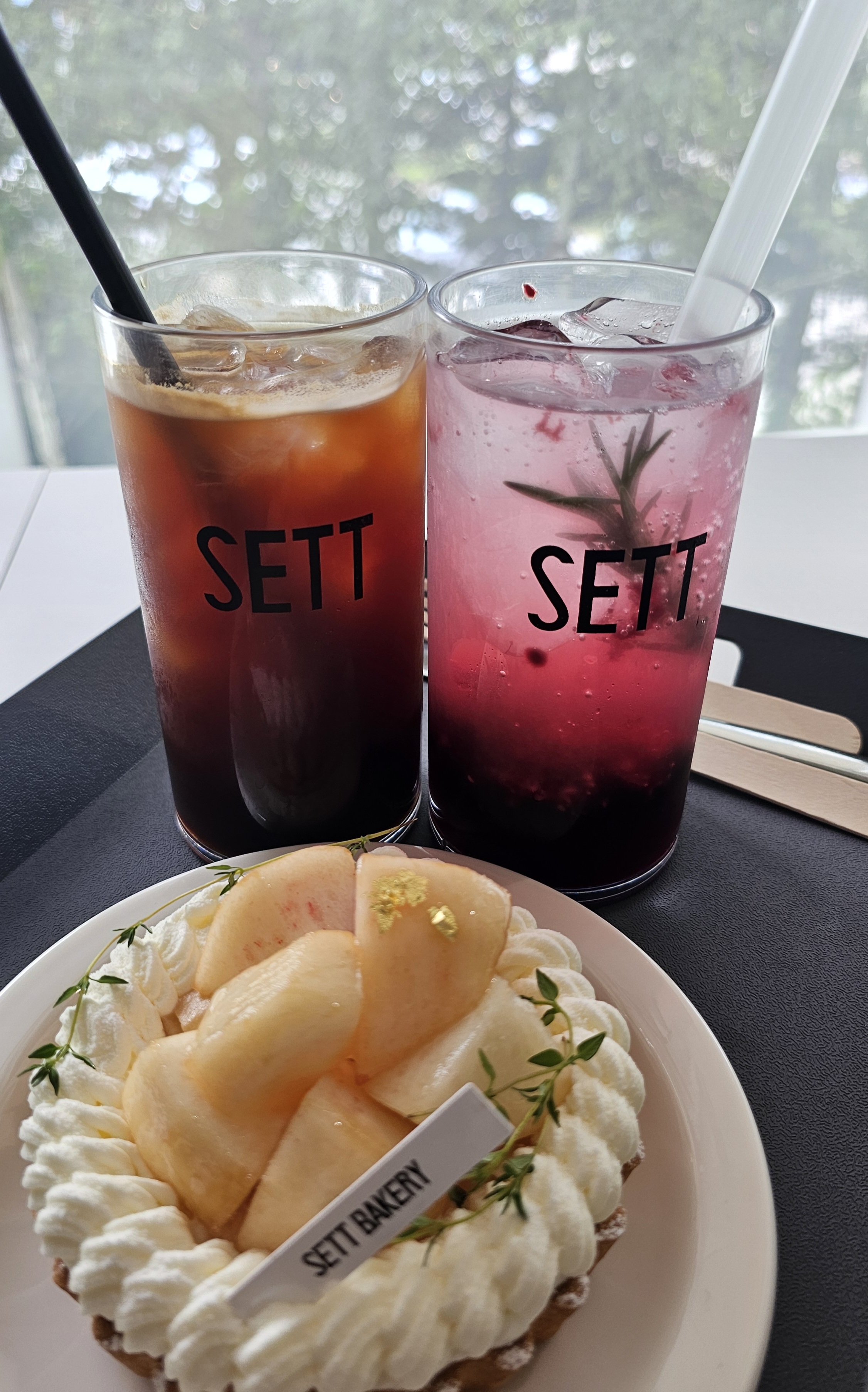 디저트는 ‘SETT BAKERY’라는 이름으로 따로 브랜딩되어 있는데, 그만큼 퀄리티와 비주얼 모두 만족스러워요. 가격대는 아이스 아메리카노 기준 7,000원으로 다소 높은 편!