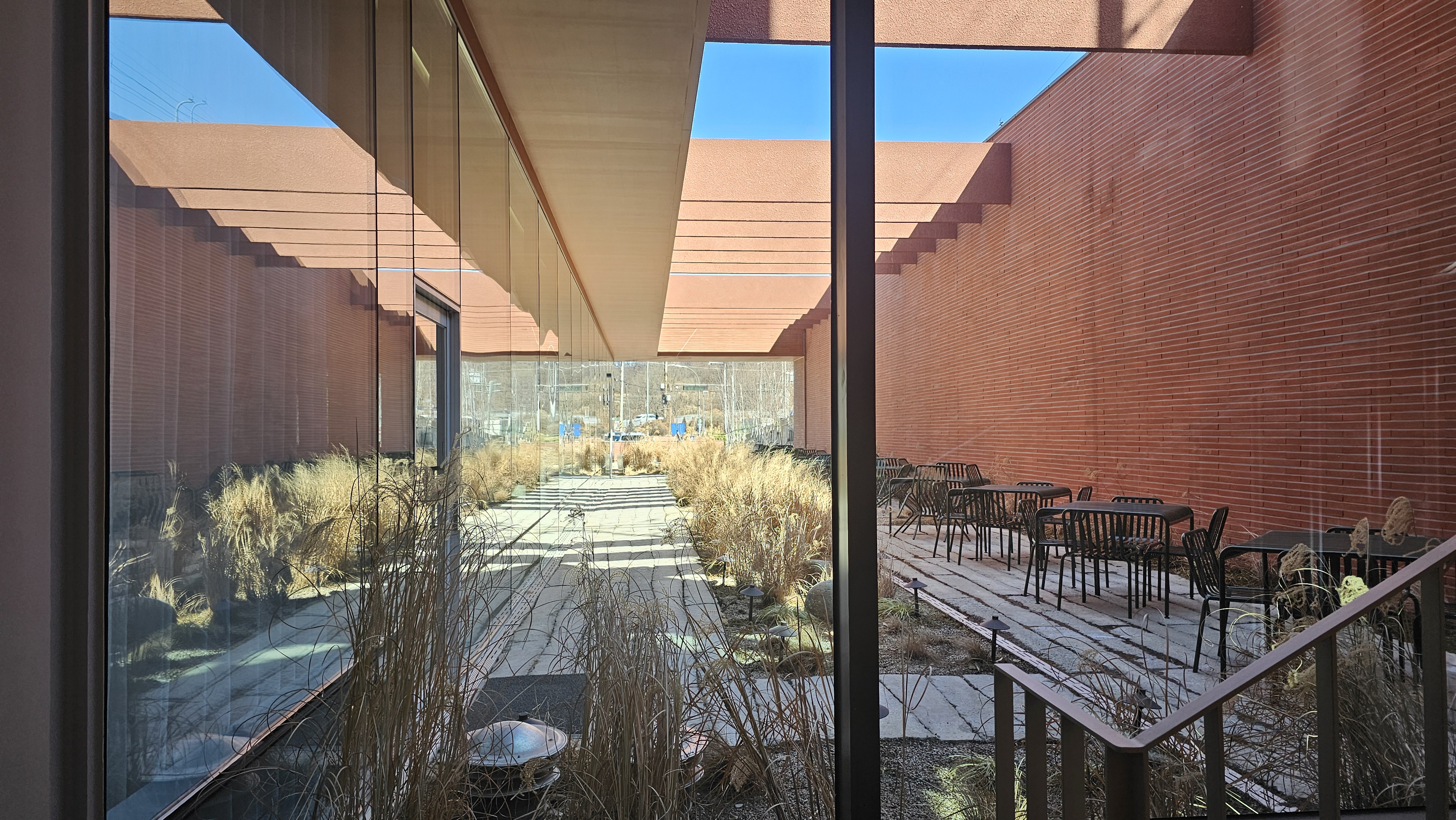 - 넓은 통창과 높은 층고, 여유 있는 테이블 간격으로 쾌적한 대형 카페 분위기
