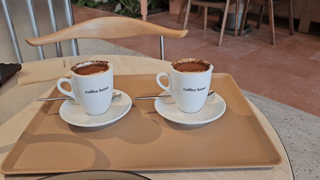 예전 어라운지 시절에도 커피가 맛있었는데, 오늘은 커피 루소의 시그니처 메뉴 에스프레소 라운드 피에노를 주문했어요. 이름부터 뭔가 특별해 보여서 기대가 컸는데, 첫 모금에서 느껴지는 맛이 정말 인상적이었어요.
