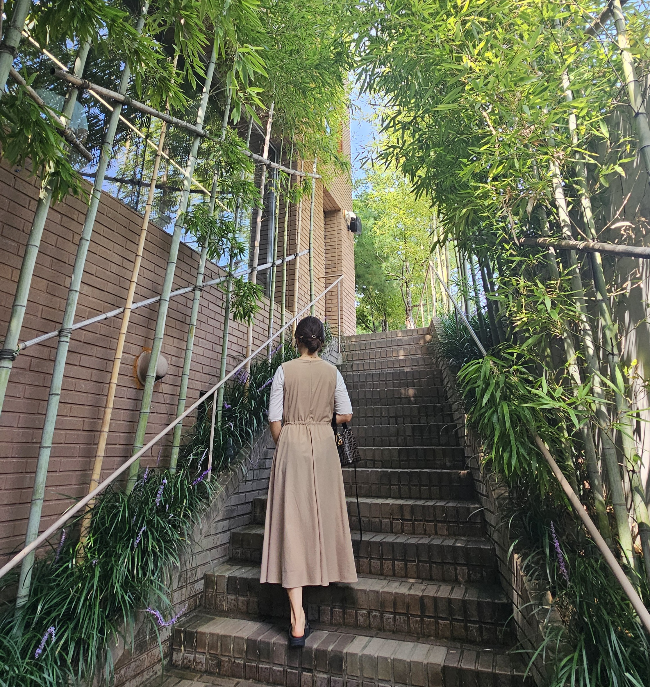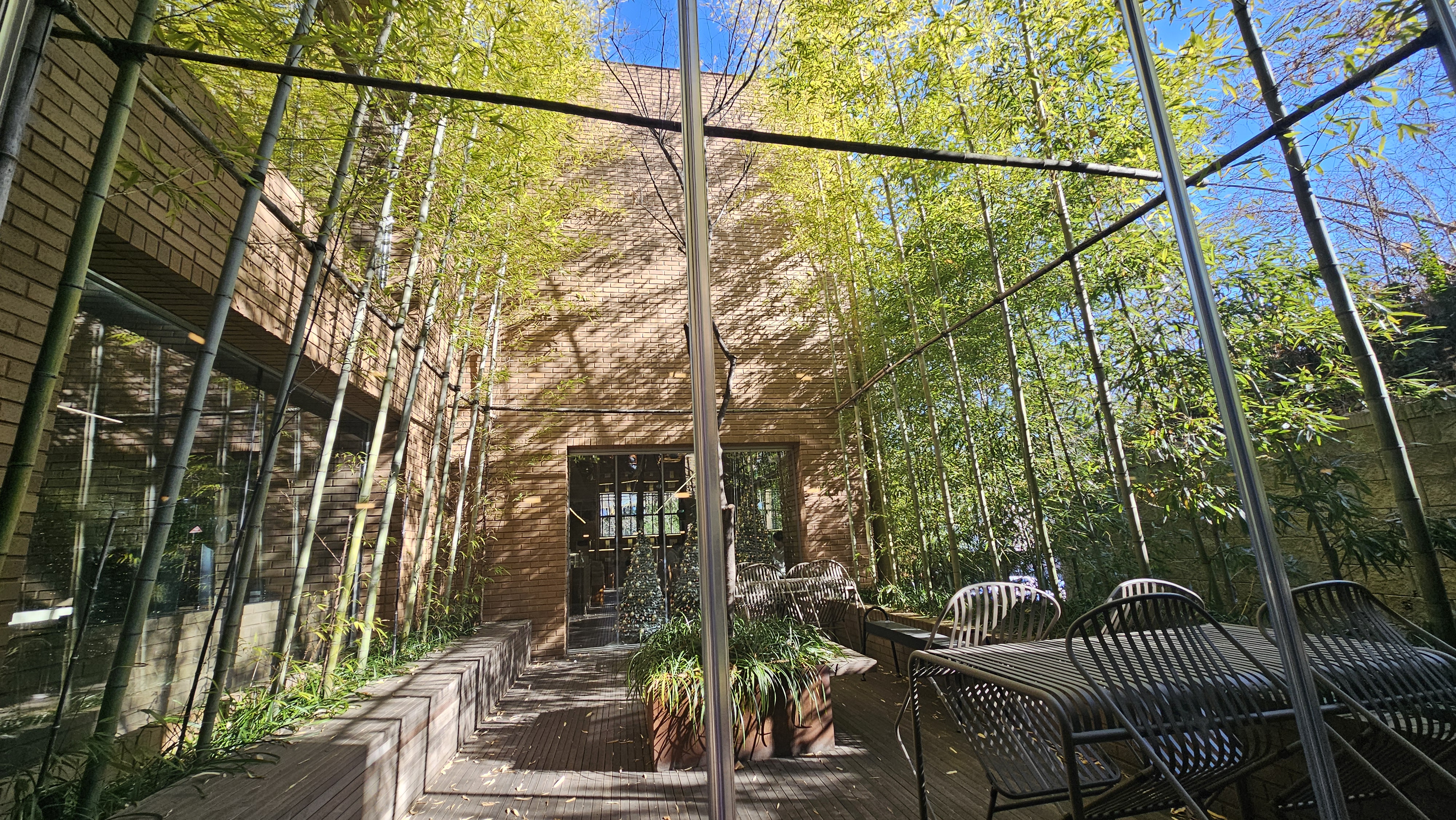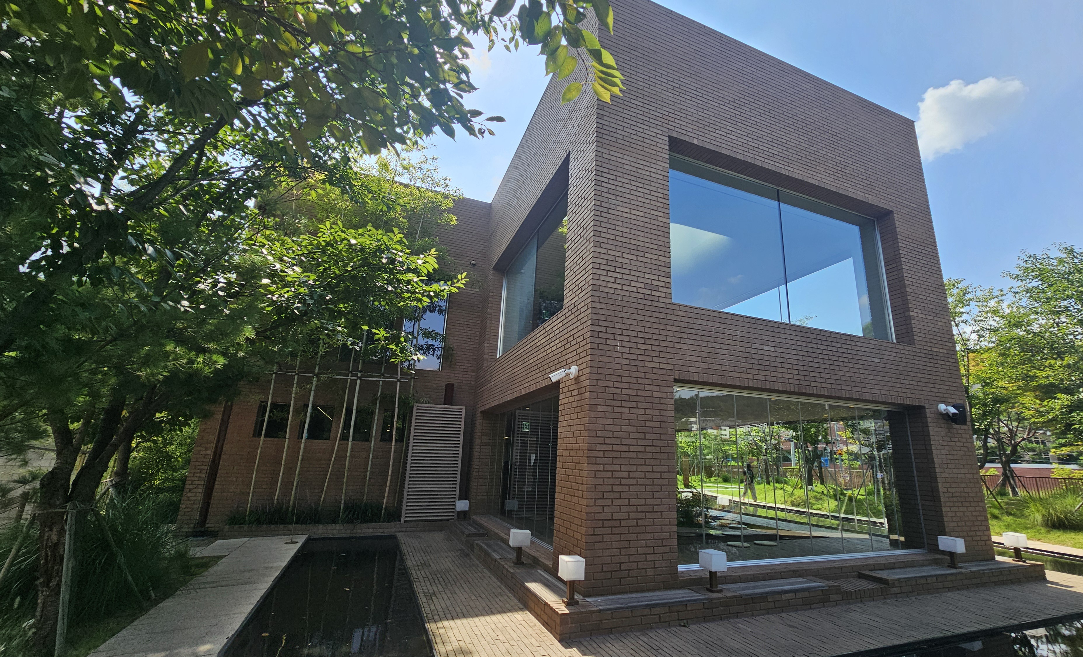 경기도 용인시 수지구 성복1로 279-14에 위치해 있어요. 성복역과 가까워 대중교통도 괜찮지만, 전용 주차장과 주차요원이 상주해 있어 차량 방문이 훨씬 편리해요. 건물 외관은 브라운 톤의 벽돌과 시원한 유리창이 인상적이며, 입구 앞 수반에 비친 하늘과 대나무 풍경은 사진 찍기 딱 좋은 포토존이에요 📸