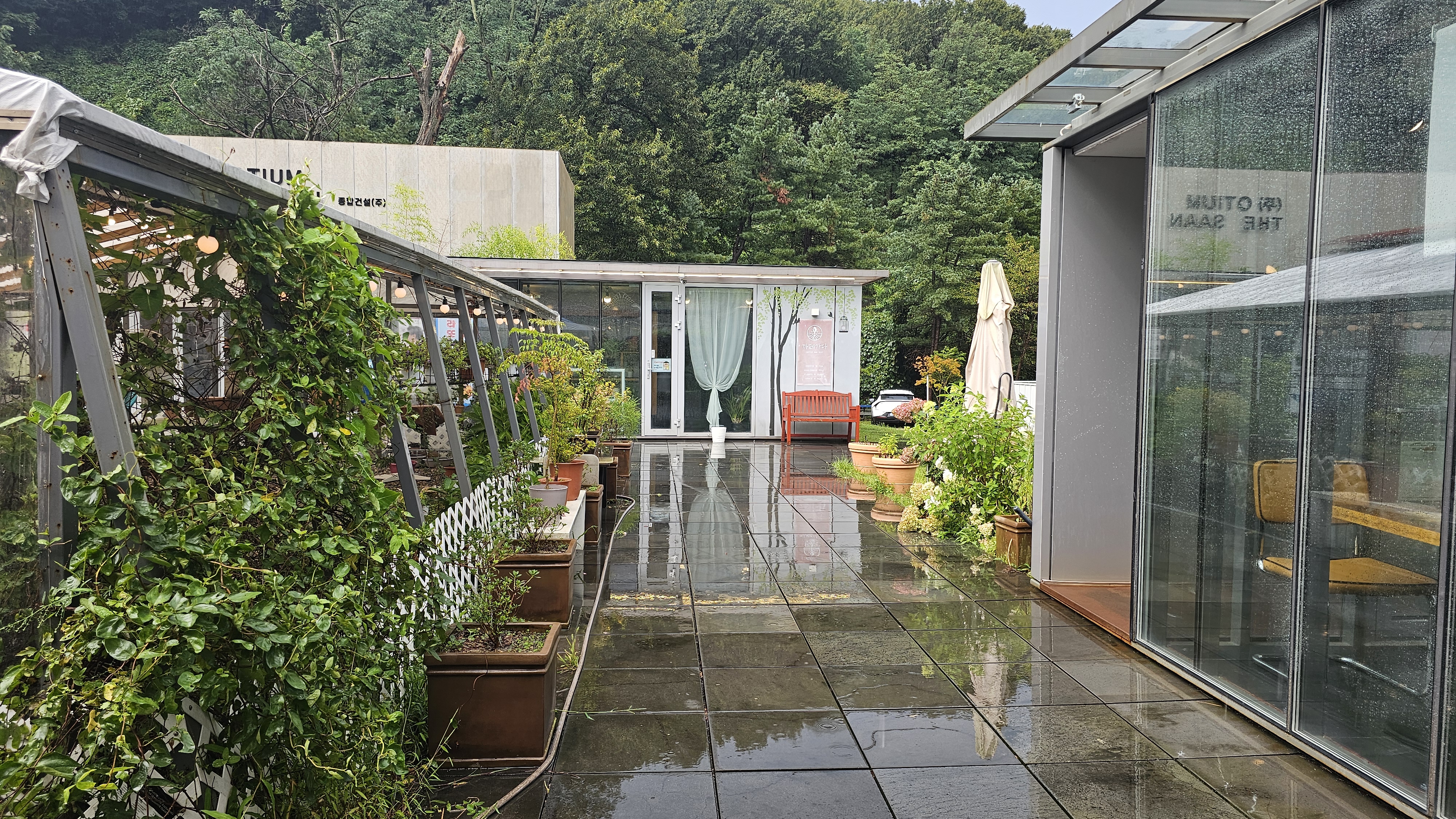 식물과 계곡, 그리고 이 날의 소나기까지 더해진 늦여름의 감성 충만한 공간이었죠.