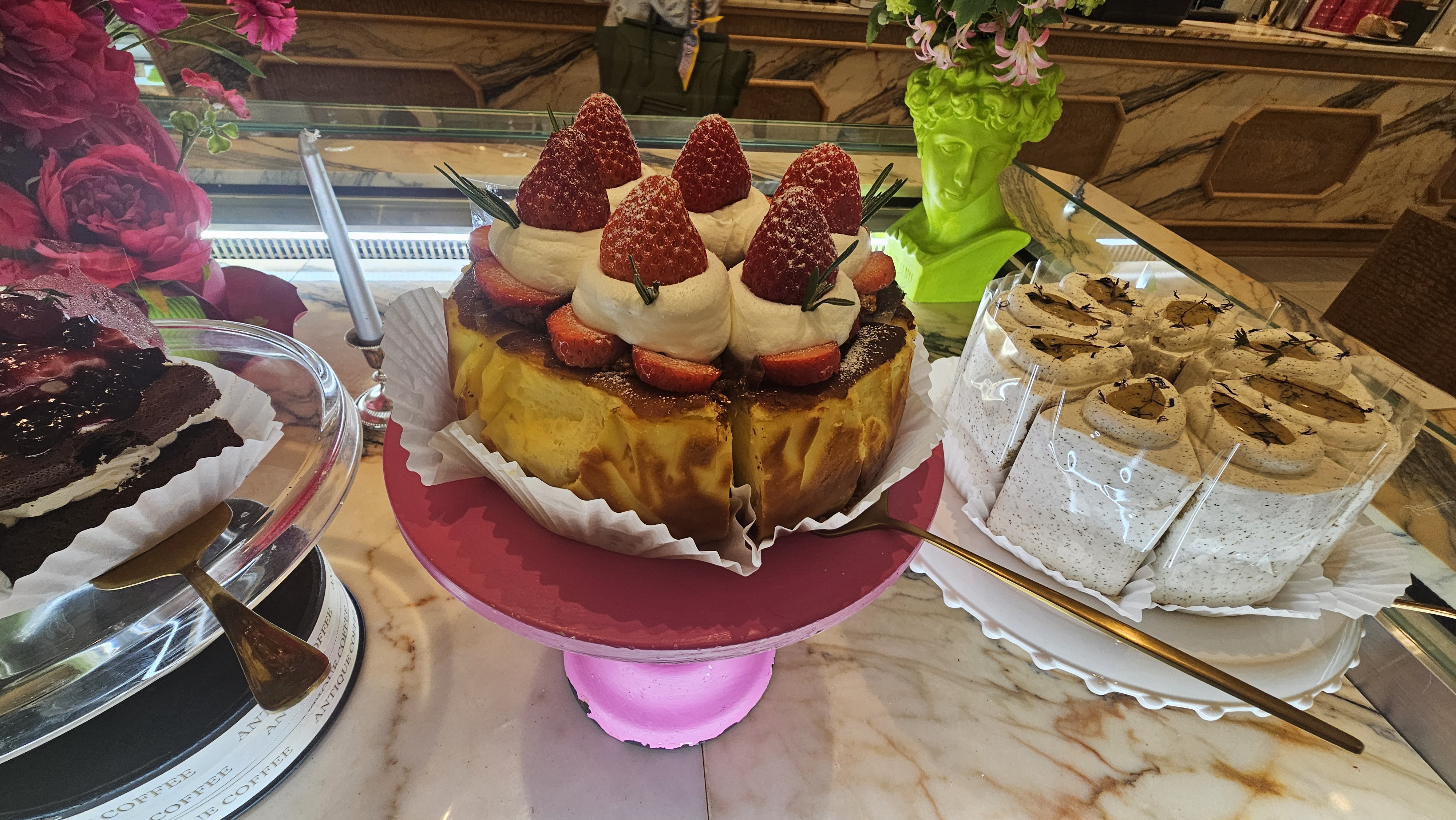 가장 기대했던 메뉴는 바로 블루베리 바스크 치즈케이크였어요. 한눈에 봐도 진한 치즈의 풍미가 느껴지는 비주얼에 감탄이 절로 나왔답니다.