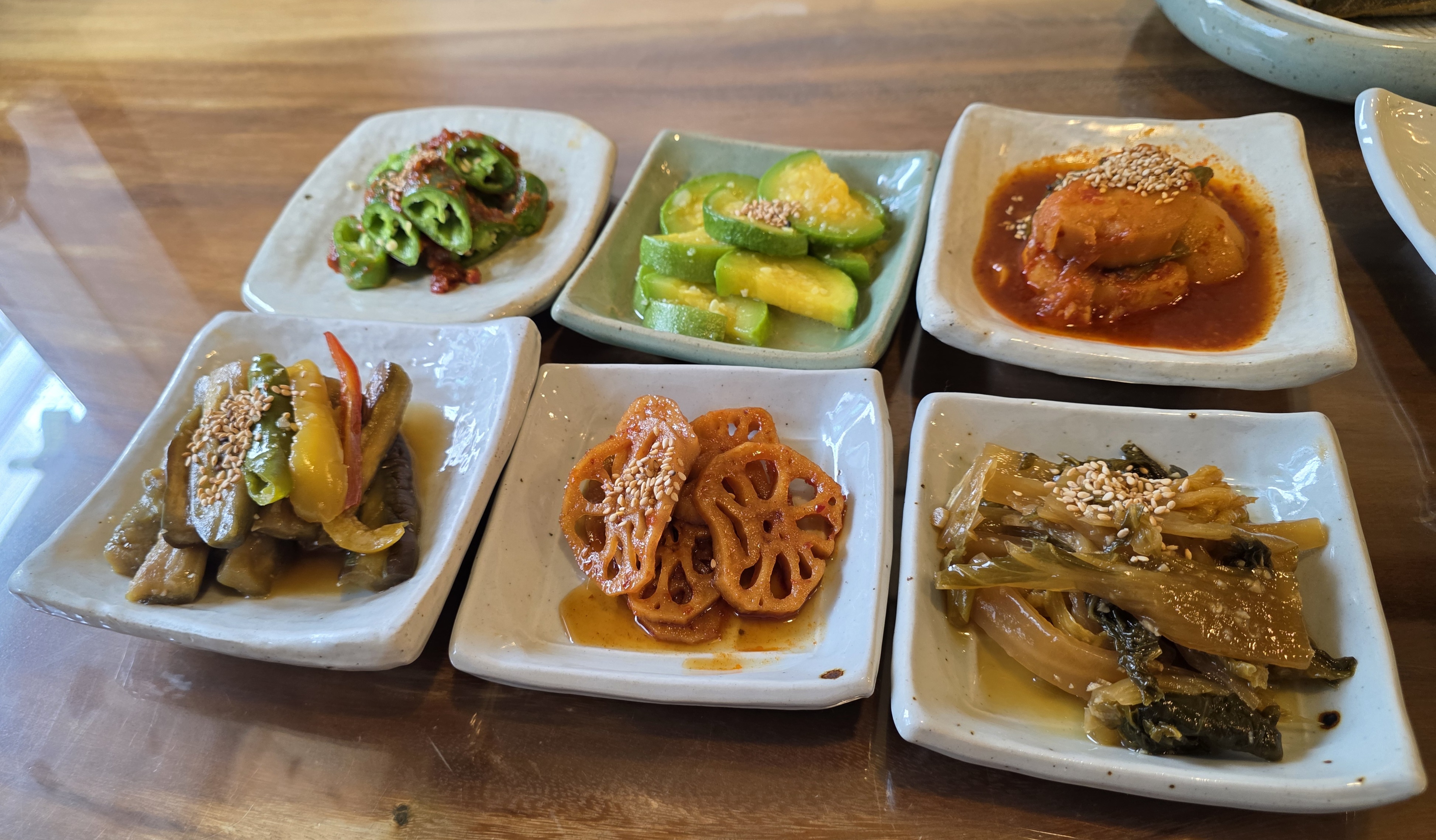예약 시간에 맞춰 자리에 앉자 곧 정갈한 한 상이 차려졌습니다. 기본 반찬만 해도 13가지! 연근조림, 단호박조림,무쌈말이등 하나하나 손이 많이 간 반찬들이었고, 특히 간도 짜지 않고 슴슴하면서도 감칠맛이 돌아 계속 손이 가네요.