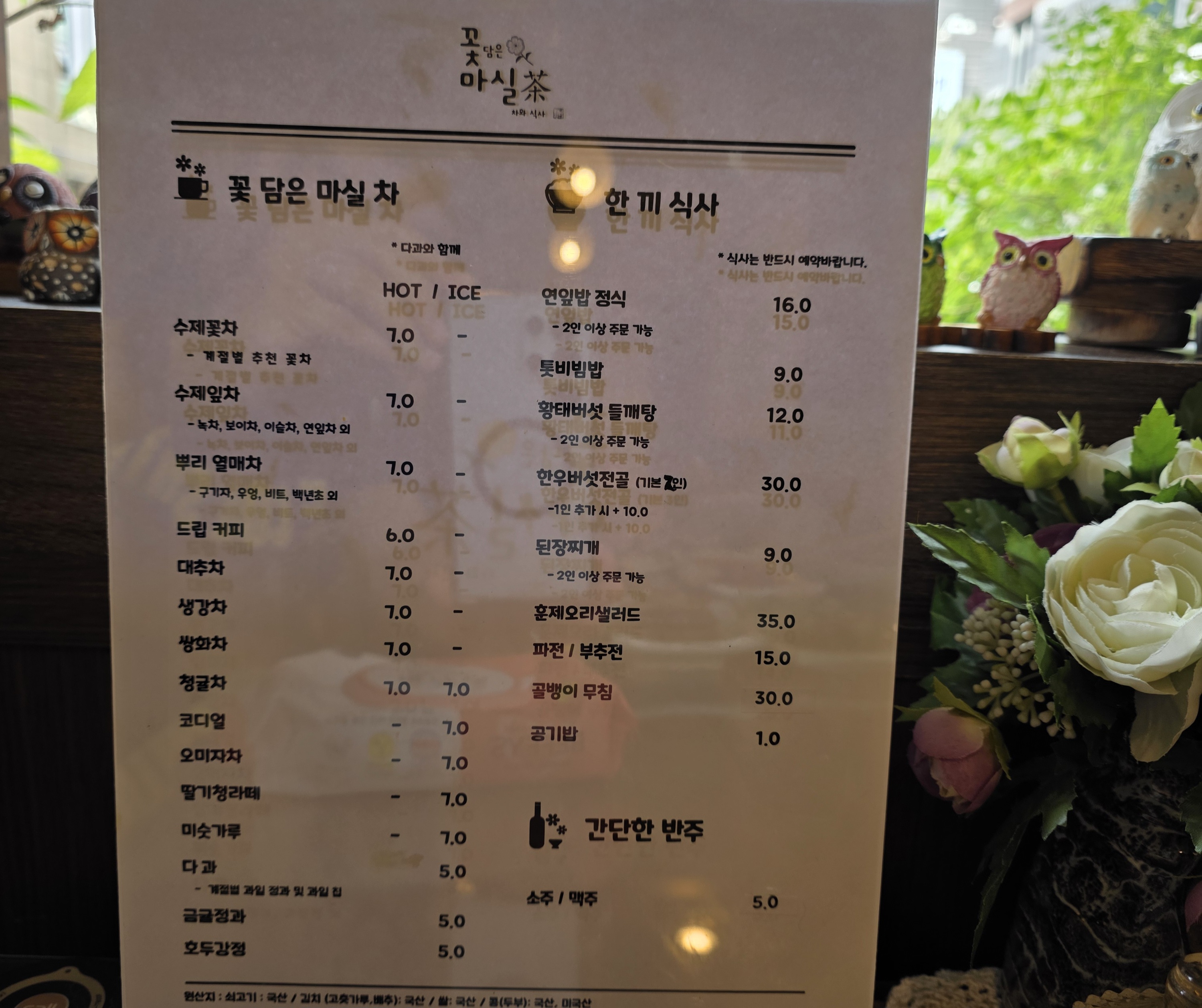 식사 후엔 수제 꽃차로 티타임 가지고 싶어지만 너무 배가 불러서 포기 ㅜㅜ