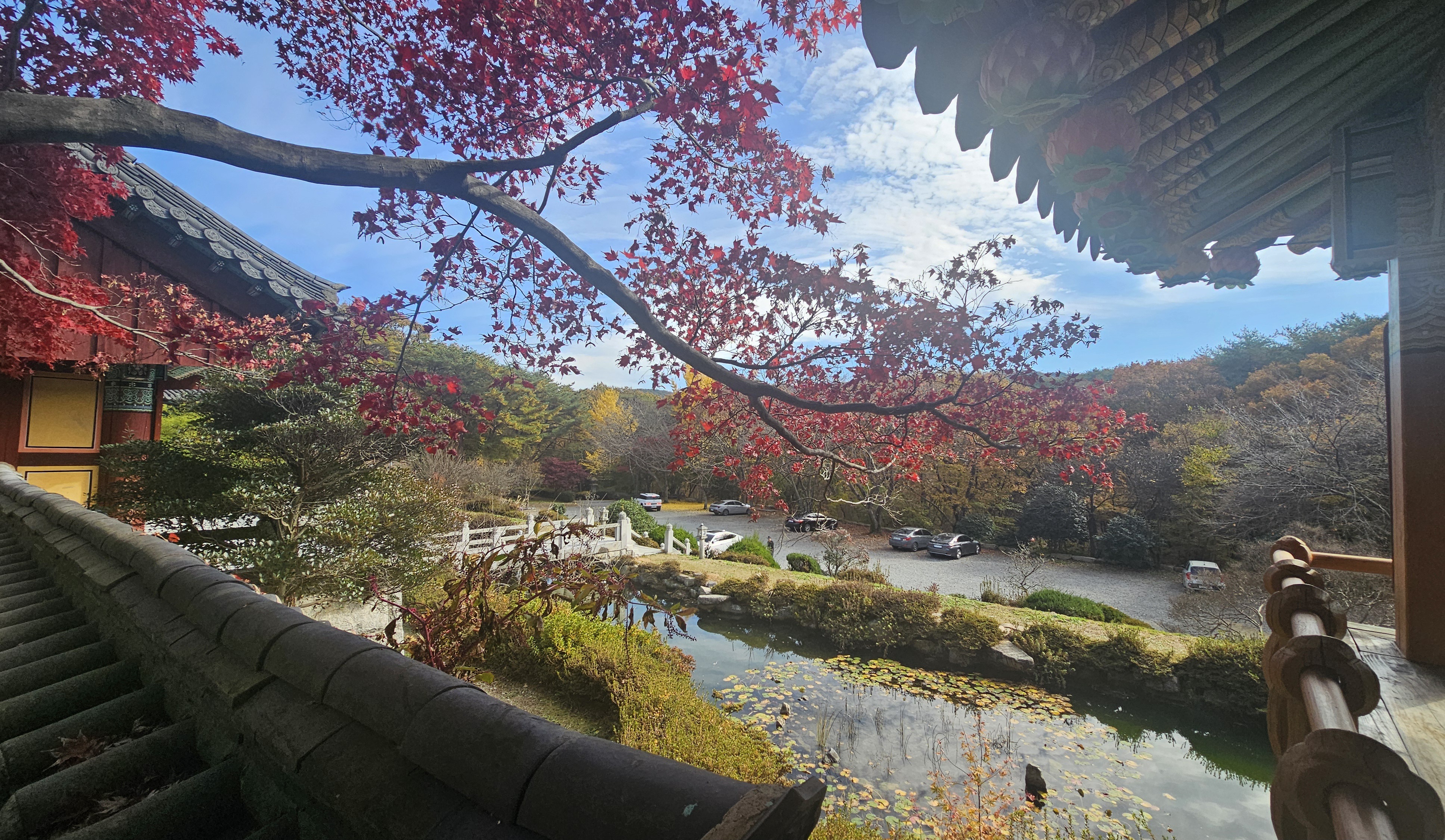 🍂 첫인상 – 단풍에 둘러싸인 고요한 암자