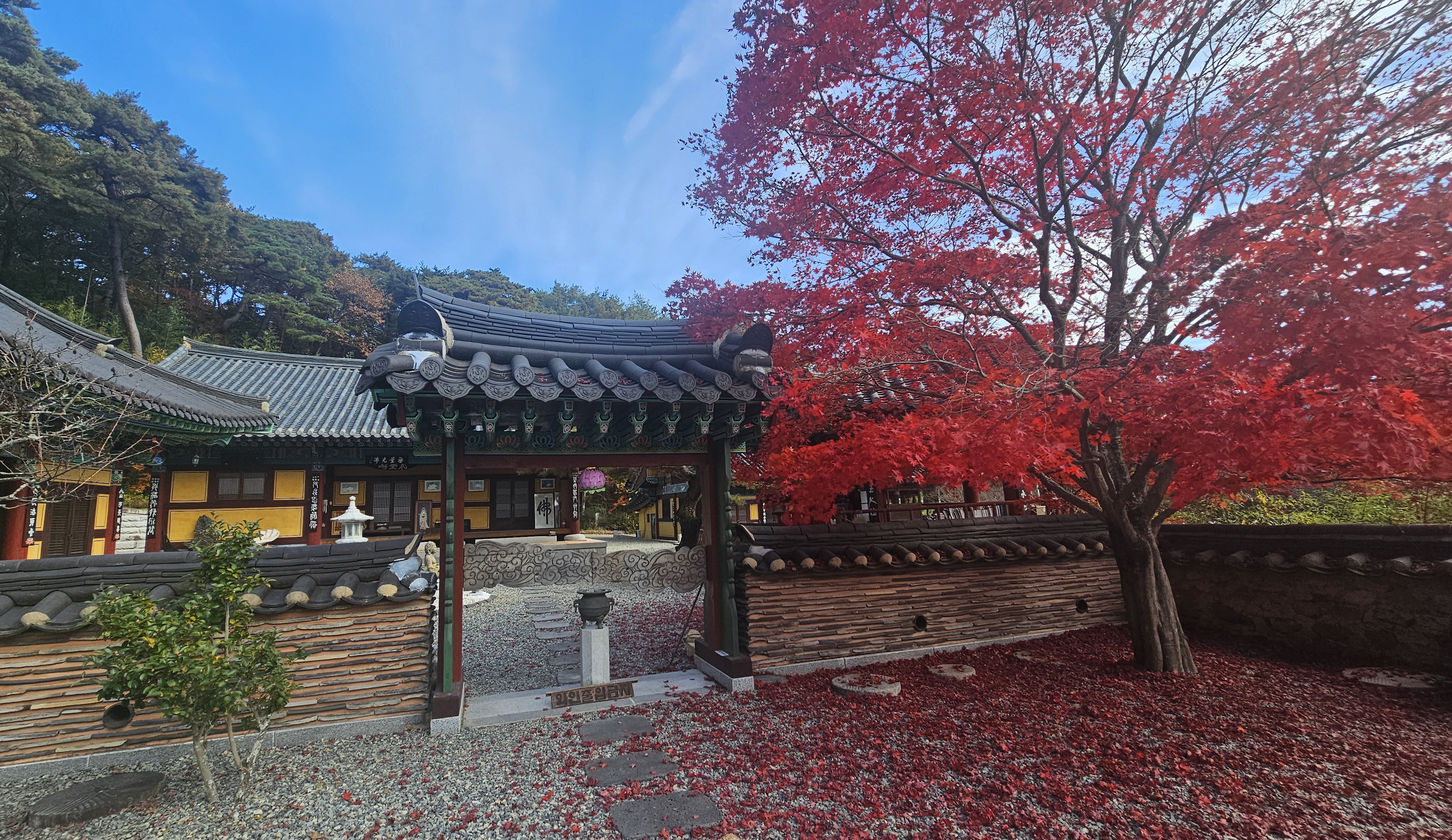 입구부터 붉고 노란 단풍이 흐드러지게 피어 있었어요. 사찰보다는 훨씬 작은 규모지만, 그만큼 더 조용하고 깊은 분위기가 느껴졌어요.