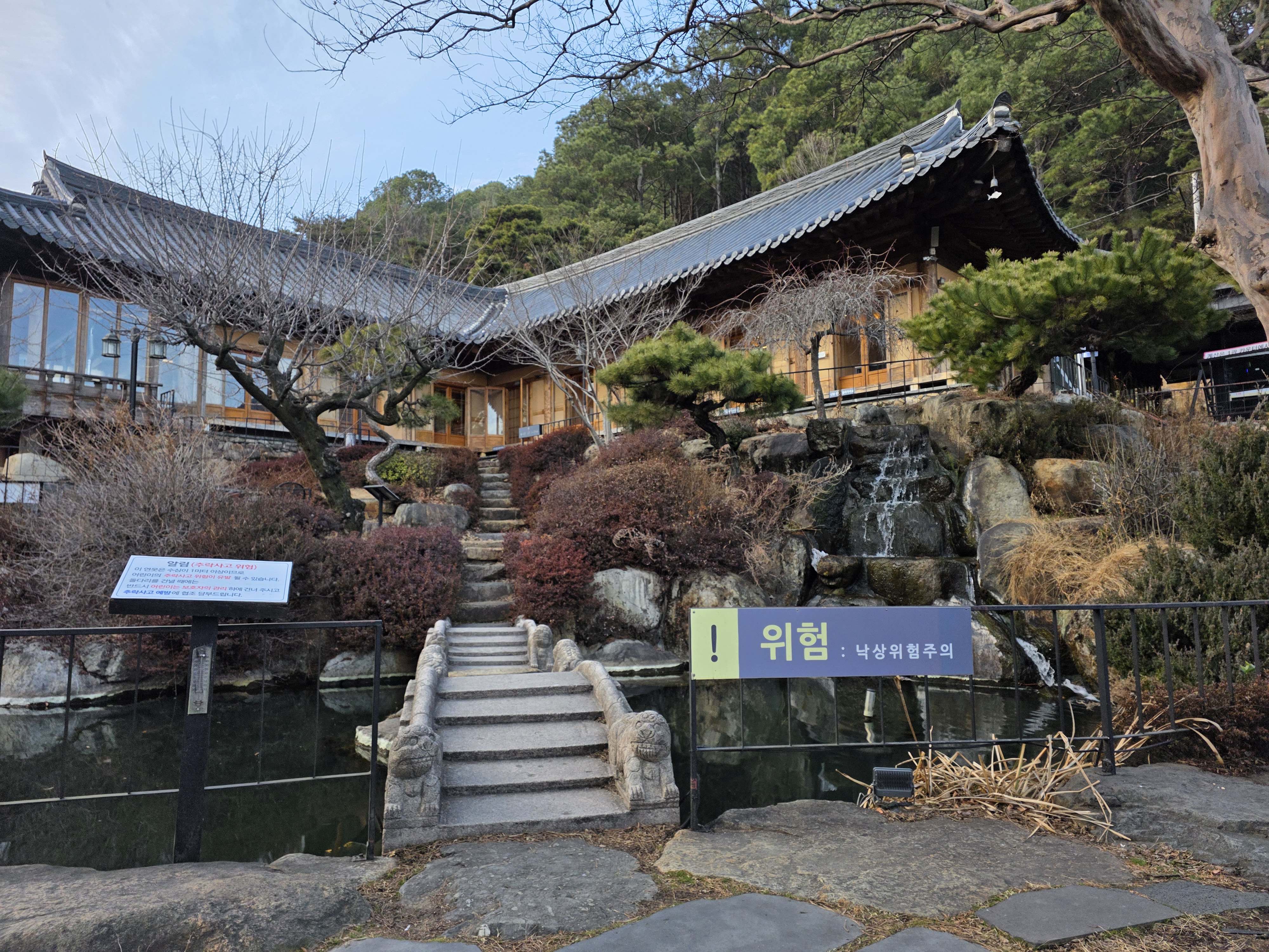 돌길과 나무, 작은 연못과 폭포까지 어우러져 있어 부모님이나 아이들과 함께 산책하기에도 좋았어요. 내부는 룸과 홀로 나뉘어 있어 가족 모임이나 단체 외식에도 적합했어요. 🏠