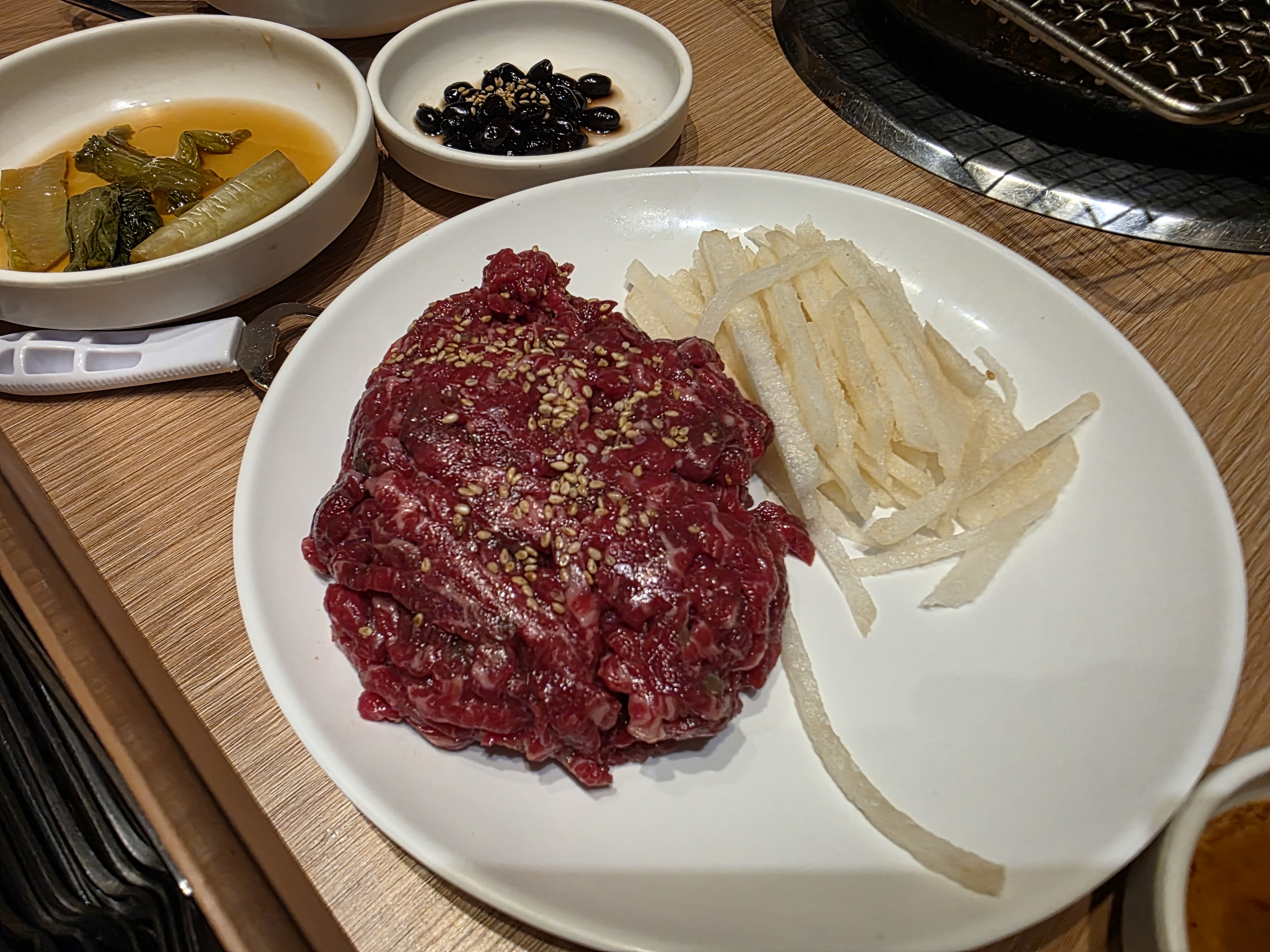 등심은 고소하면서도 부드러웠고, 갈빗살은 풍미가 진해 씹을수록 고소함이 배어 나왔어요. 육회는 신선한 한우 특유의 달큰한 맛이 살아 있어 아이들도 맛있게 먹었어요.