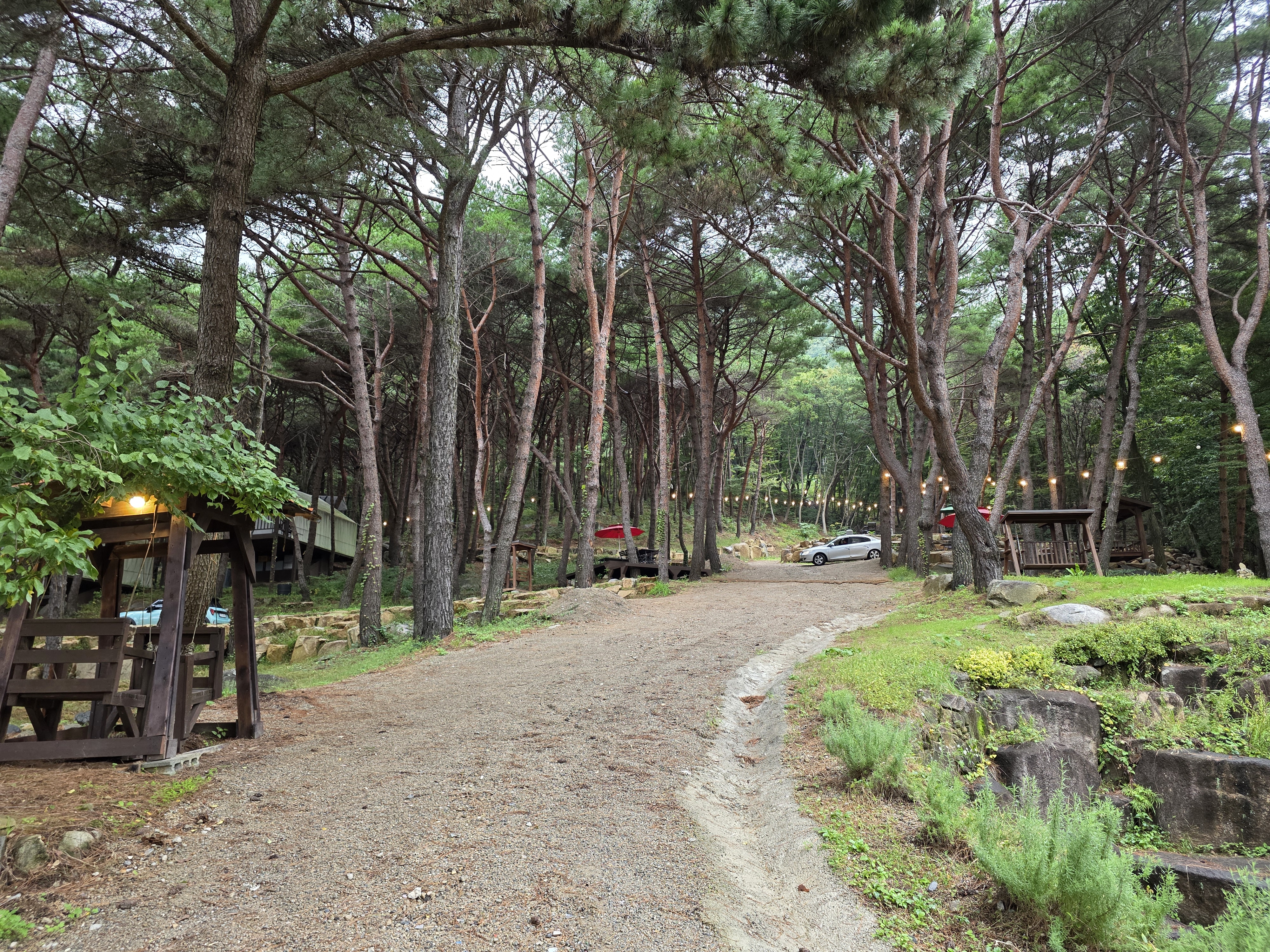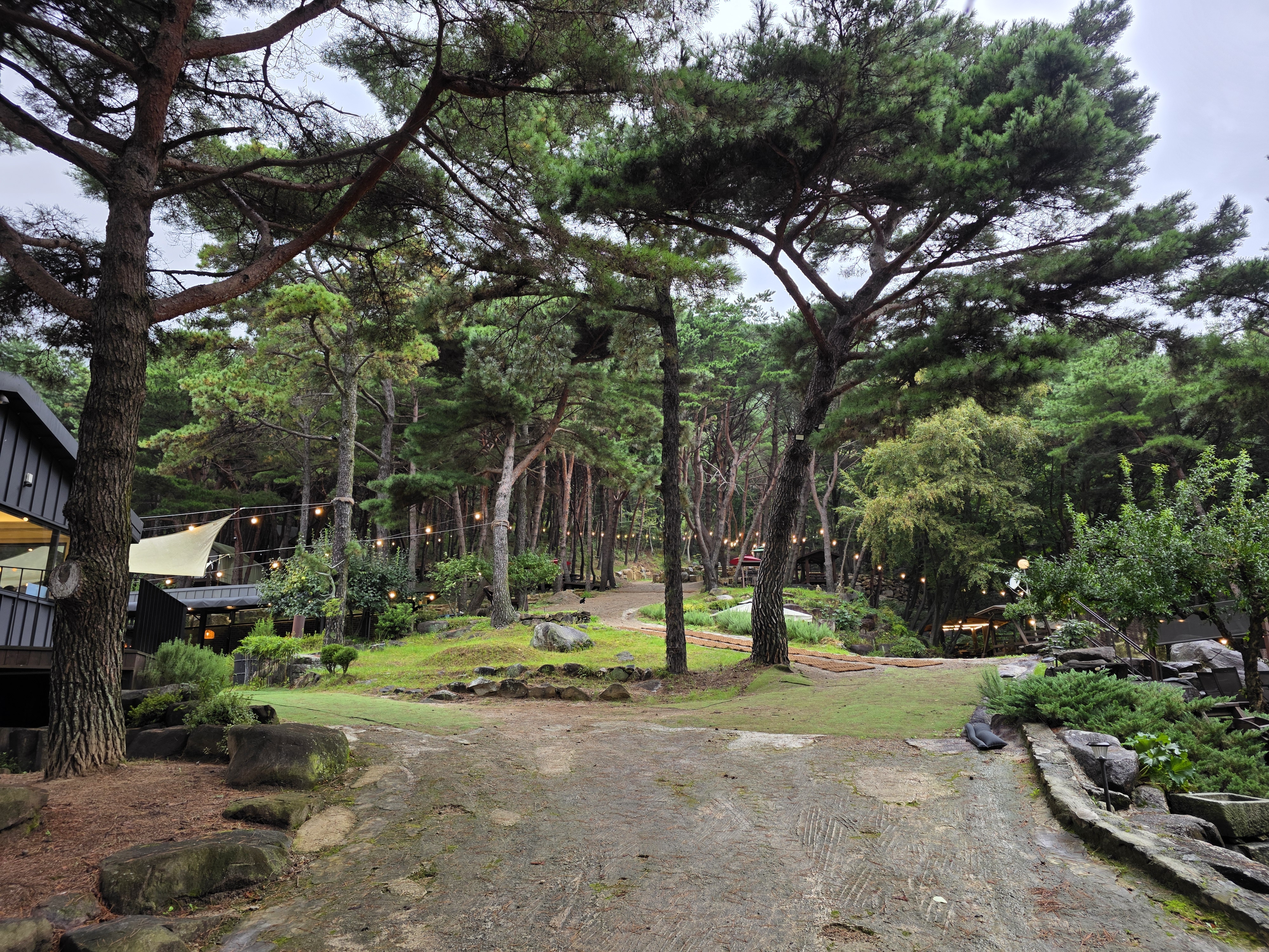 주변은 온통 숲이라 마치 산속 별장에 온 듯한 느낌! 주차 공간도 넉넉해서 접근성도 좋아요.