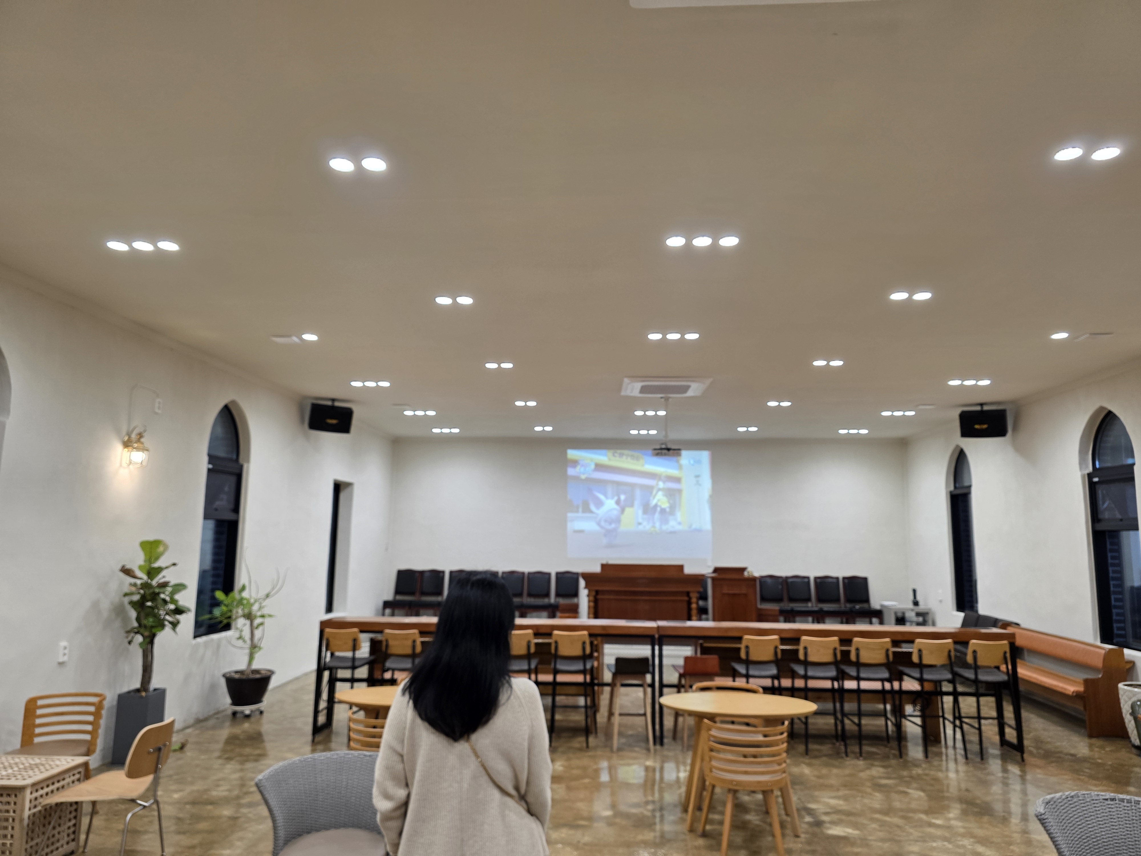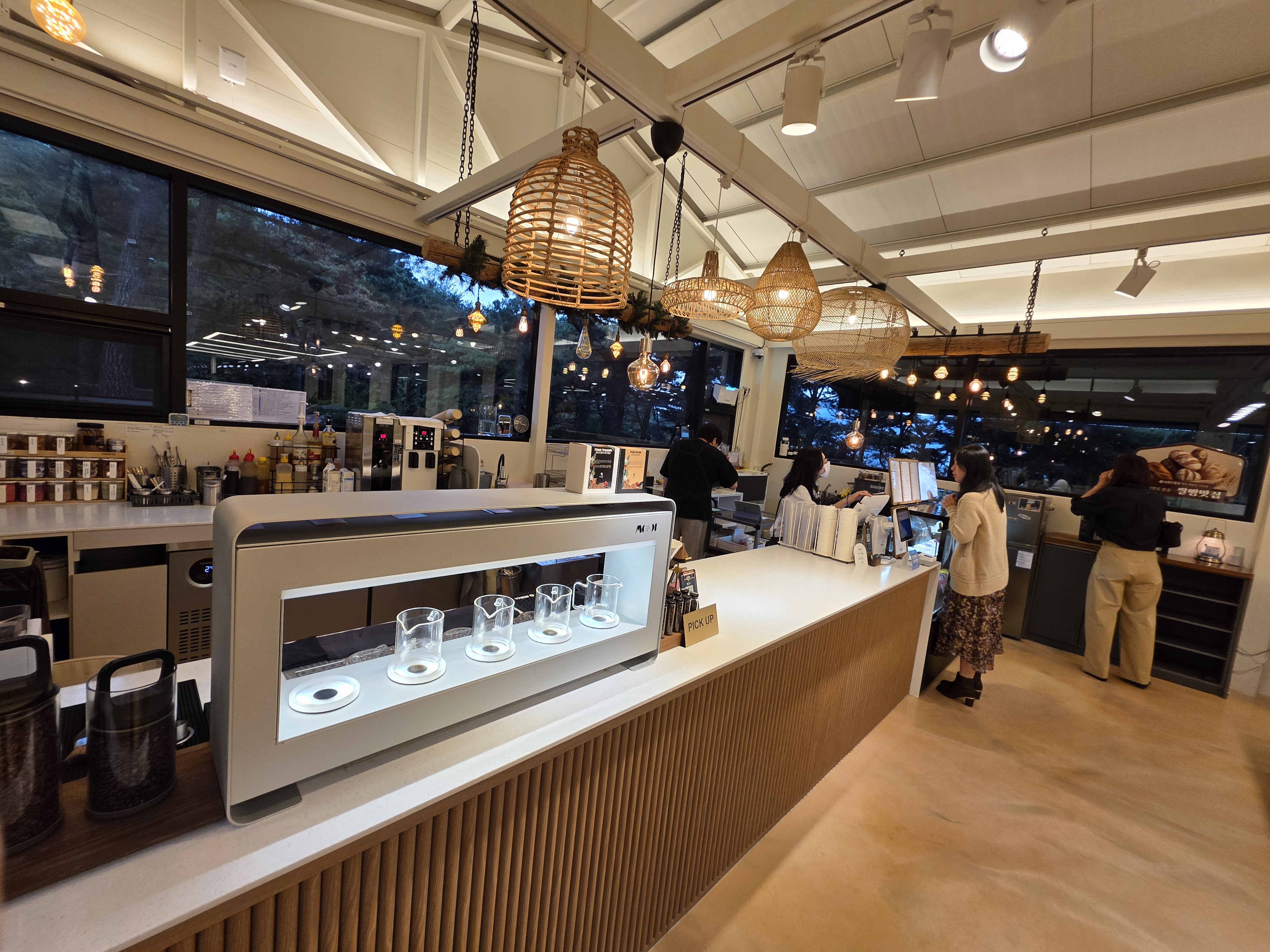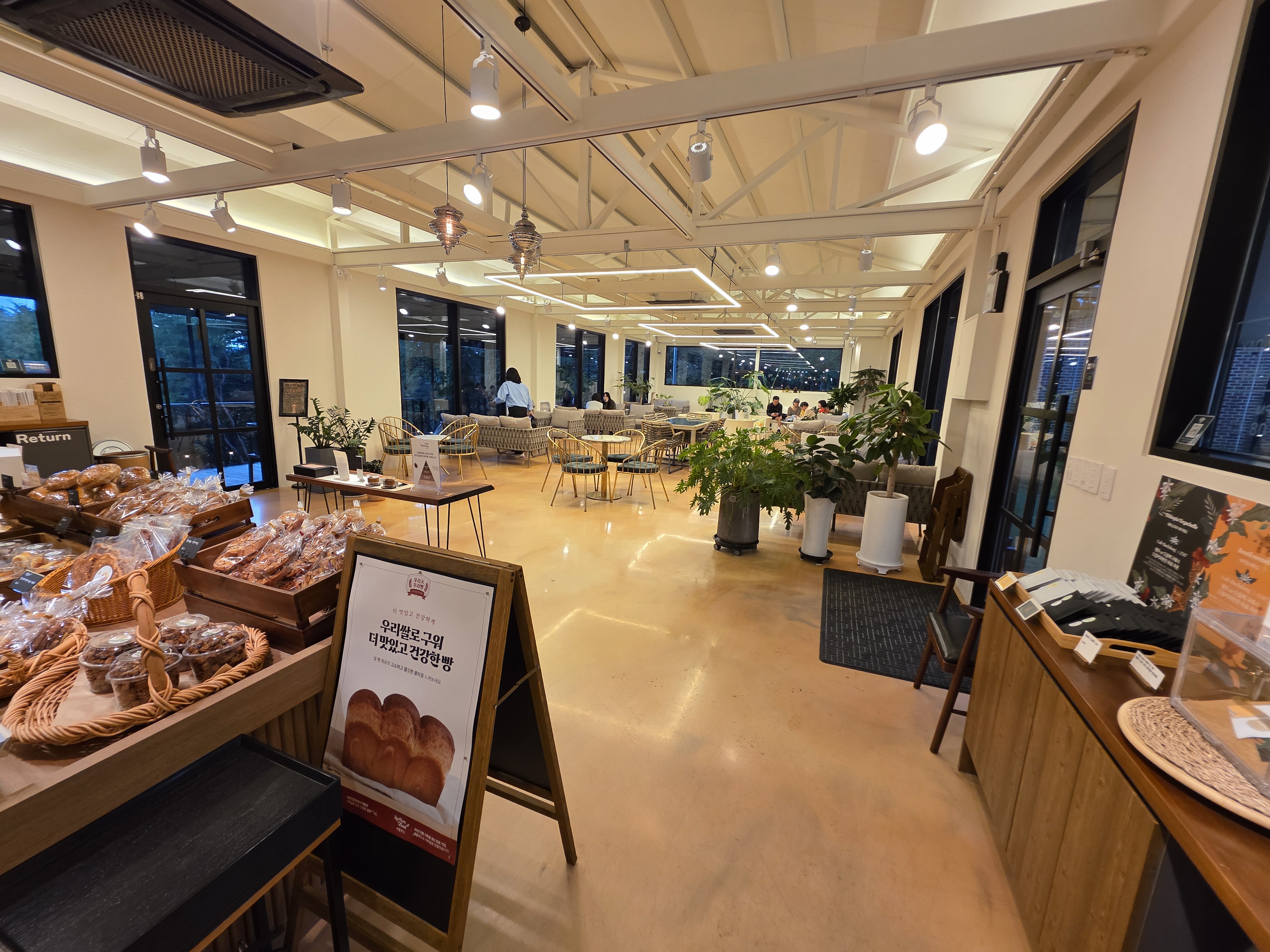 카페 내부는 내추럴인테리어와 큰 창문이 인상적이에요.