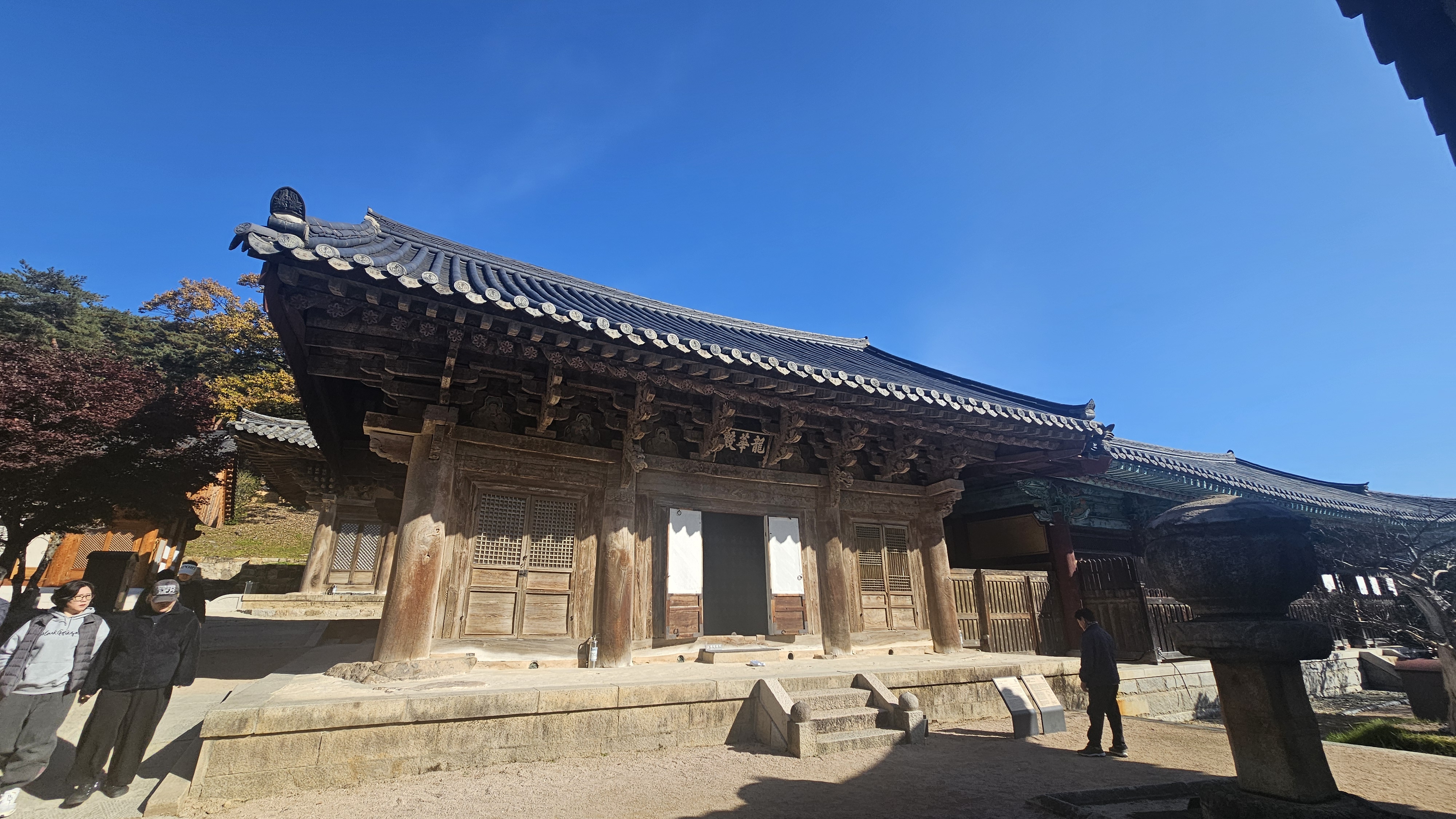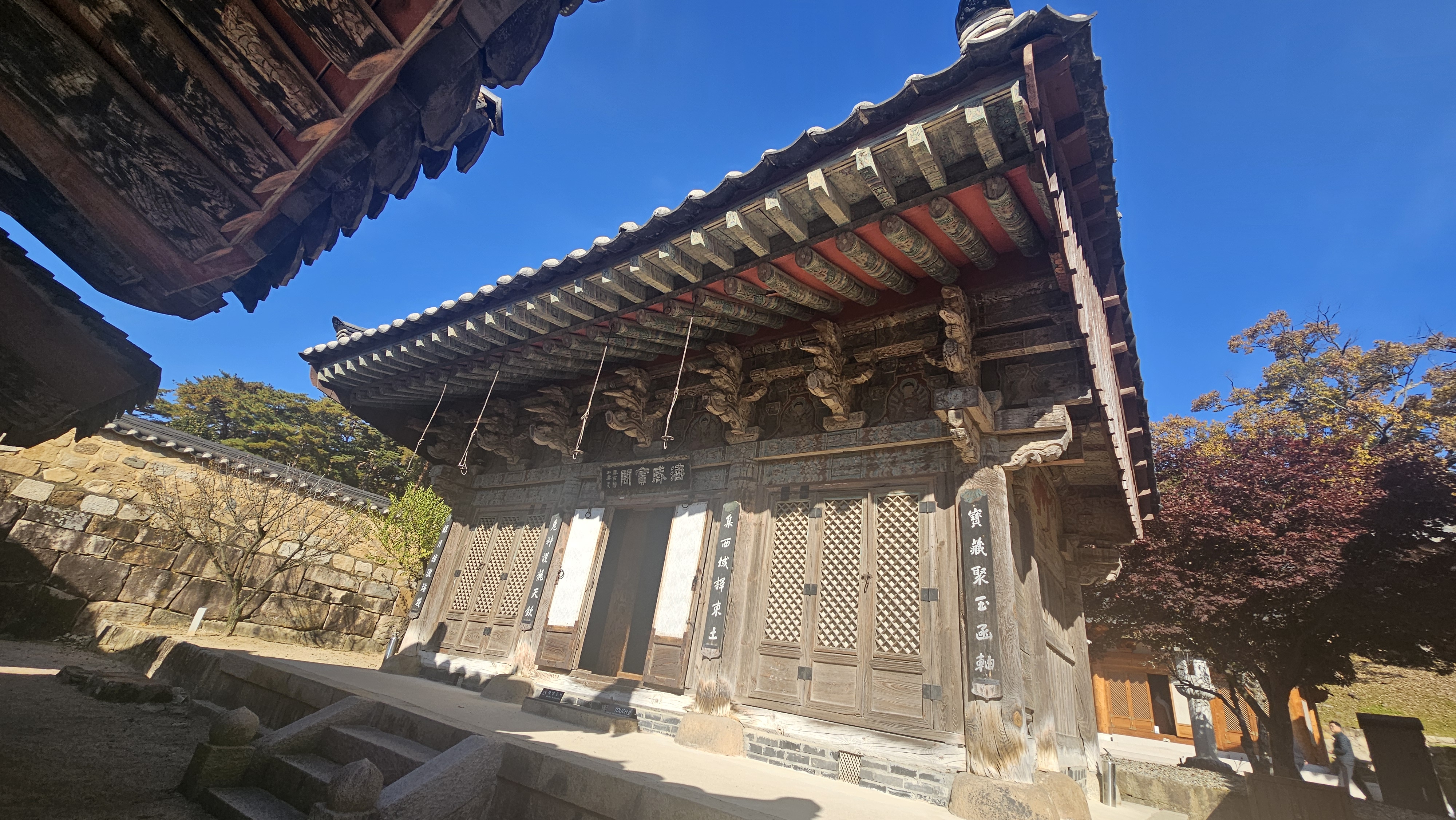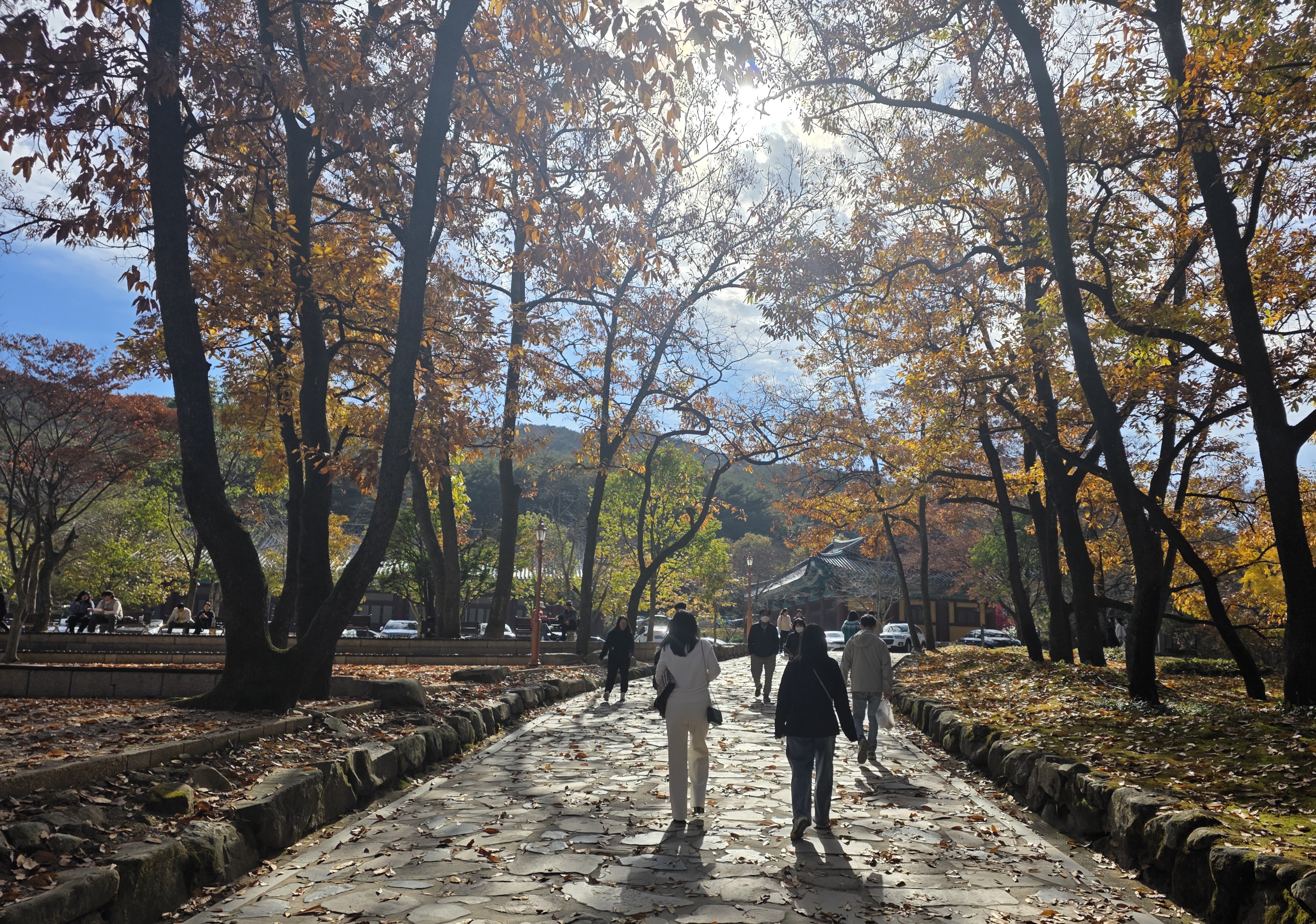 단풍이 절정을 지나 은은하게 물든 경내는 오히려 더 고요하고 깊은 분위기를 자아냈어요. 입구부터 이어지는 일주문–천왕문–불이문을 지나며 걷는 길, 바스락거리는 낙엽 소리와 함께 마음도 차분해졌죠.
