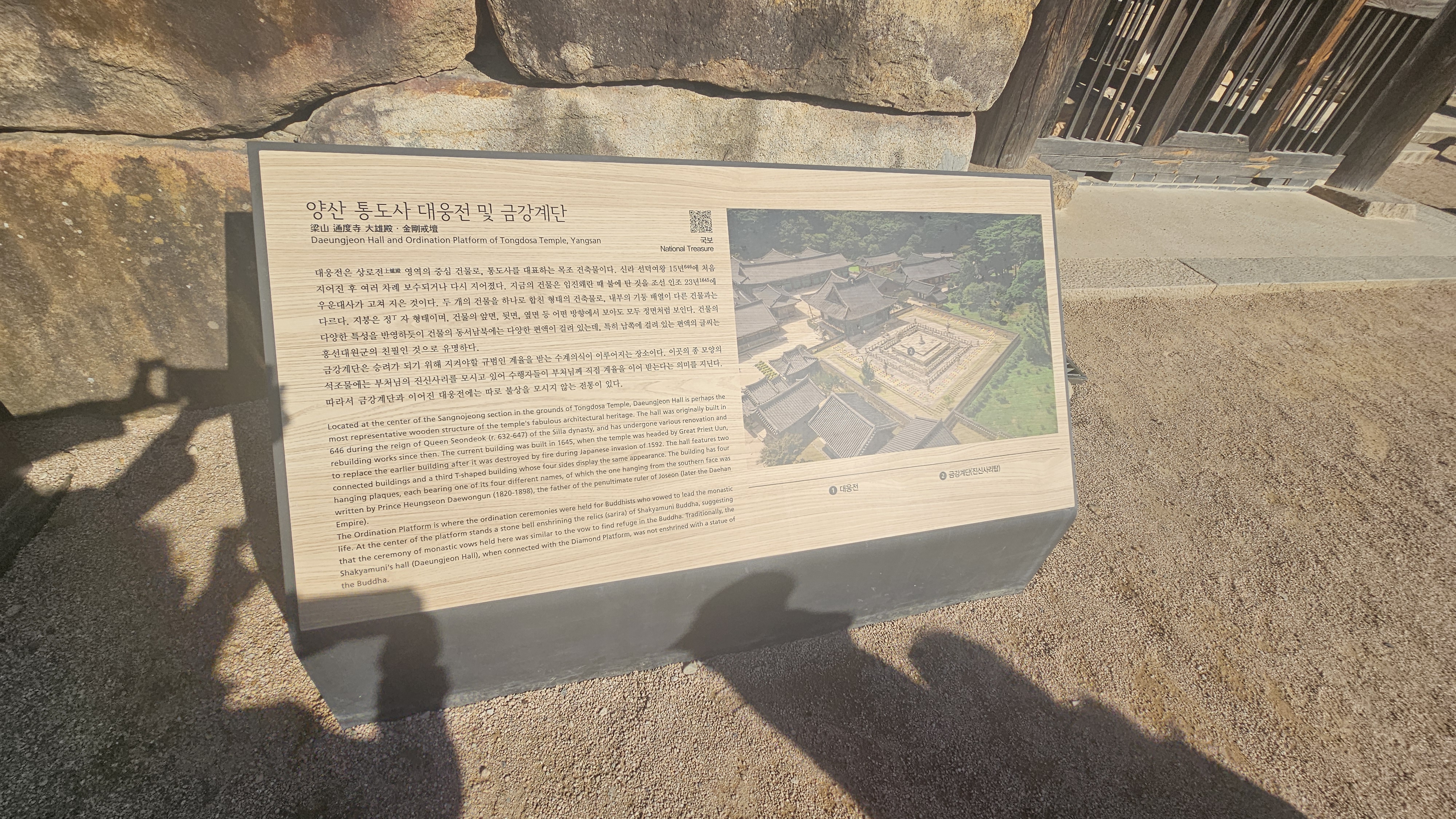 대웅전 앞마당에 도착하니, 부처님이 계시지 않은 법당이 오히려 더 묵직하게 다가왔어요. 그 뒤편에 자리한 금강계단에는 부처님의 진신사리가 모셔져 있어요. 그래서 통도사는 ‘불상이 없는 대웅전’으로도 유명하죠.