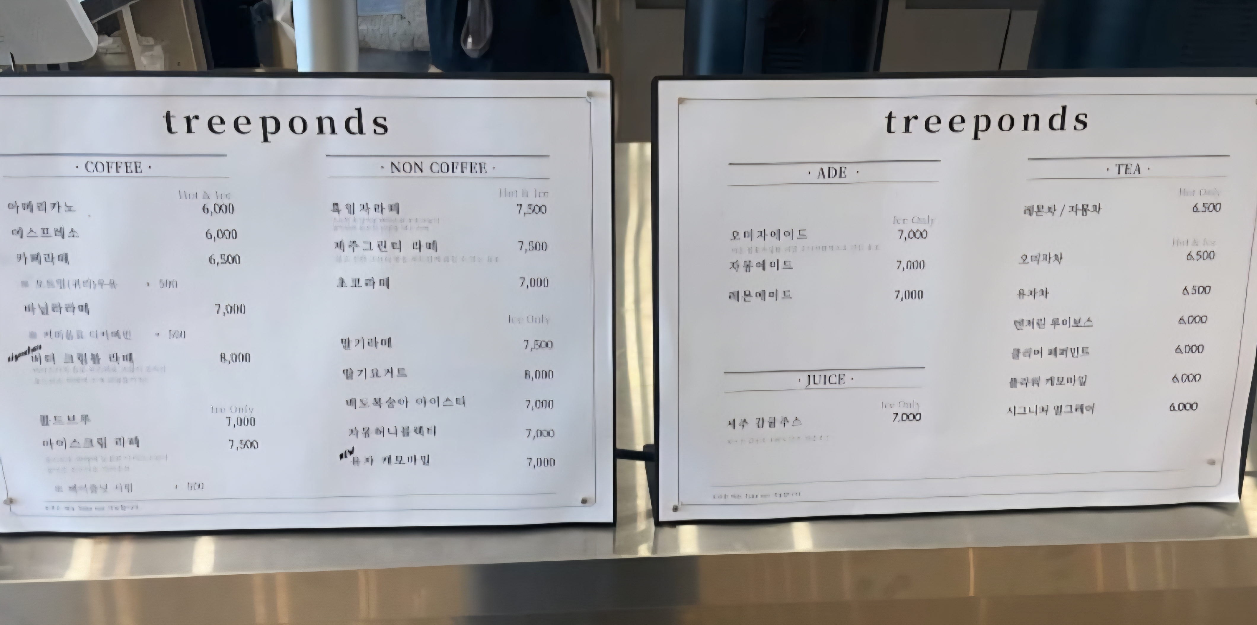 - 에이드/티: 7,000원 ~