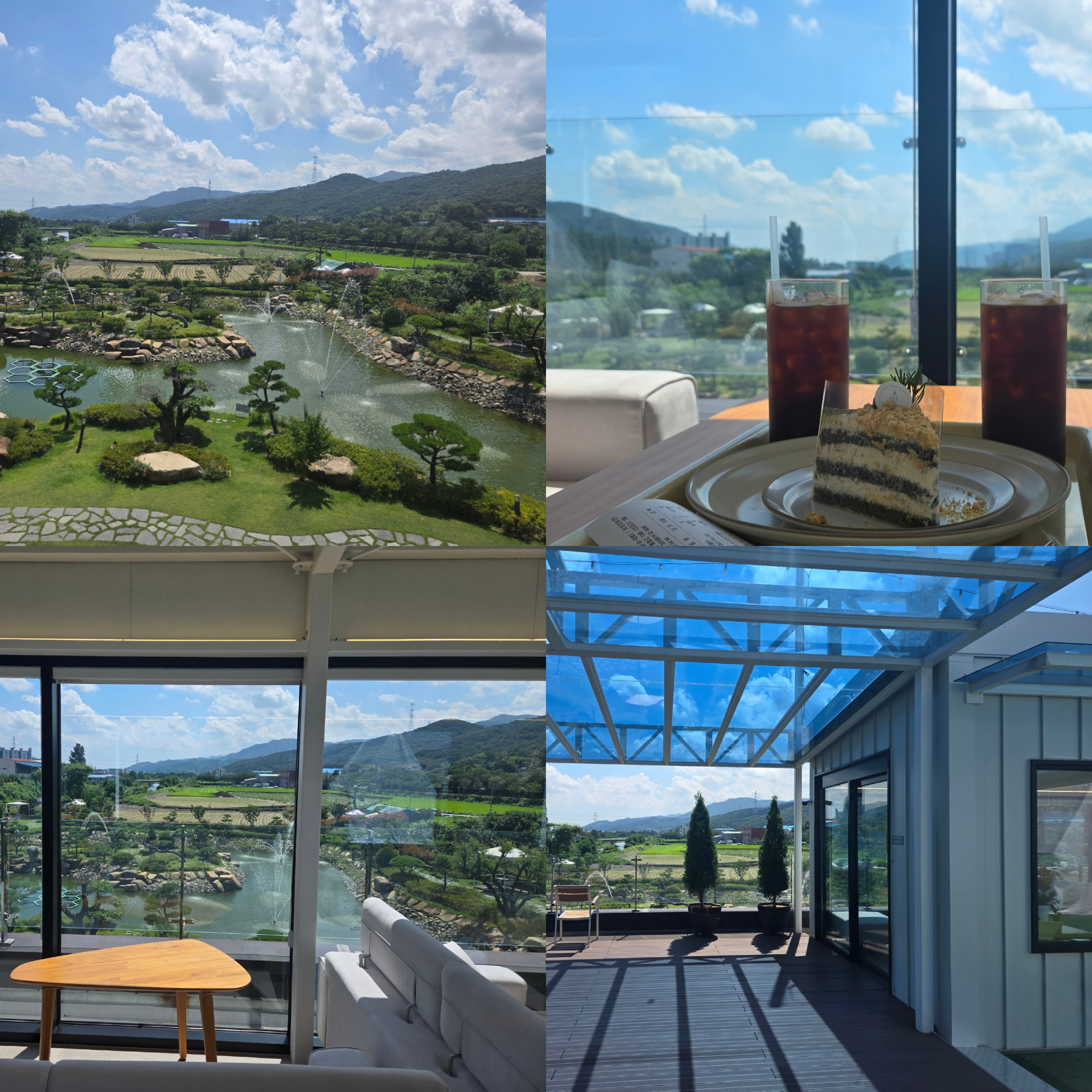 날씨가 무척 더웠던 이날, 우리는 실내 좌석에 앉아 통유리 너머로 연못을 바라보며 시원하게 커피를 즐겼어요.
