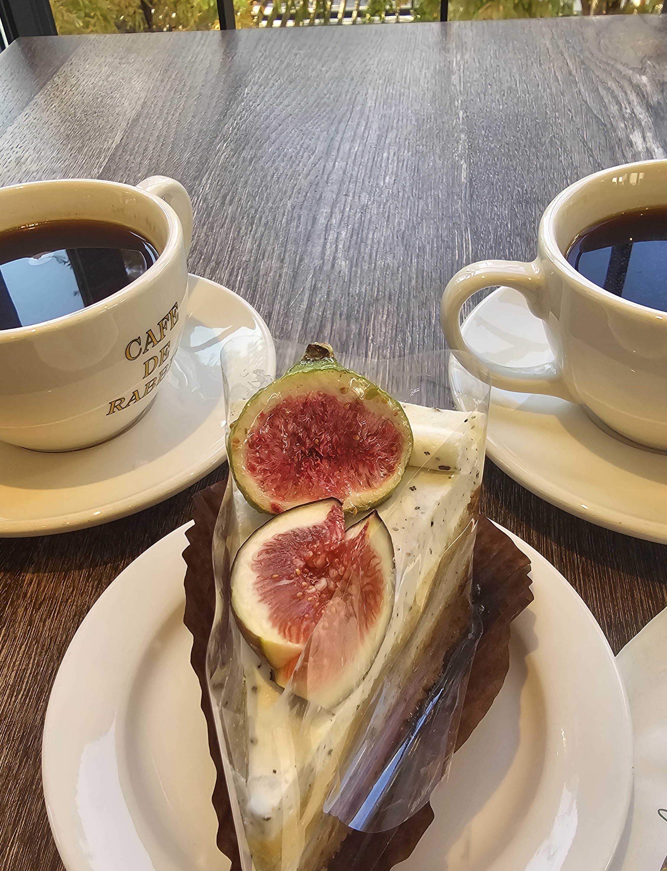 우리는 무화과 티라미수와 커피를 나눠 먹었는데, 은은한 홍차 향과 달콤한 무화과가 어우러져서 분위기와 찰떡이었어요.