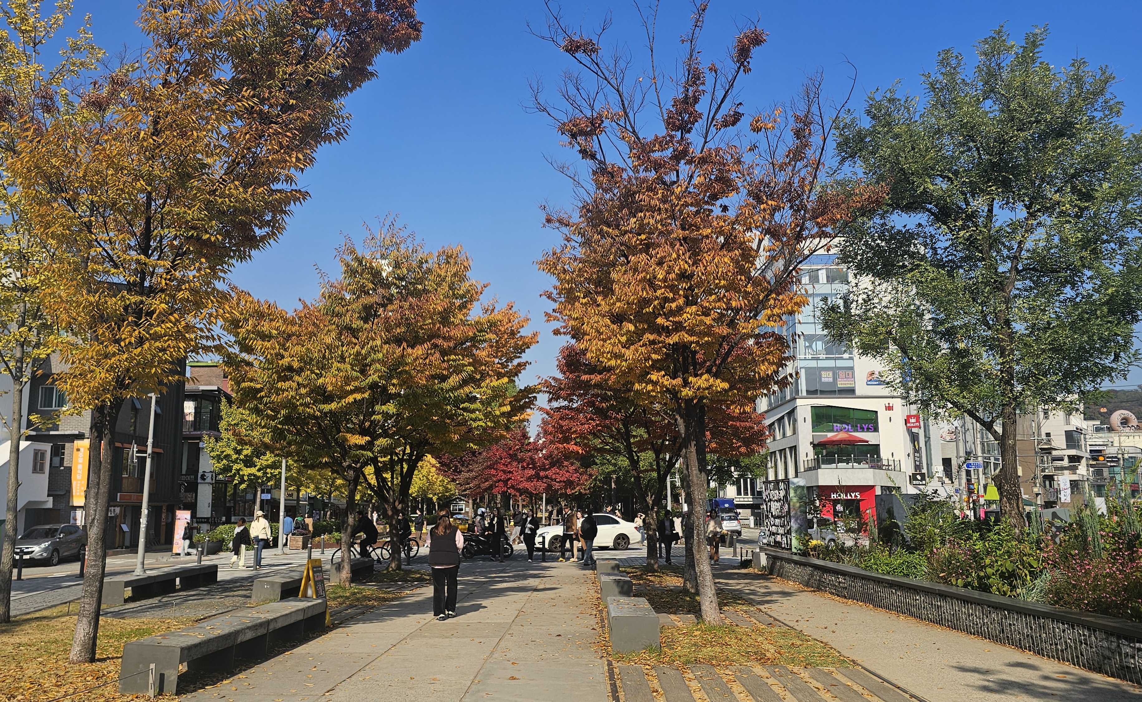 서울 연남동의 경의선 숲길은 폐선된 철길을 재생해 만든 도심 속 산책길이에요. 길게 이어진 숲길을 따라 걷다 보면 노란 은행잎과 붉은 단풍이 어우러져 가을의 정수를 느낄 수 있어요.