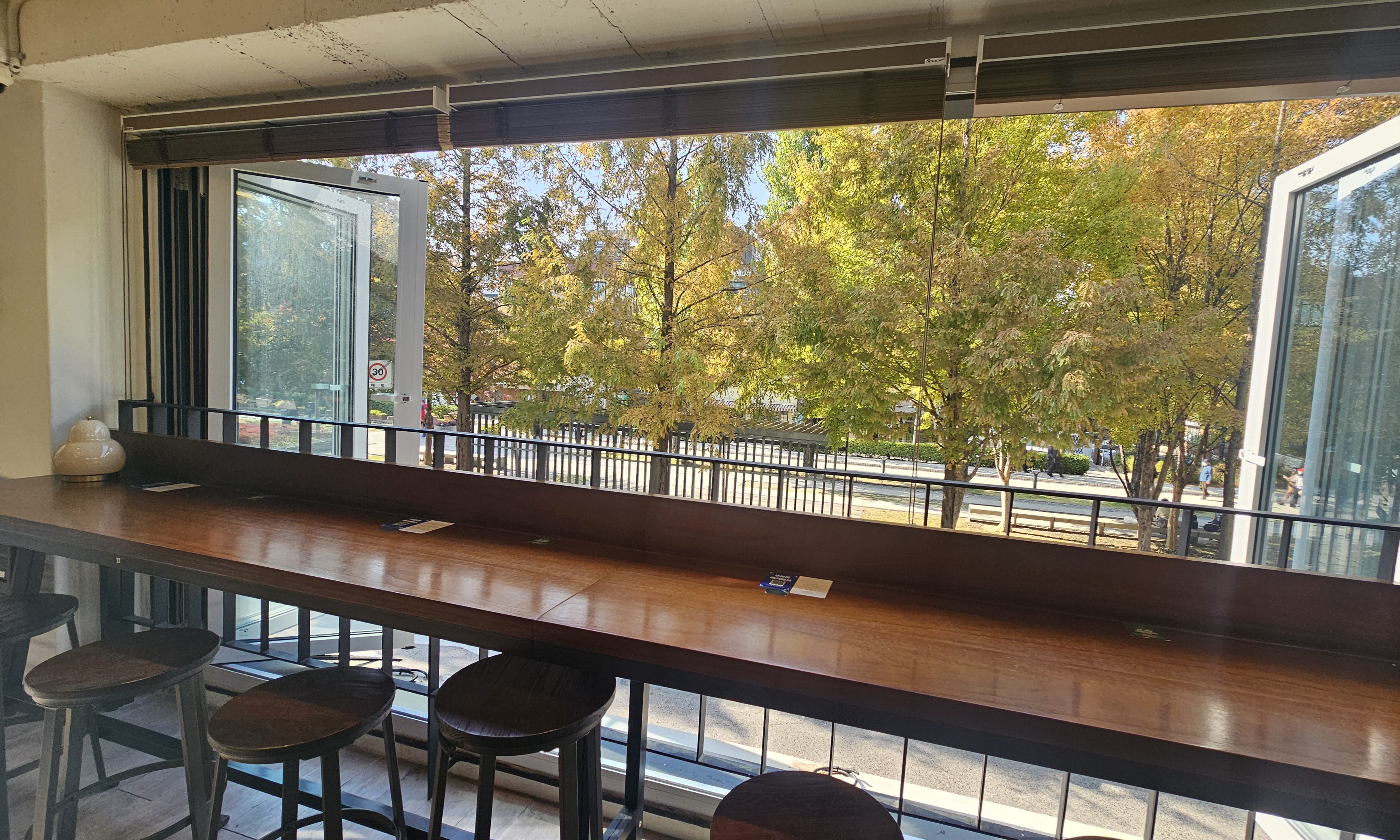 창밖으로 단풍이 펼쳐지는 뷰가 좋아 보여서 선택했는데, 정말 탁월한 선택이었어요.