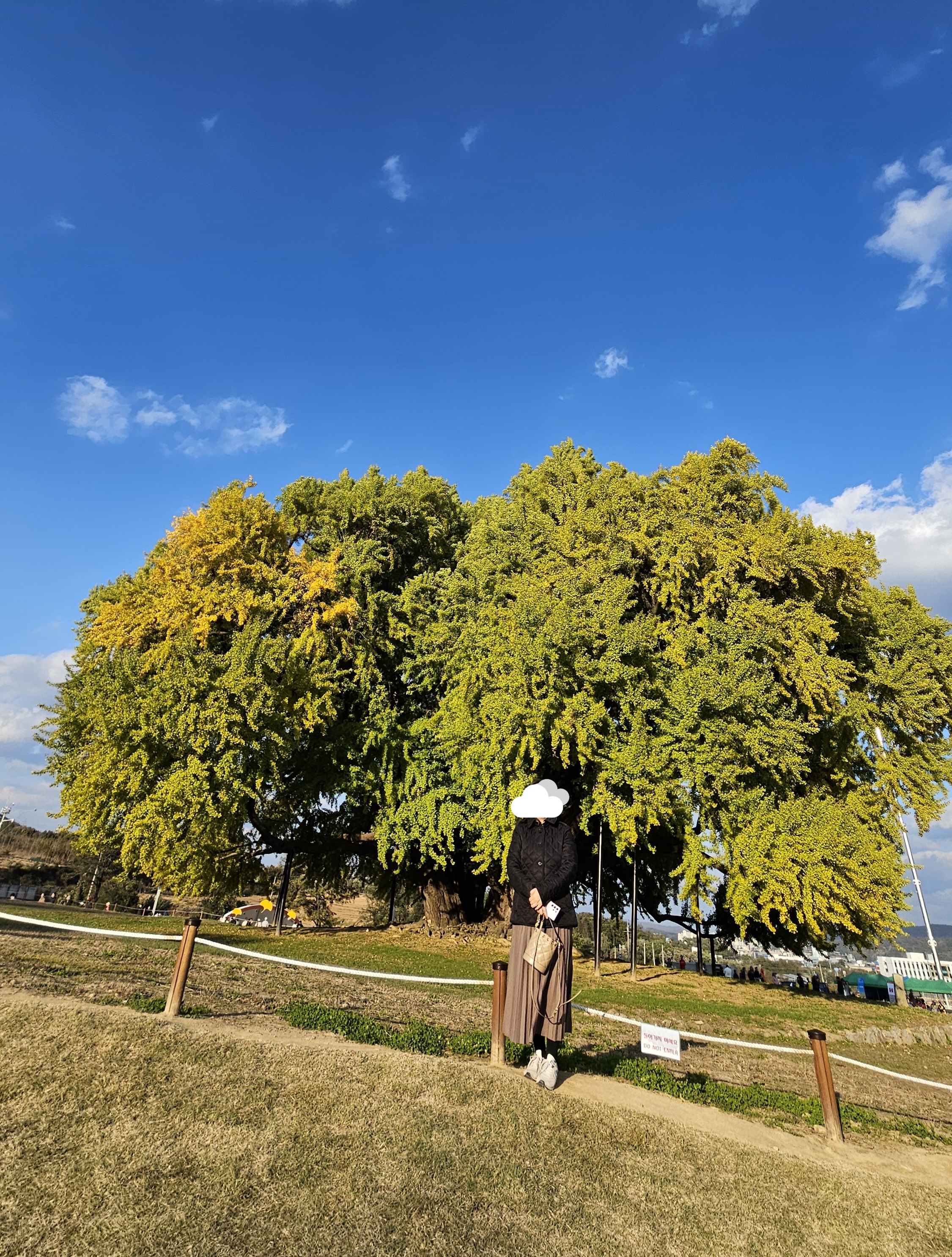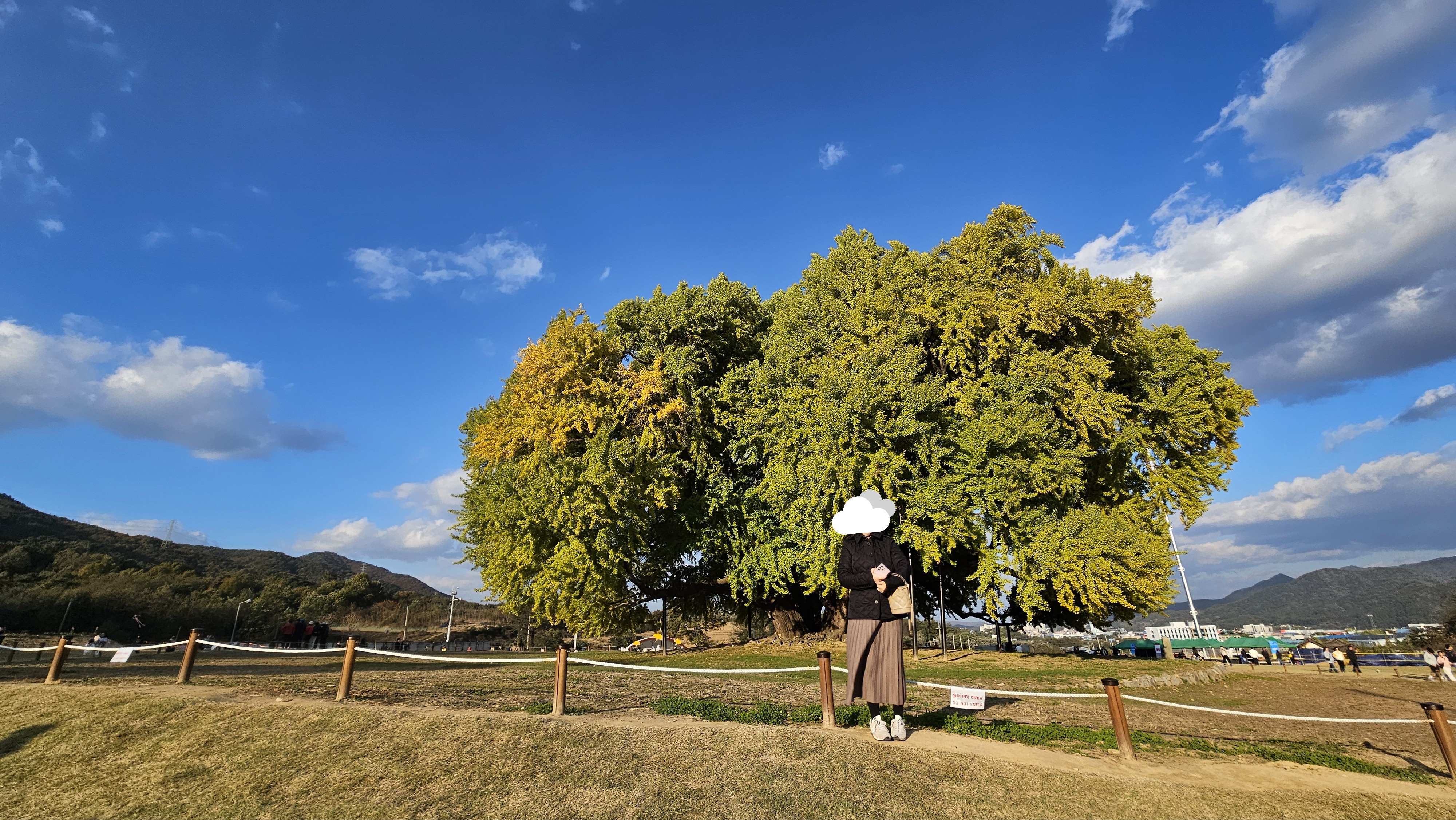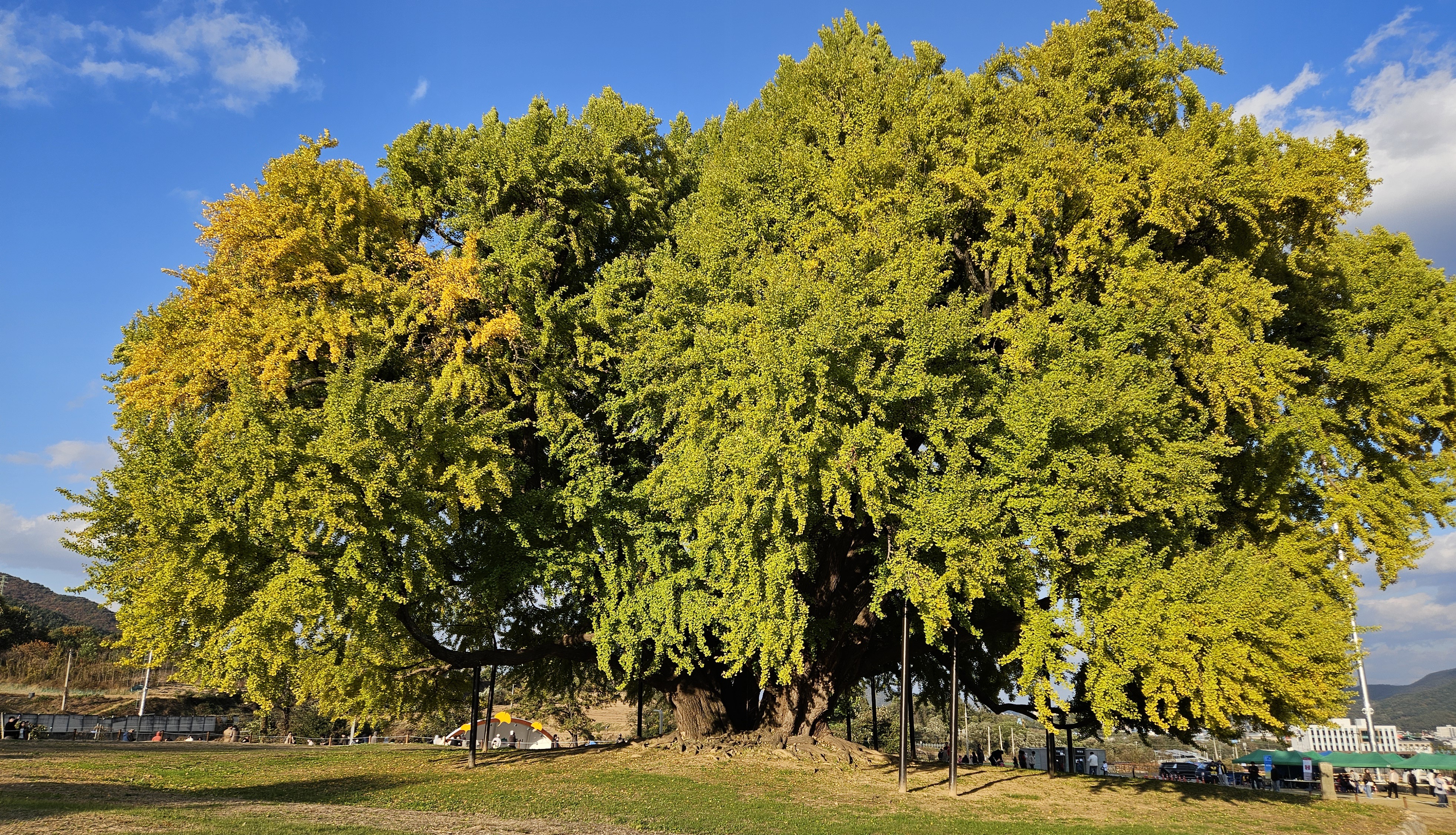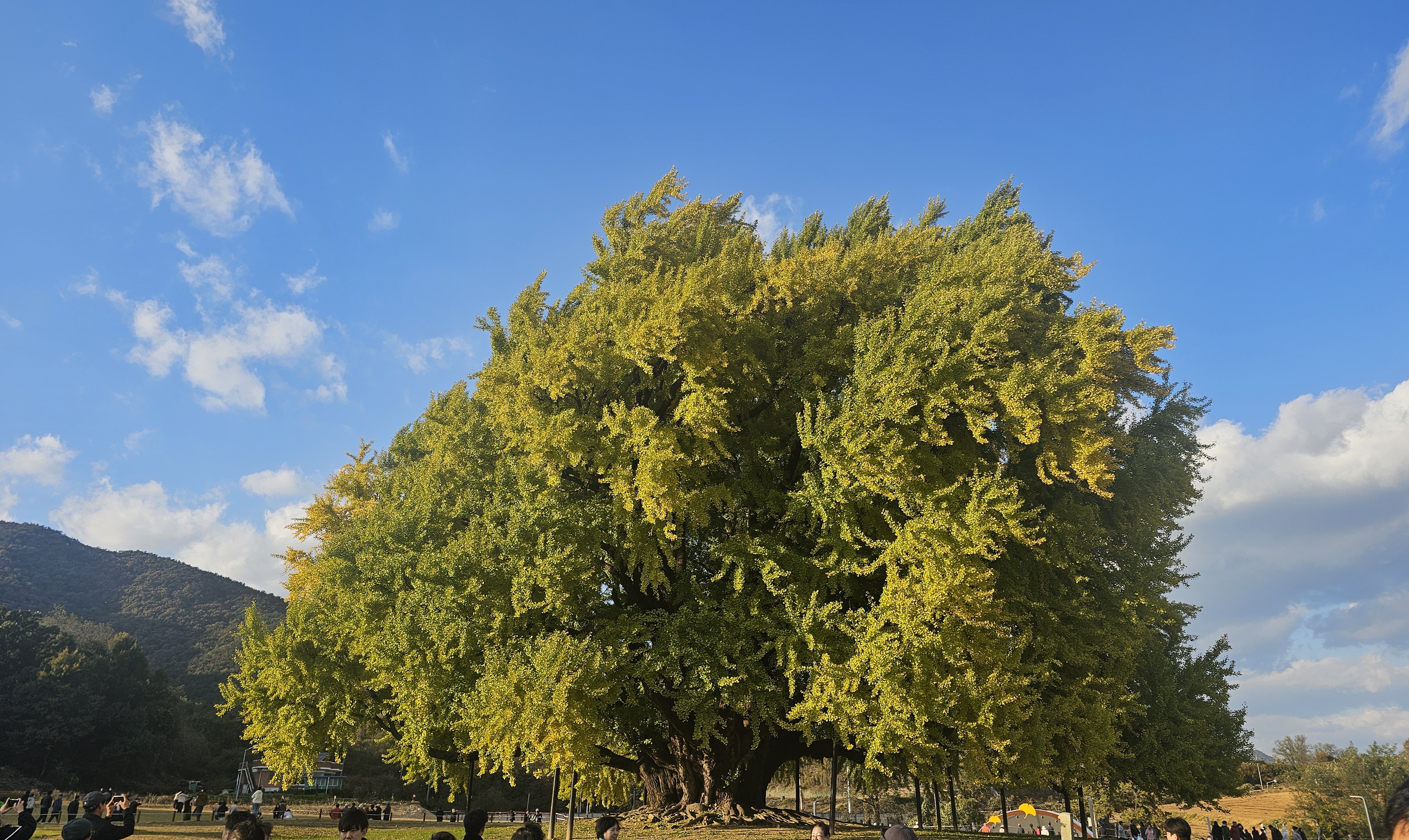 높이 32m, 둘레 16m가 넘는 이 나무는 그 자체로 하나의 역사이자 자연유산이에요. 매년 가을이면 황금빛으로 물들어 장관을 이루는데, 이날은 아직 단풍이 50% 정도만 물든 상태였어요. 기대했던 절정의 노란 은행잎은 조금 아쉬웠지만, 그만큼 다음 주가 더 기대되는 풍경이었어요.