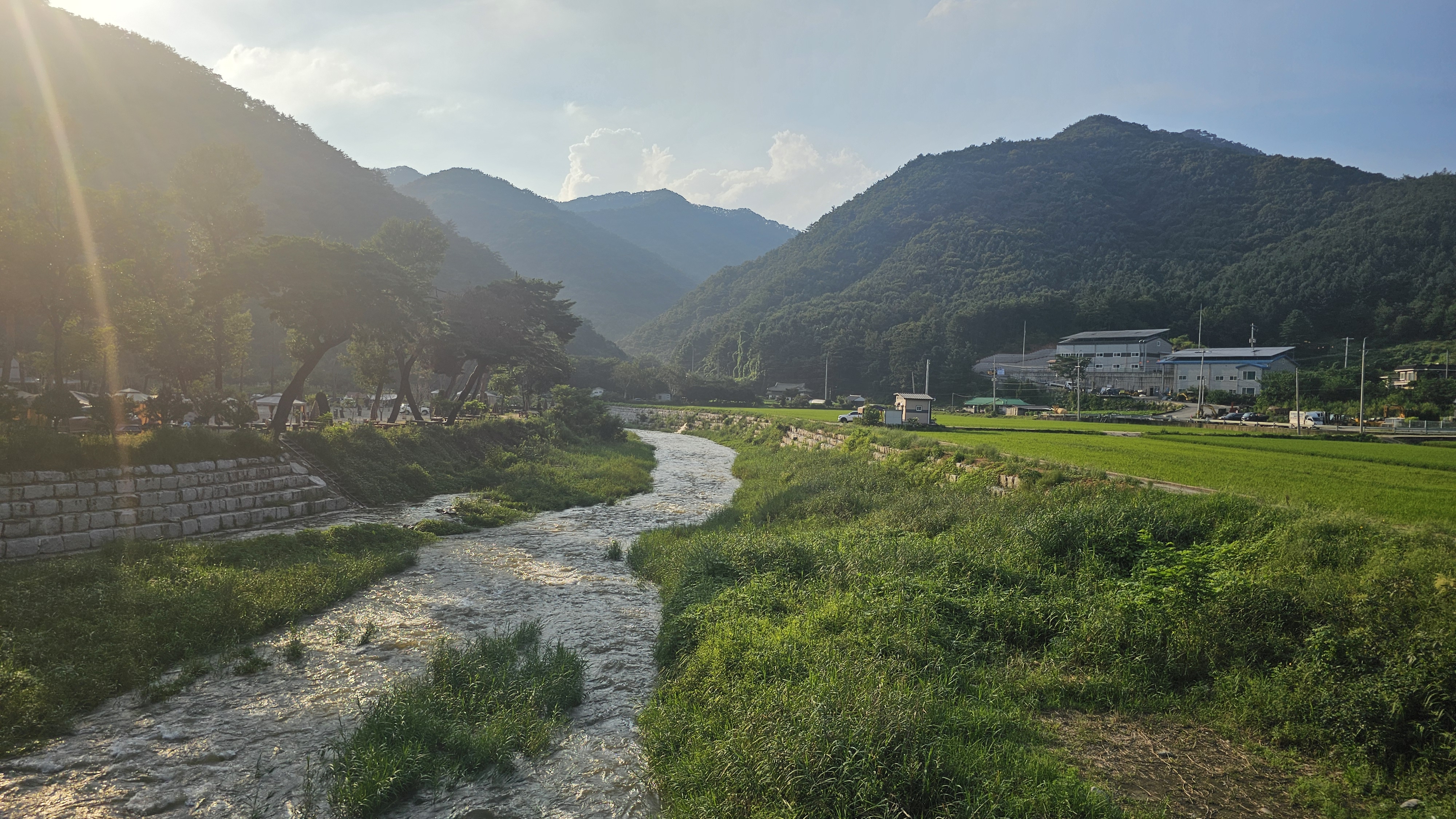 계곡물은 맑고 수심이 낮아 여름철 물놀이 장소로도 인기가 높고, 가을에는 금빛 들판과 단풍이 어우러져 시골 정취를 느낄 수 있어요.
